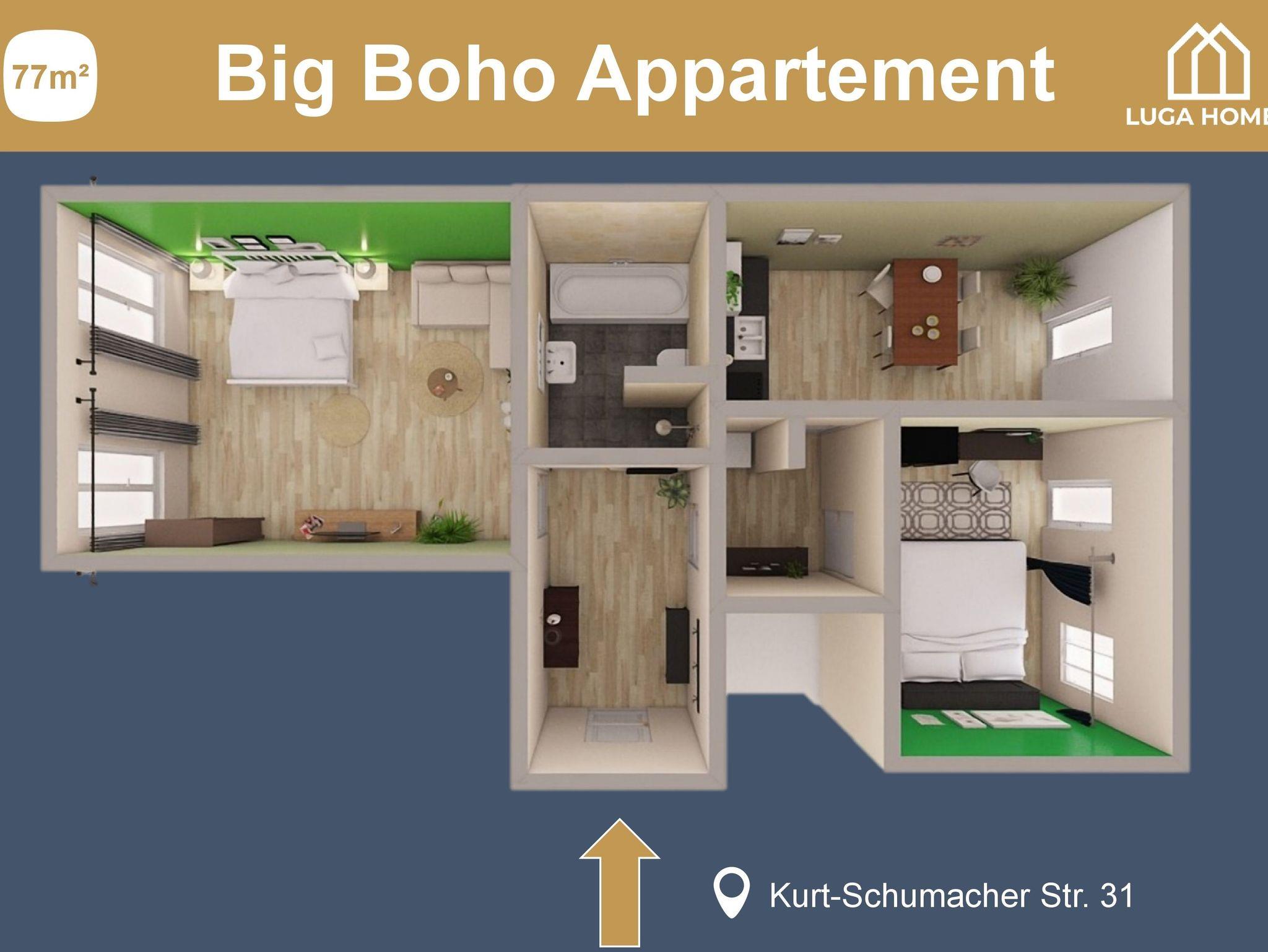 Luga Homes - Stadthaus, *Big Boho* 3-Zimmer-Appartement mit Wohnküche und Balkon