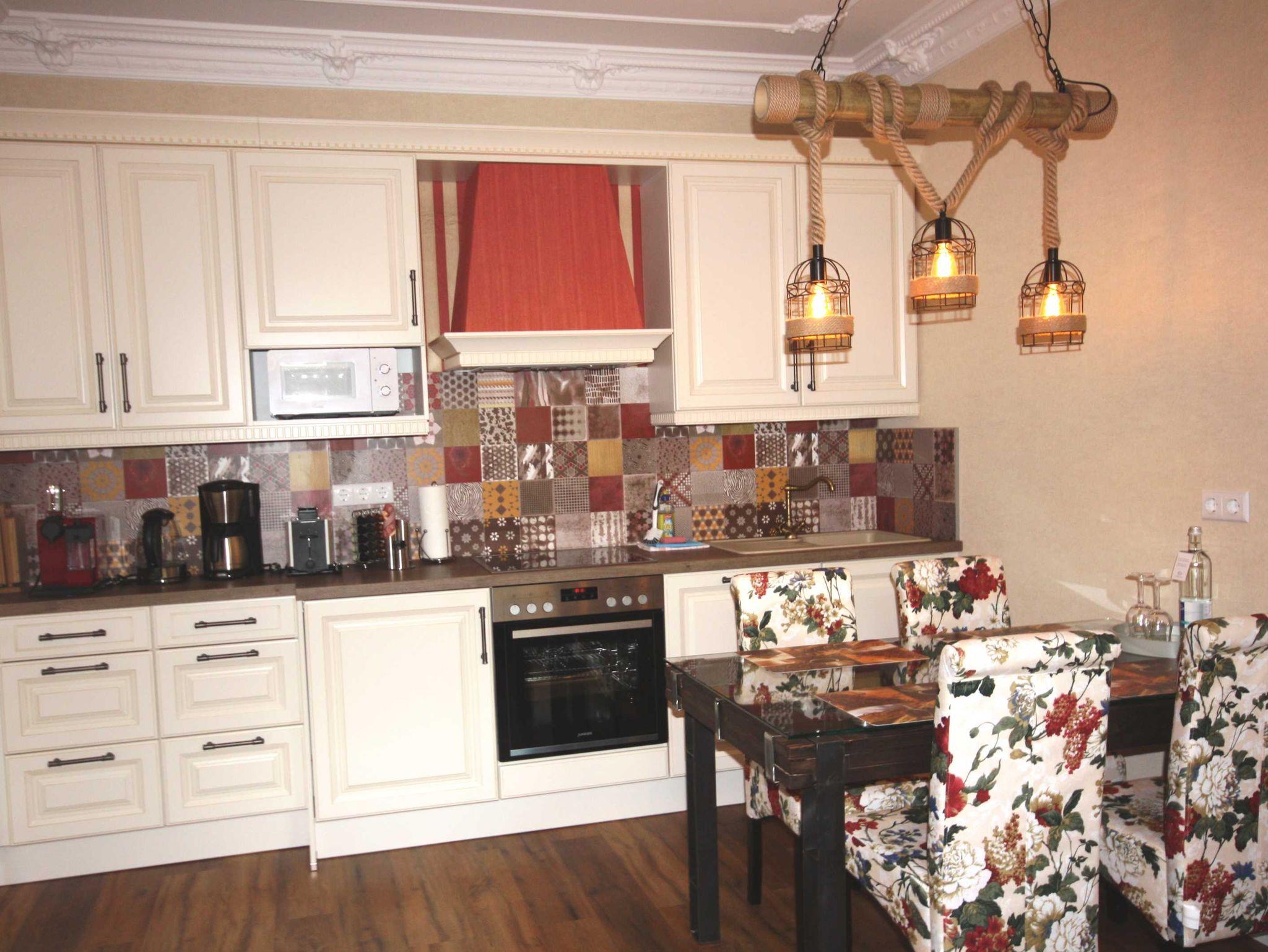 • Küchenzeile mit Spülmaschine, Kühlschrank mit Gefrierfach, Mikrowelle, Kaffeemaschine, 4-Platten-Cerankochfeld, Toaster, etc.