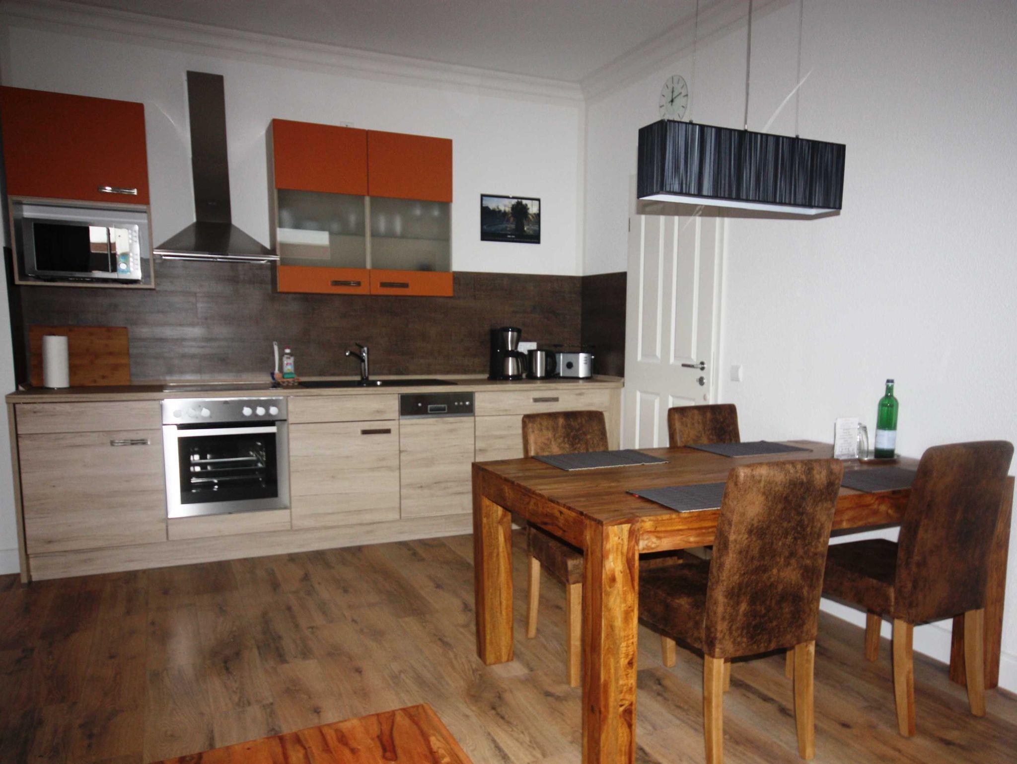 • Küchenzeile mit Spülmaschine, Kühlschrank mit Gefrierfach, Mikrowelle, Kaffeemaschine, 4-Platten-Cerankochfeld, Toaster, etc.