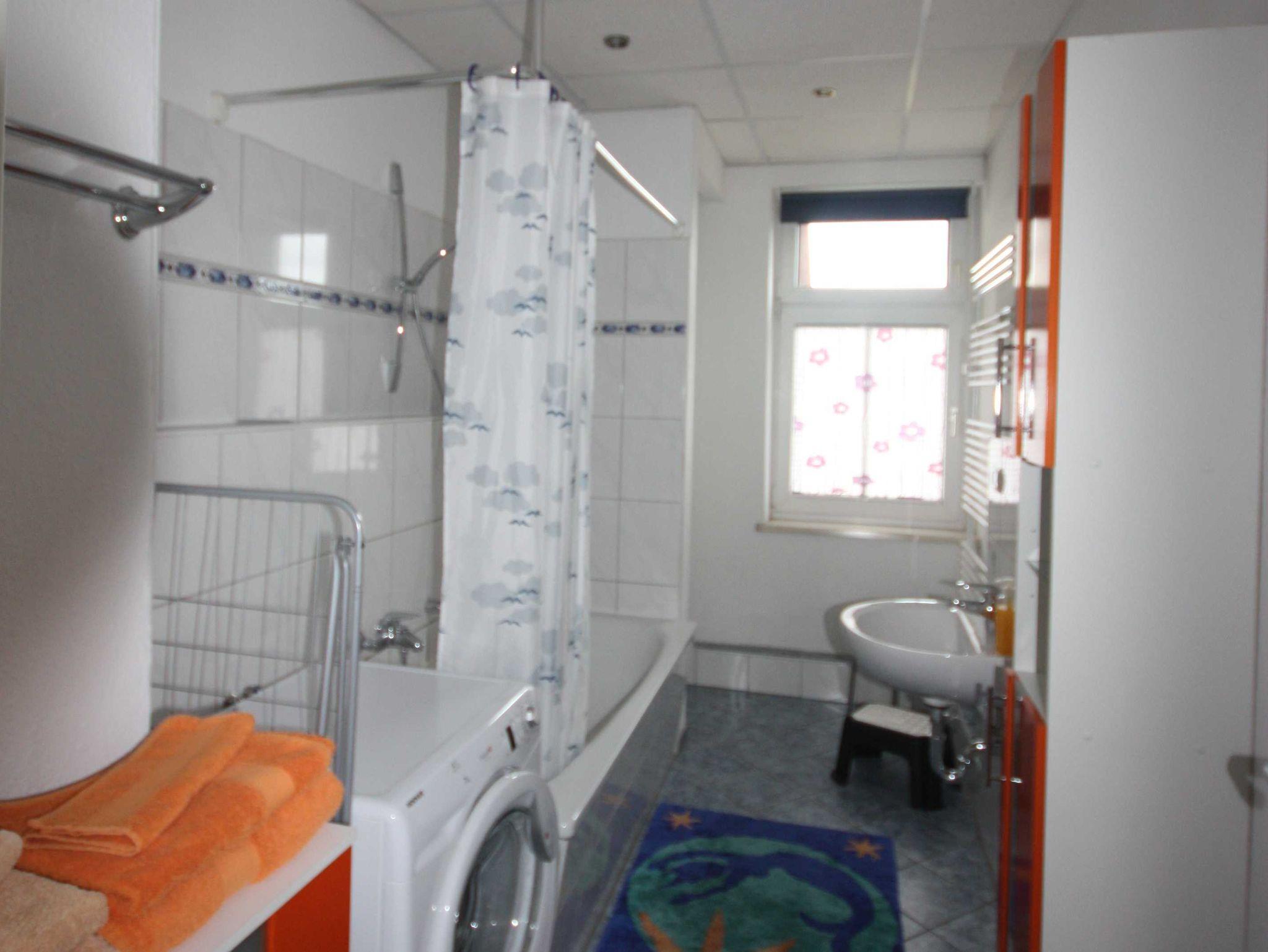 • Tageslichtbad mit Badewanne und Waschmaschine, Fön