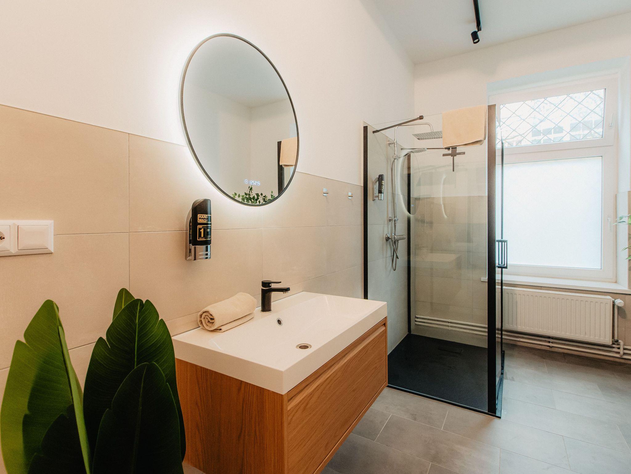 - Badezimmer mit moderner, ebenerdiger Dusche
