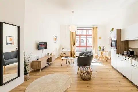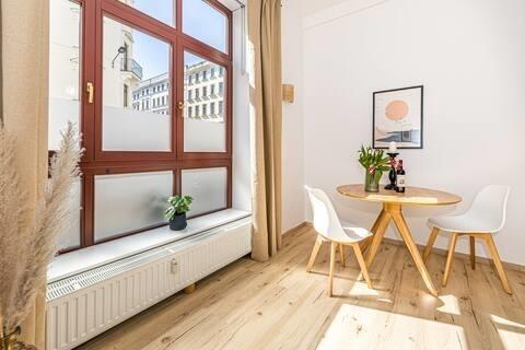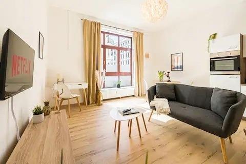 Unser Apartment bietet dir alles, was du für einen angenehmen Aufenthalt brauchst. Es befindet sich in einem stilvollen Altbau und verfügt über große Fenster, die viel natürliches Licht hereinlassen und eine wunderbare Aussicht bieten. Die Wohnung befindet sich auch in einer fantastischen Lage: Der Markt - das Herz und die historische Altstadt von Leipzig - ist nur 25 Gehminuten entfernt (15 Minuten mit den öffentlichen Verkehrsmitteln).