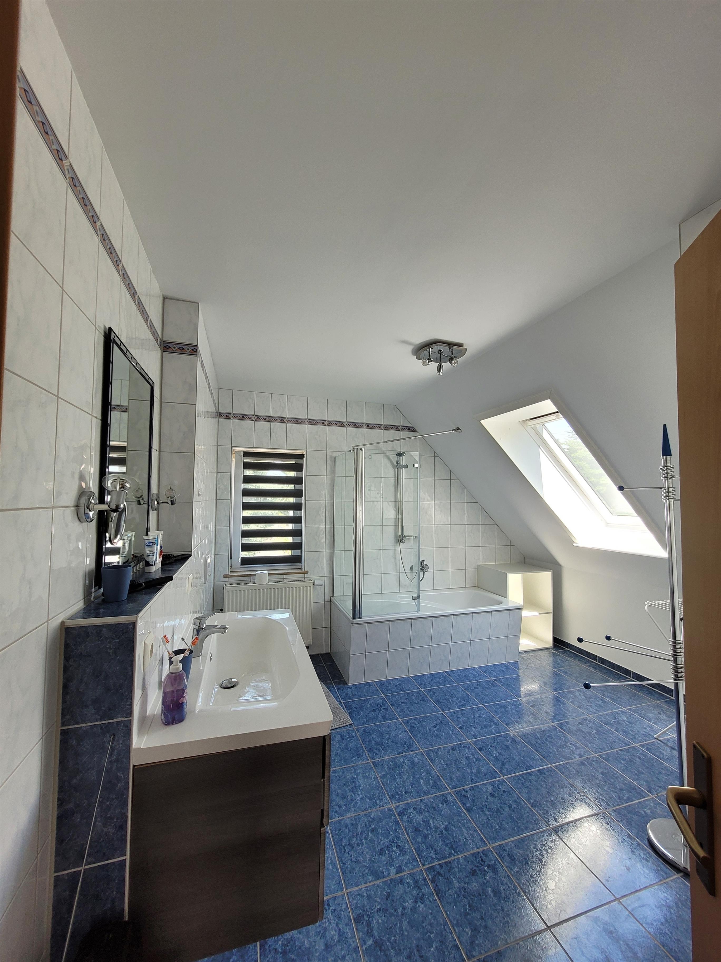 In dem geräumigem Bad mit Badewanne, WC und Waschtisch steht Ihnen auch ein Fön zur Verfügung.