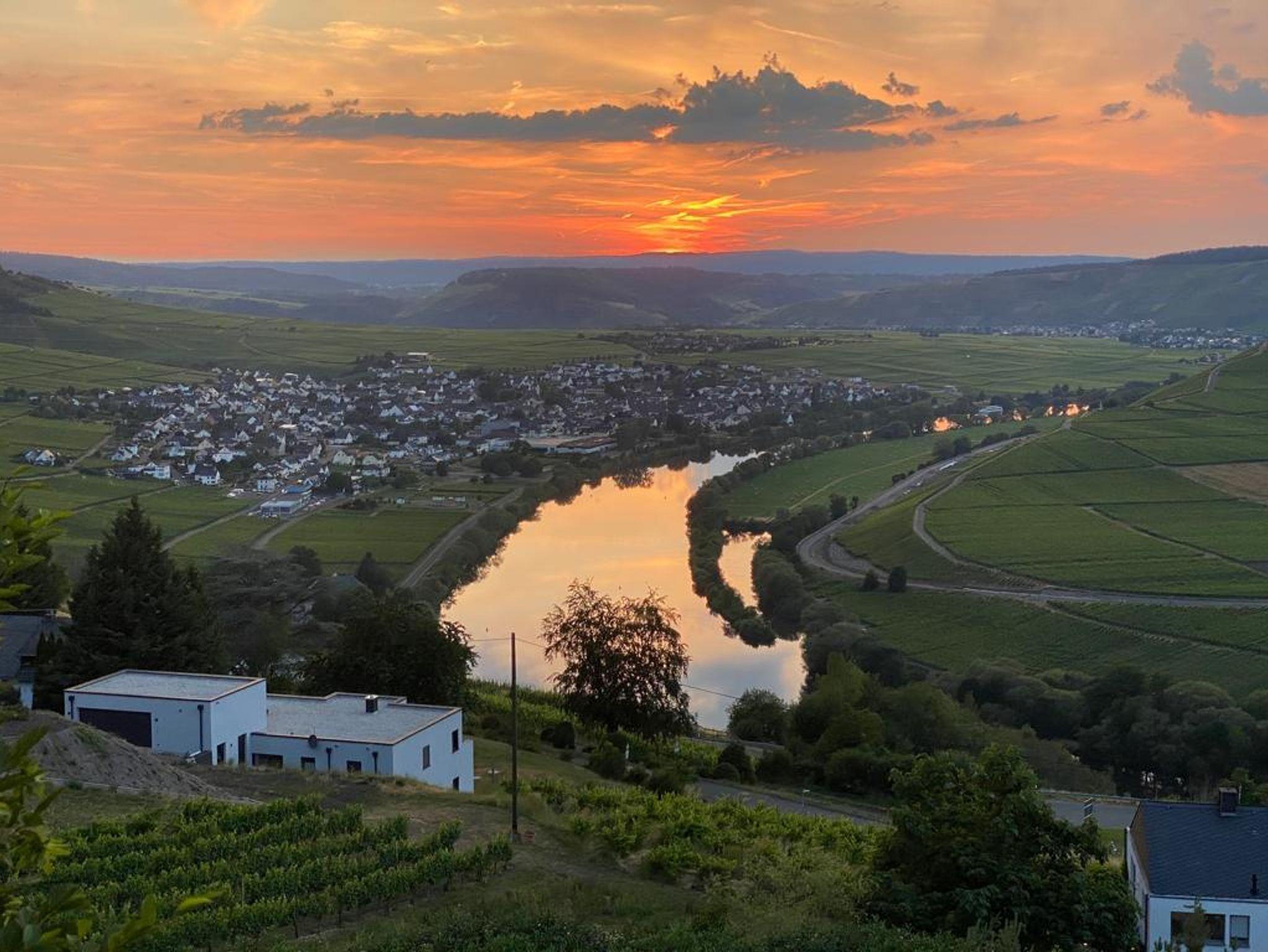 Bei uns wohnen Sie am Waldrand mit einem traumhaften Blick über die Weite des Tals, seinen Steillagen und einer der schönsten Moselschleifen.