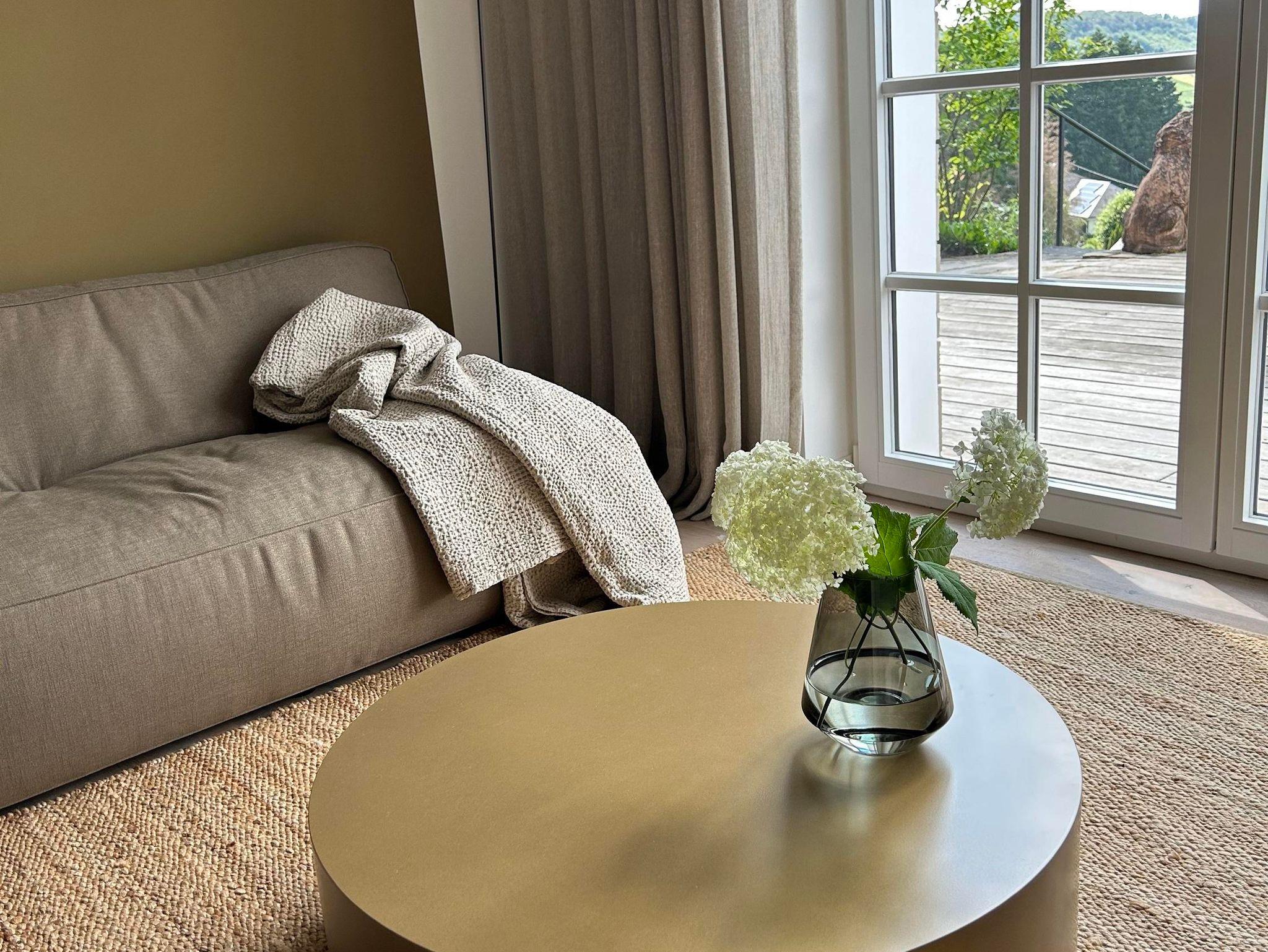 Die Ferienwohnung ist modern und hochwertig eingerichtet, mit offenem Wohnraum kombiniert Wohnzimmer mit Essbereich und Küche; das Schlafzimmer separat, ebenfalls mit Zugang zur Terrasse mit Moselblick; ein Bad mit begehbarer Dusche.
