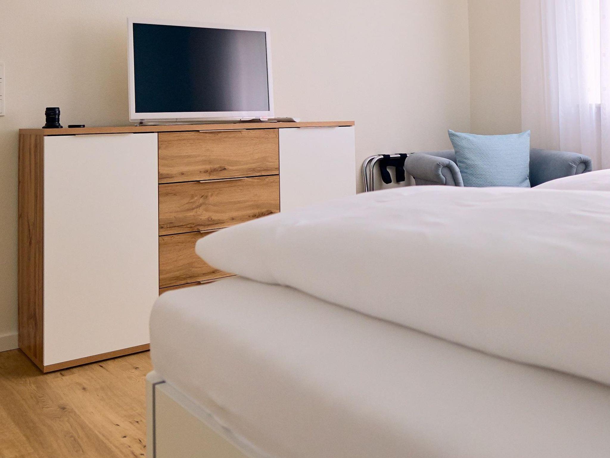 Helle, lichtdurchflutete und großzügig bemessene Räume mit edlem Parkettboden, sehr komfortablen Betten und einer großen begehbaren Wellness-Dusche versprechen einen wunderbar entspannten Aufenthalt.