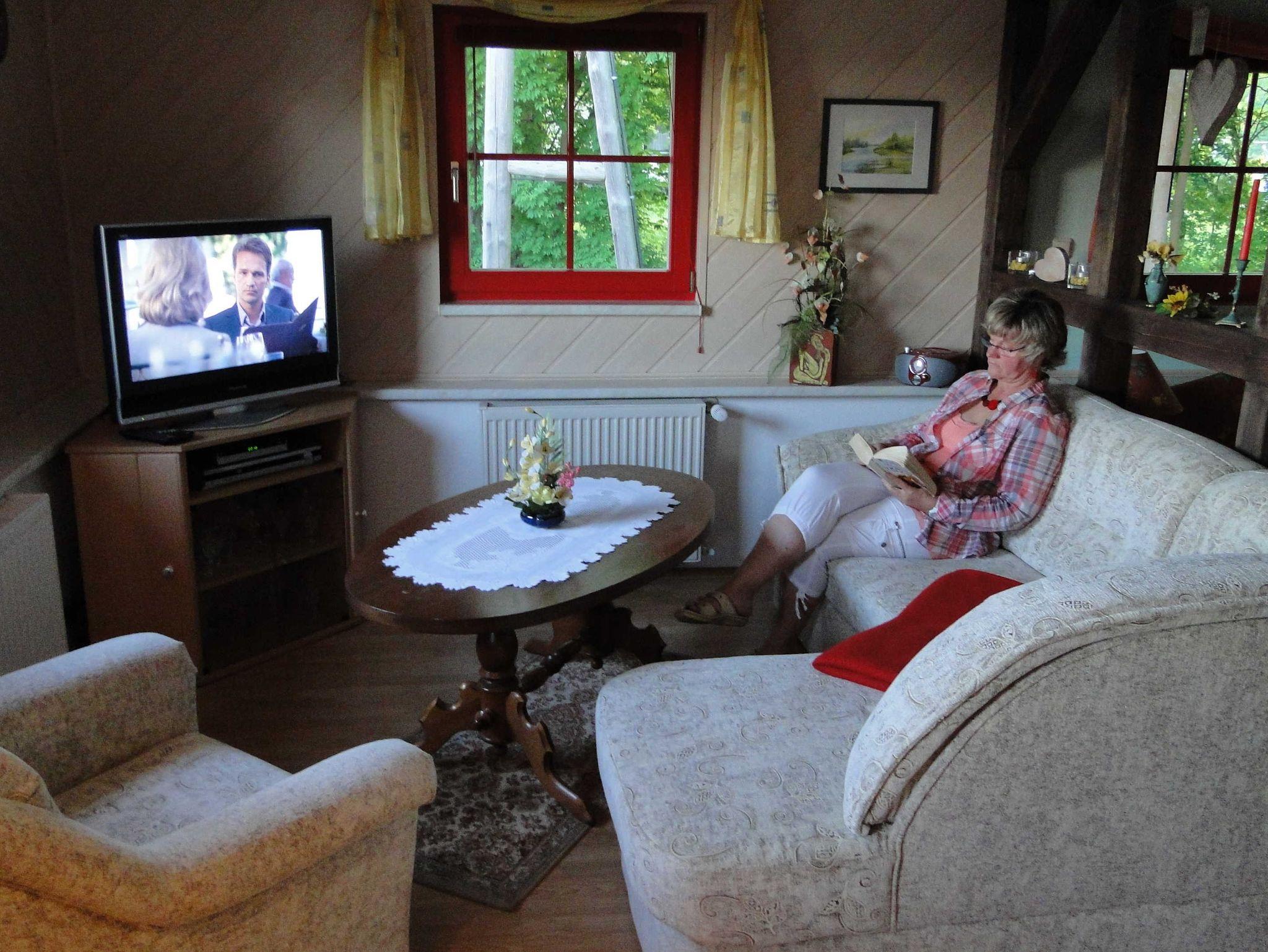 Von hier oben können Sie herrliche Panoramablicke über die hügelige Mecklenburgische Schweiz genießen (die Fenster lassen sich öffnen) und Raucher finden ein gemütliches Plätzchen. Zusätzlich gibt es Grillmöglichkeiten auf der Terrasse.