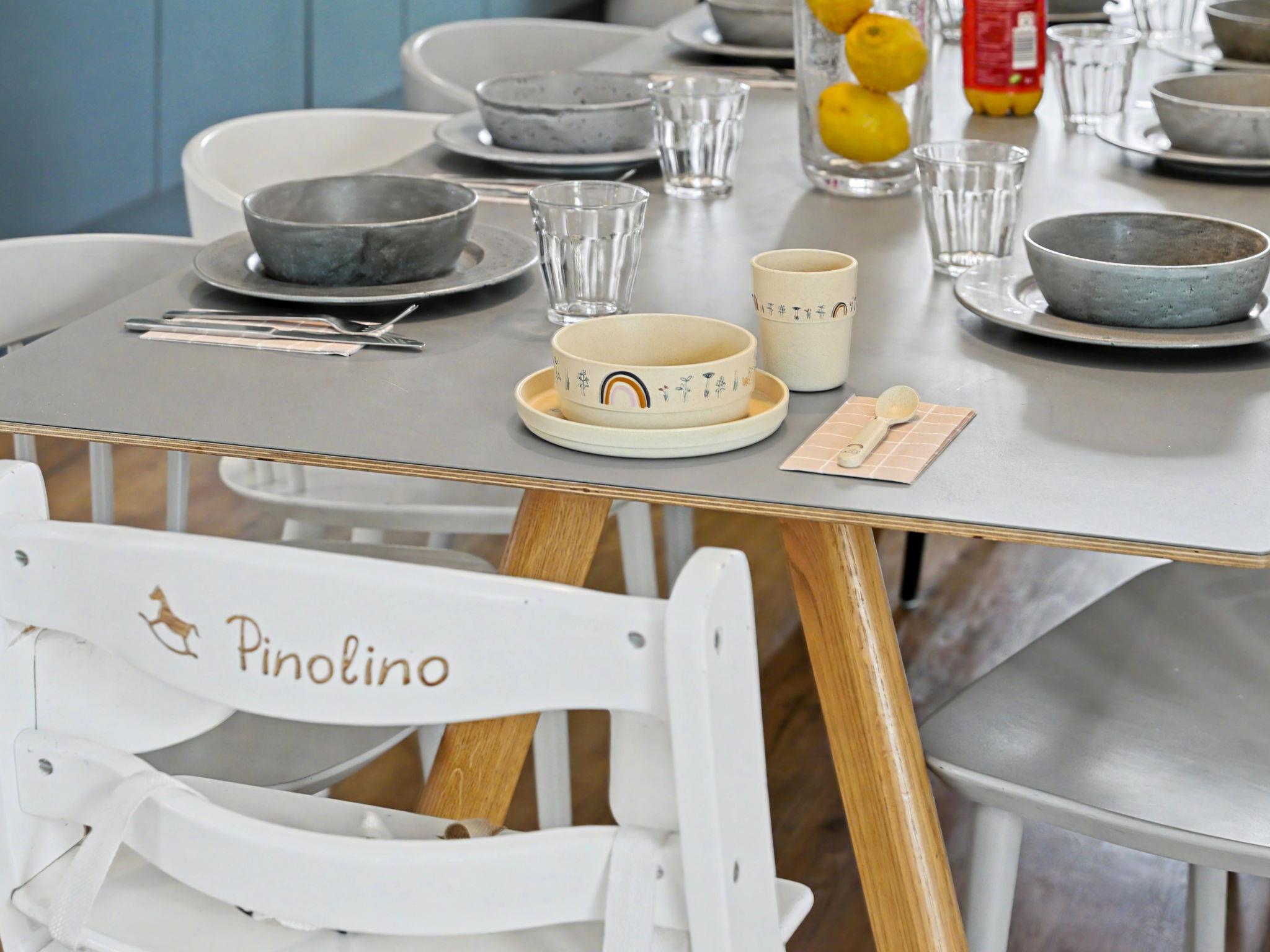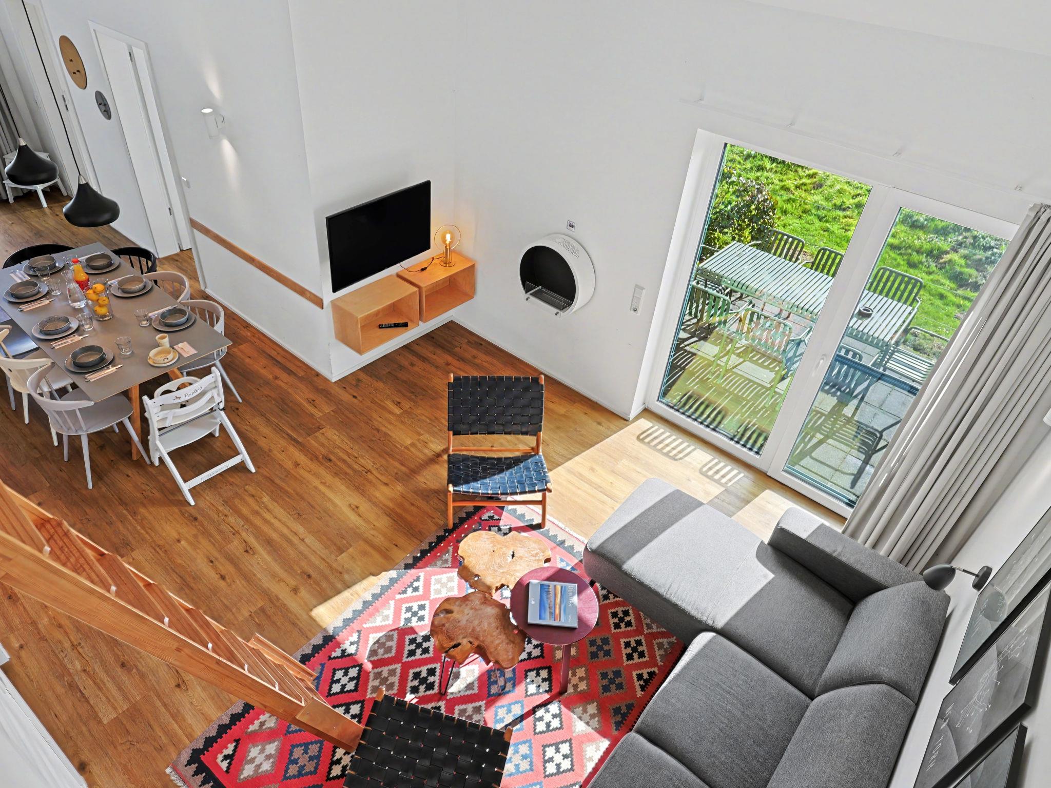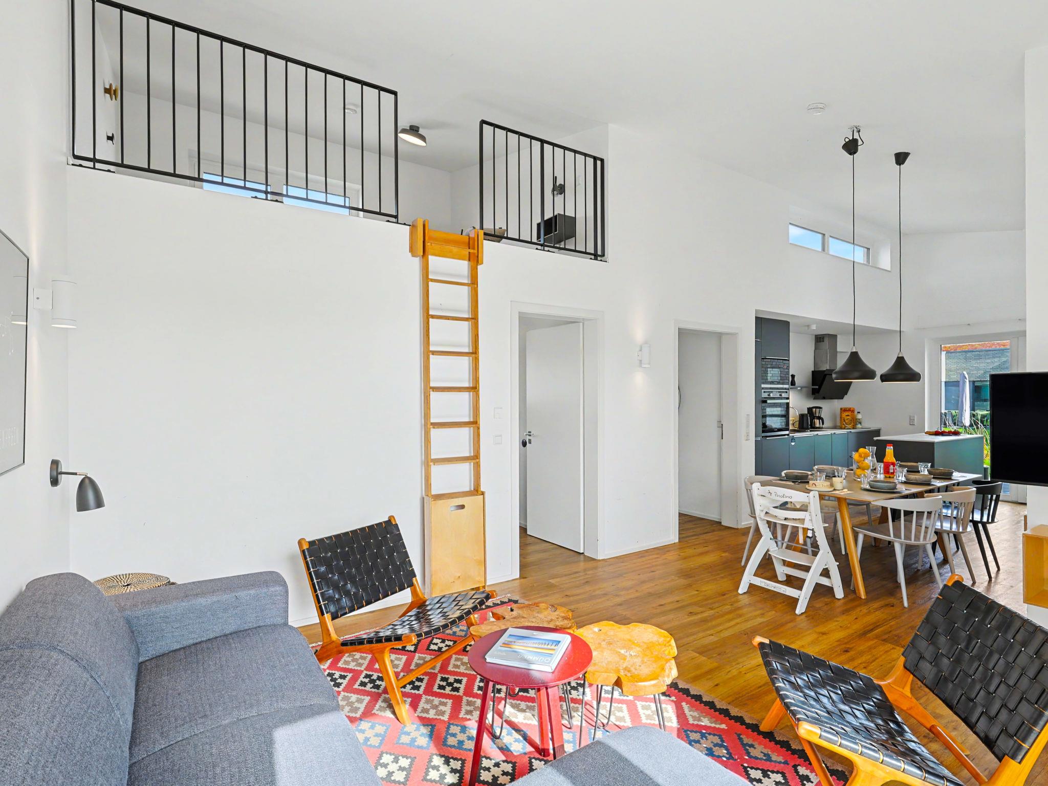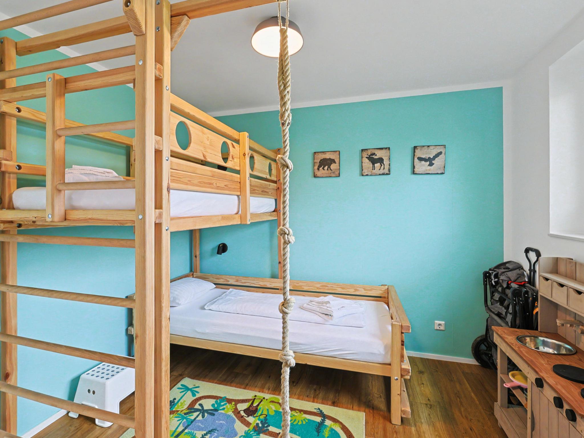 "Familiennest", 4-room house 98 m2 on 2 levels. Tasteful and cosy furnishings: living/dining room with satellite TV (flat screen). Exit to the terrace. 2 rooms, each room with 1 double bed (2 x 90 cm, length 200 cm). 1 room with 1 x 2 bunk beds (90 cm, length 200 cm). Kitchen-/living room (oven, dishwasher, 4 ceramic glass hob hotplates, toaster, kettle, microwave, electric coffee machine). Bath/WC, shower/WC. Upper floor: (ladder) open gallery with sloping ceilings with 2 sleeping facilities. Terrace. Terrace furniture, electric barbecue. Facilities: washing machine, dryer, sauna, children's high chair (extra), hair dryer. Internet (WiFi, free). Please note: non-smoking house. Maximum 1 pet/ dog allowed. Smoke alarm, fire extinguisher. There is a hot tub on the terrace.
