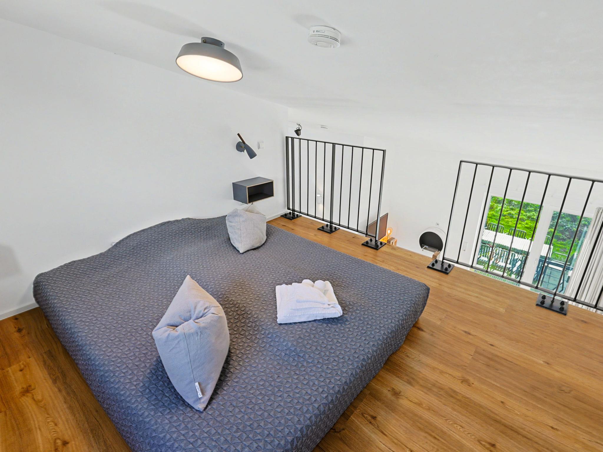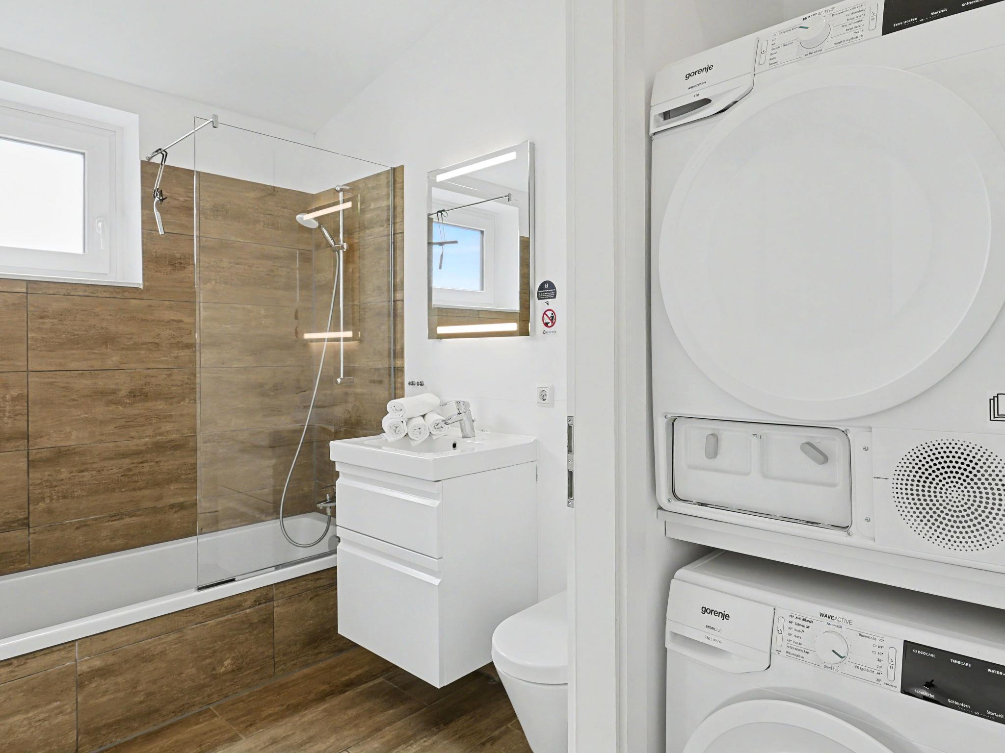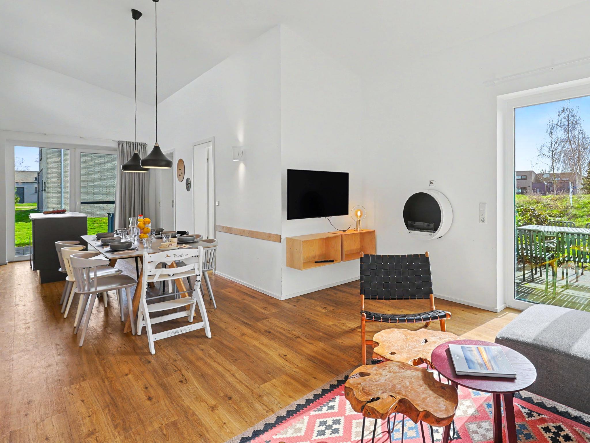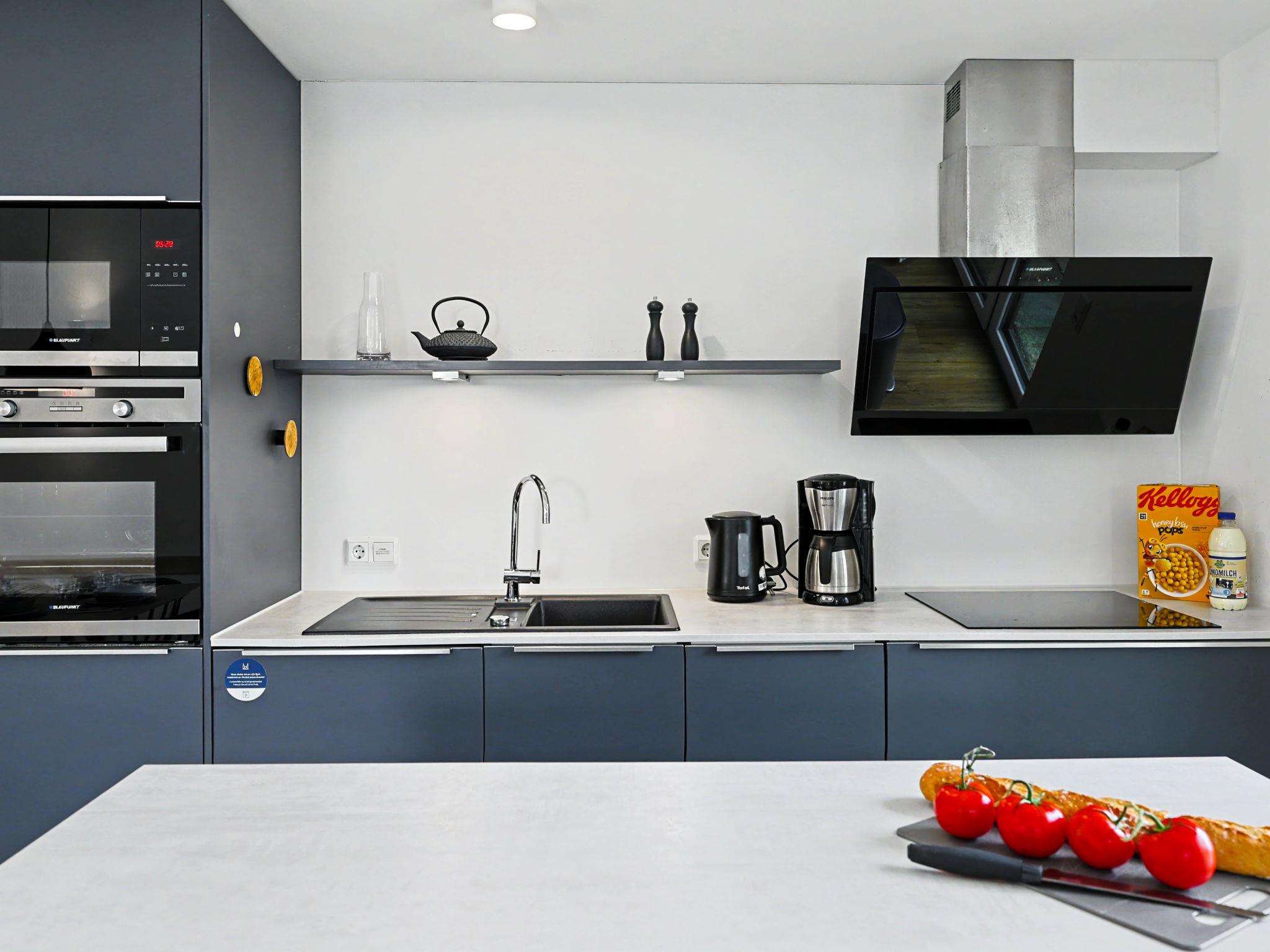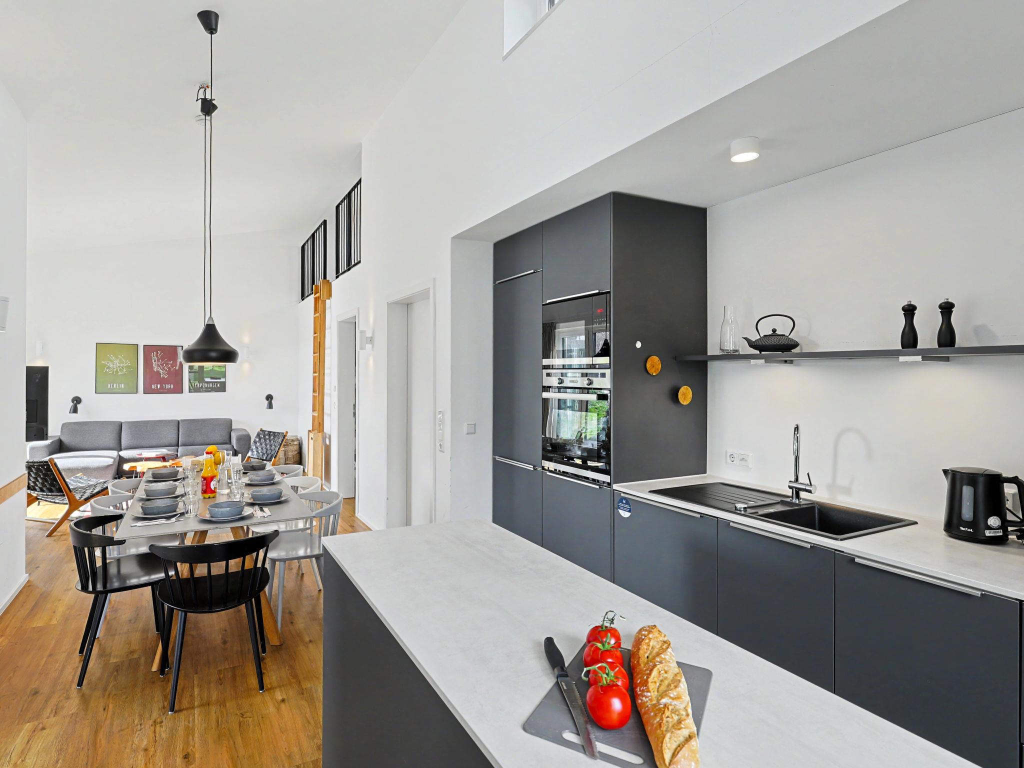 "Familiennest", 4-room house 98 m2 on 2 levels. Tasteful and cosy furnishings: living/dining room with satellite TV (flat screen). Exit to the terrace. 2 rooms, each room with 1 double bed (2 x 90 cm, length 200 cm). 1 room with 1 x 2 bunk beds (90 cm, length 200 cm). Kitchen-/living room (oven, dishwasher, 4 ceramic glass hob hotplates, toaster, kettle, microwave, electric coffee machine). Bath/WC, shower/WC. Upper floor: (ladder) open gallery with sloping ceilings with 2 sleeping facilities. Terrace. Terrace furniture, electric barbecue. Facilities: washing machine, dryer, sauna, children's high chair (extra), hair dryer. Internet (WiFi, free). Please note: non-smoking house. Maximum 1 pet/ dog allowed. Smoke alarm, fire extinguisher. There is a hot tub on the terrace.
