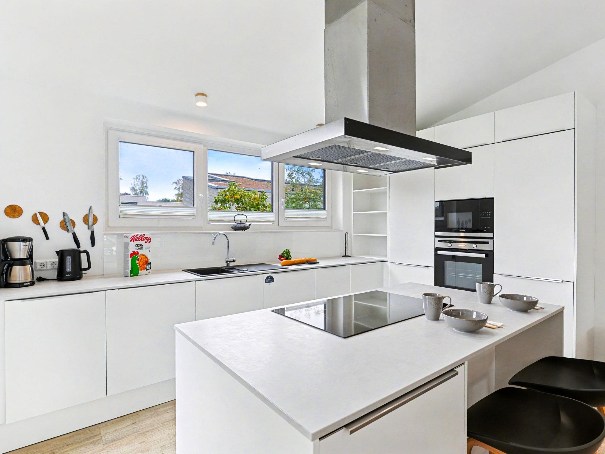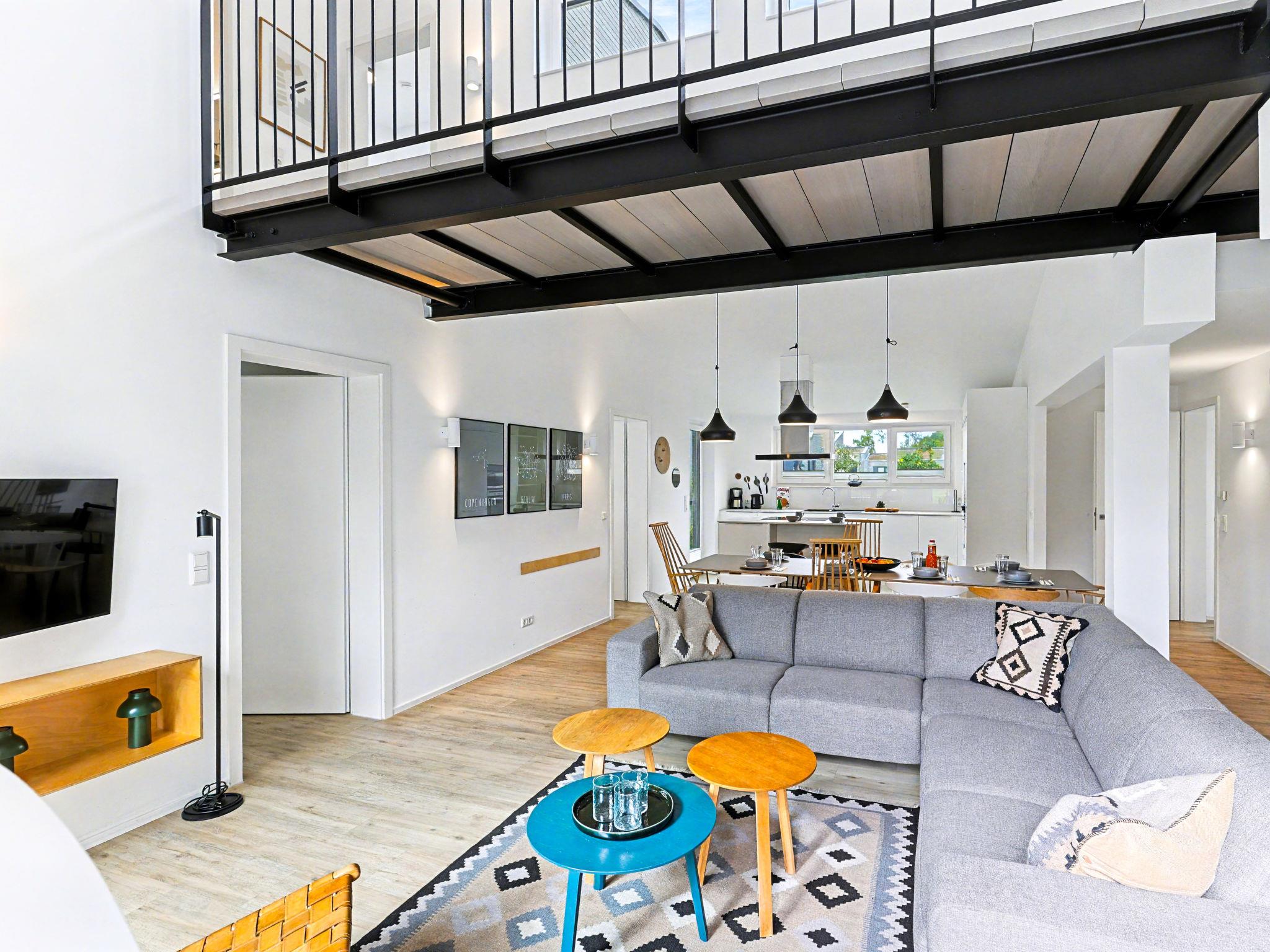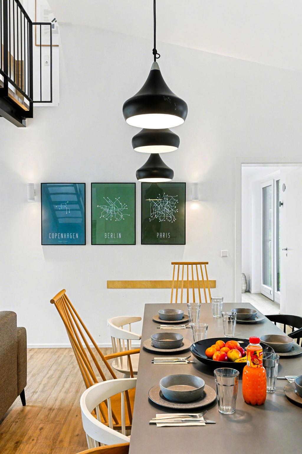 "Seeufer Lodge", 6-room house 192 m2 on 2 levels. Tasteful and cosy furnishings: living/dining room with satellite TV (flat screen). Exit to the terrace. 1 room with 1 double bed (2 x 90 cm, length 200 cm). Open kitchen (oven, dishwasher, 4 ceramic glass hob hotplates, toaster, kettle, microwave, electric coffee machine). Bath/shower/WC. Upper floor: 4 rooms, each room with 1 double bed (2 x 90 cm, length 200 cm). 2 Baths/showers/WC. Terrace. Terrace furniture, electric barbecue. Facilities: washing machine, dryer, sauna, children's high chair (extra), hair dryer. Internet (WiFi, free). Please note: non-smoking house. 1 small pet/ dog allowed. Smoke alarm.