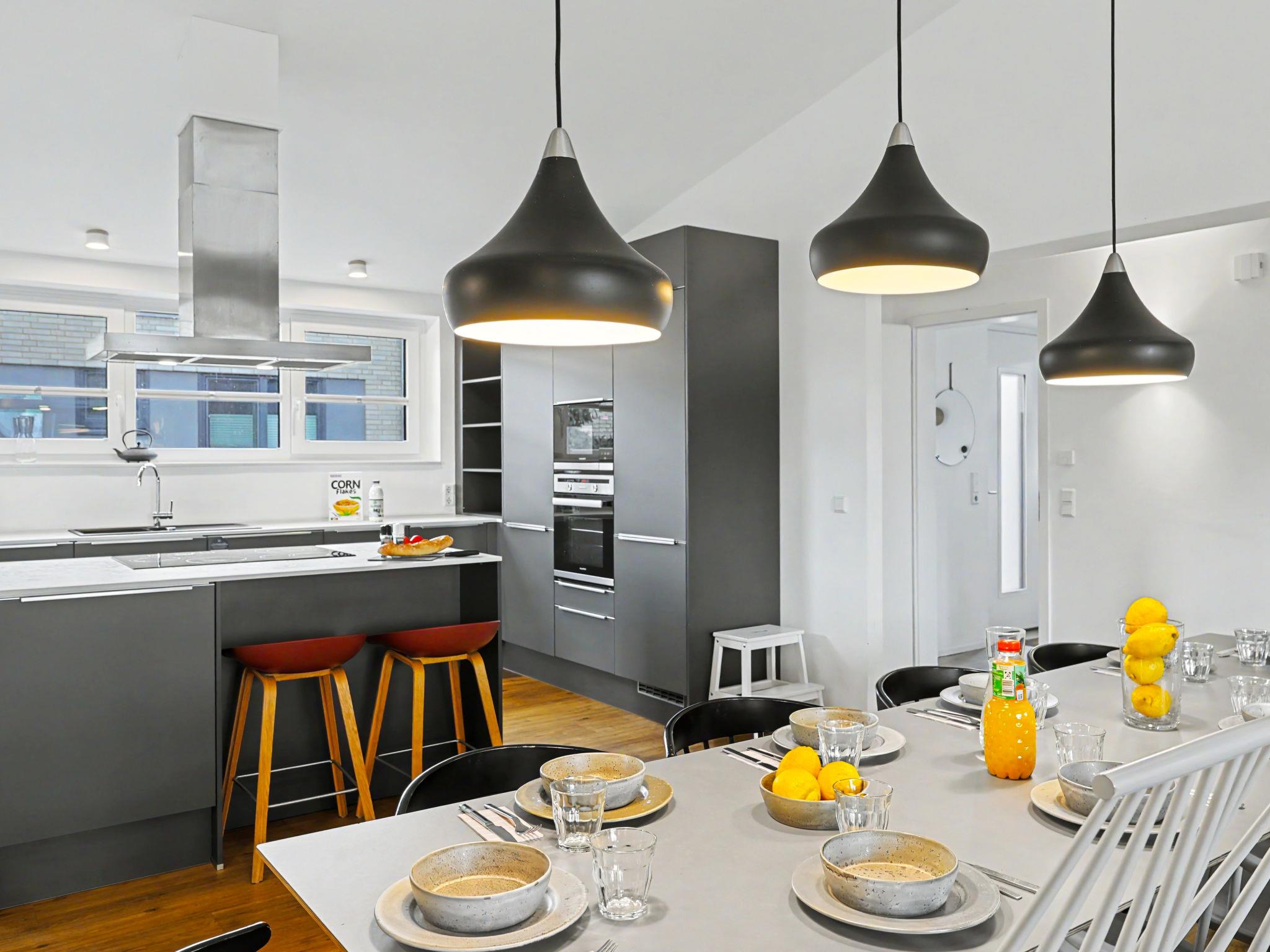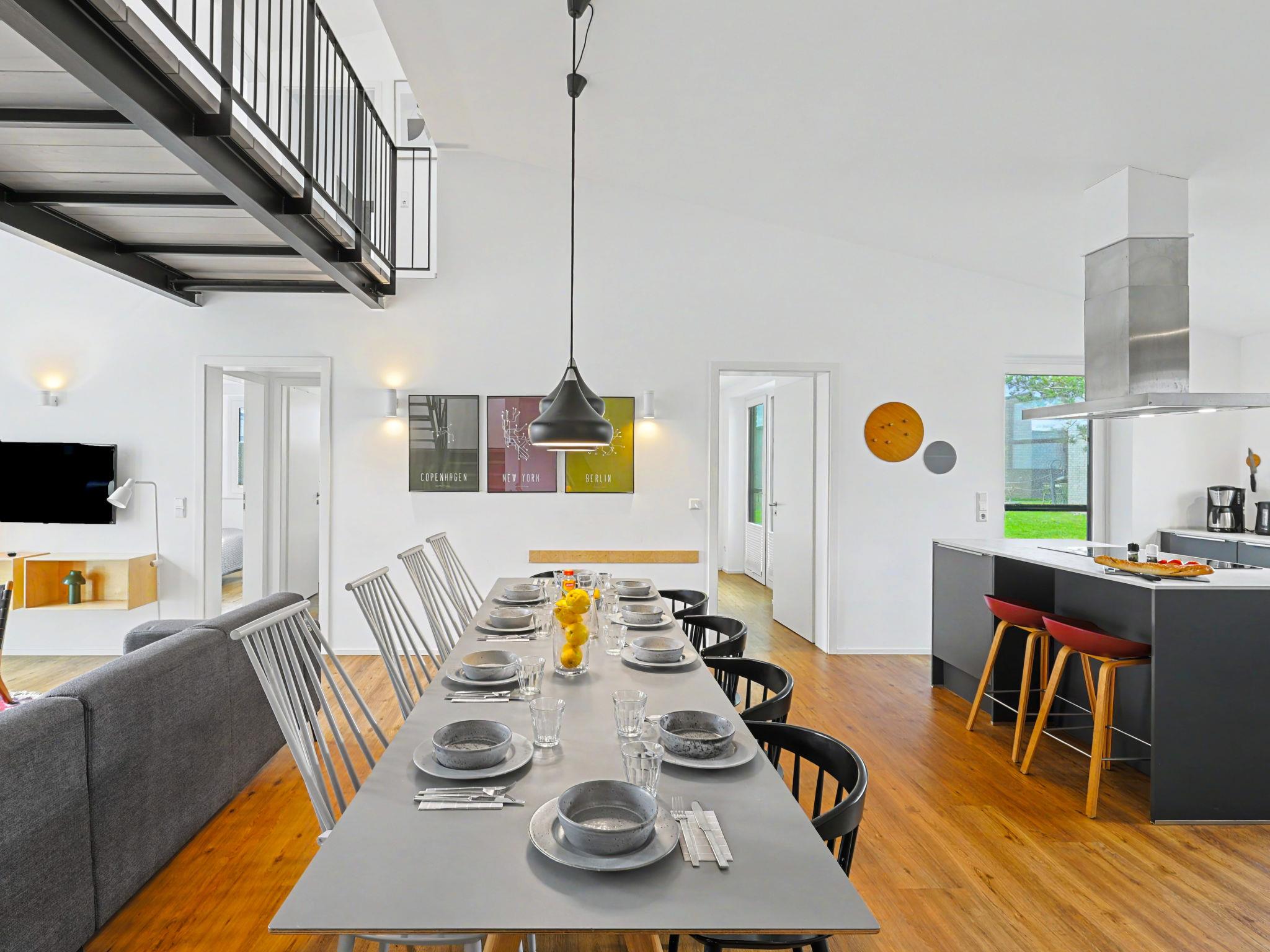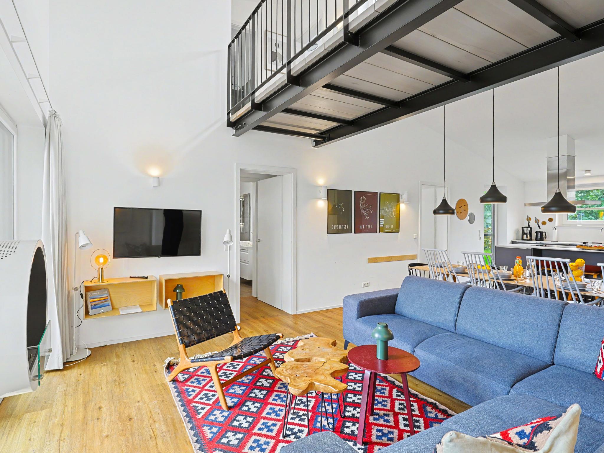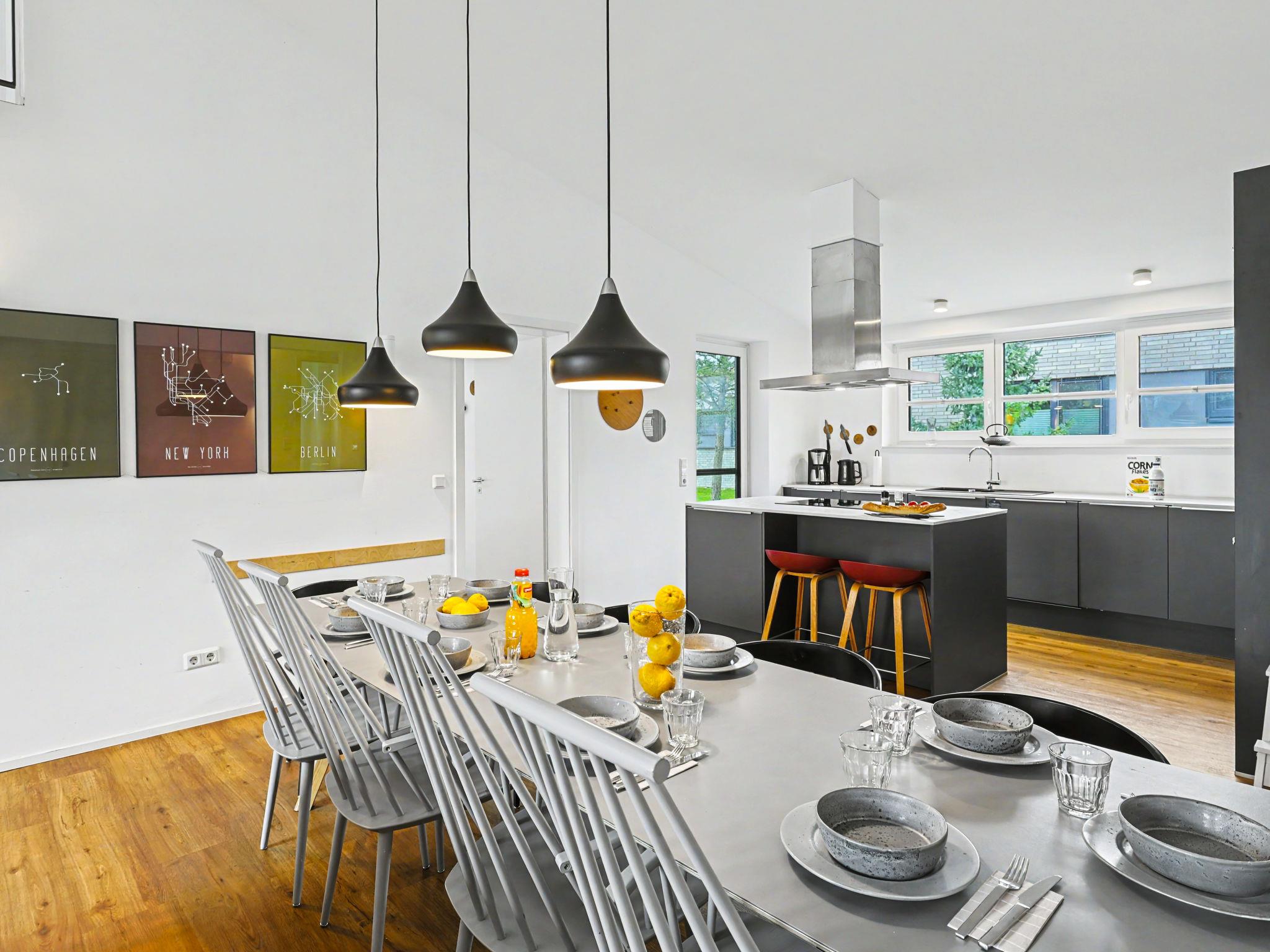 "Dümmersee Lodge", 6-room house 192 m2 on 2 levels. Tasteful and cosy furnishings: living/dining room with satellite TV (flat screen). Exit to the terrace. 1 room with 1 double bed (2 x 90 cm, length 200 cm). Open kitchen (oven, dishwasher, 4 ceramic glass hob hotplates, toaster, kettle, microwave, electric coffee machine). Bath/shower/WC. Upper floor: 4 rooms, each room with 1 double bed (2 x 90 cm, length 200 cm). 2 Baths/showers/WC. Terrace. Terrace furniture, electric barbecue. Facilities: washing machine, dryer, sauna, children's high chair (extra), hair dryer. Internet (WiFi, free). Please note: non-smoking house. 1 small pet/ dog allowed. Smoke alarm.