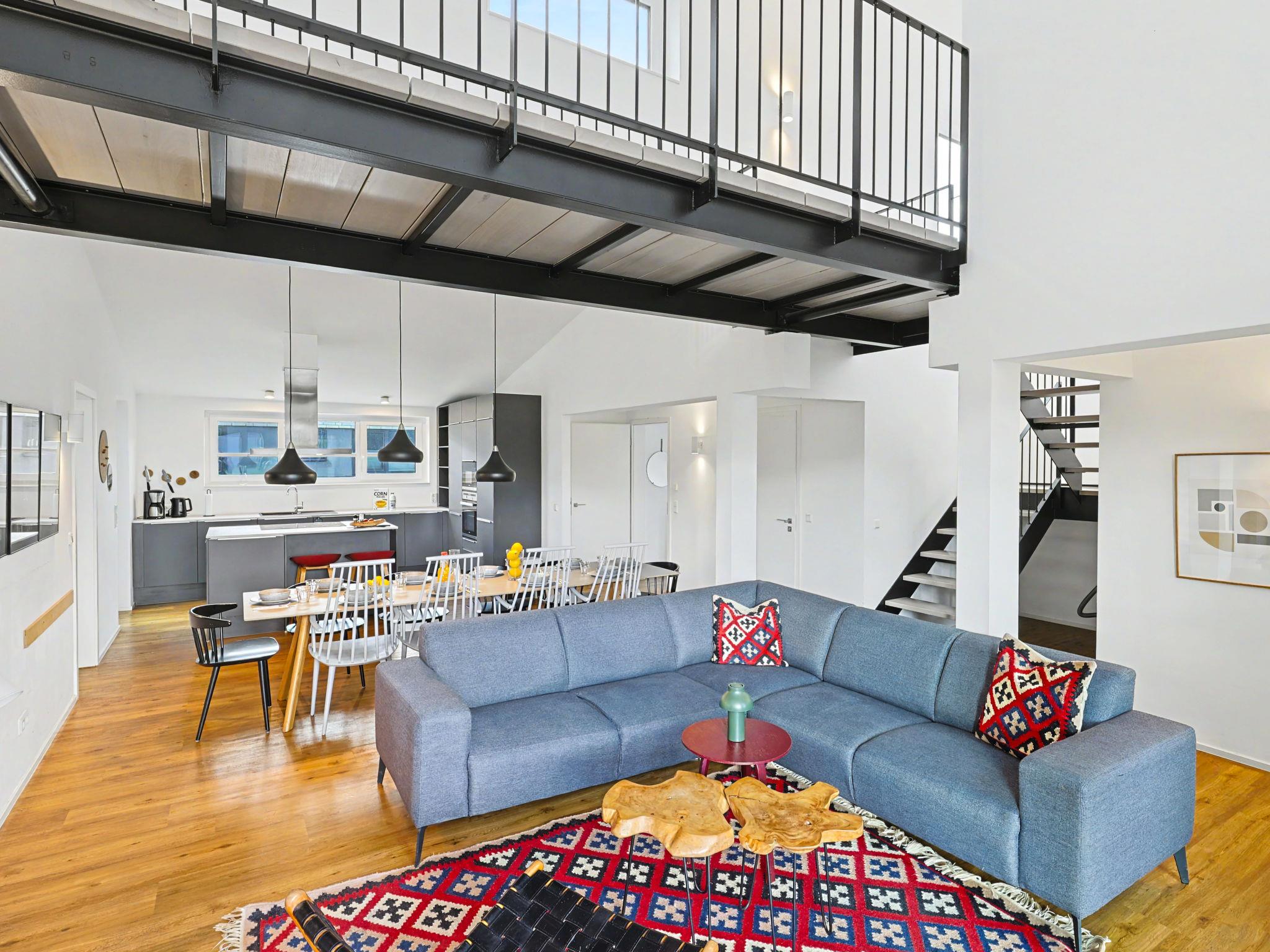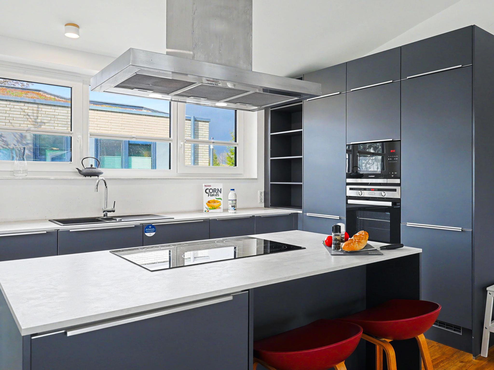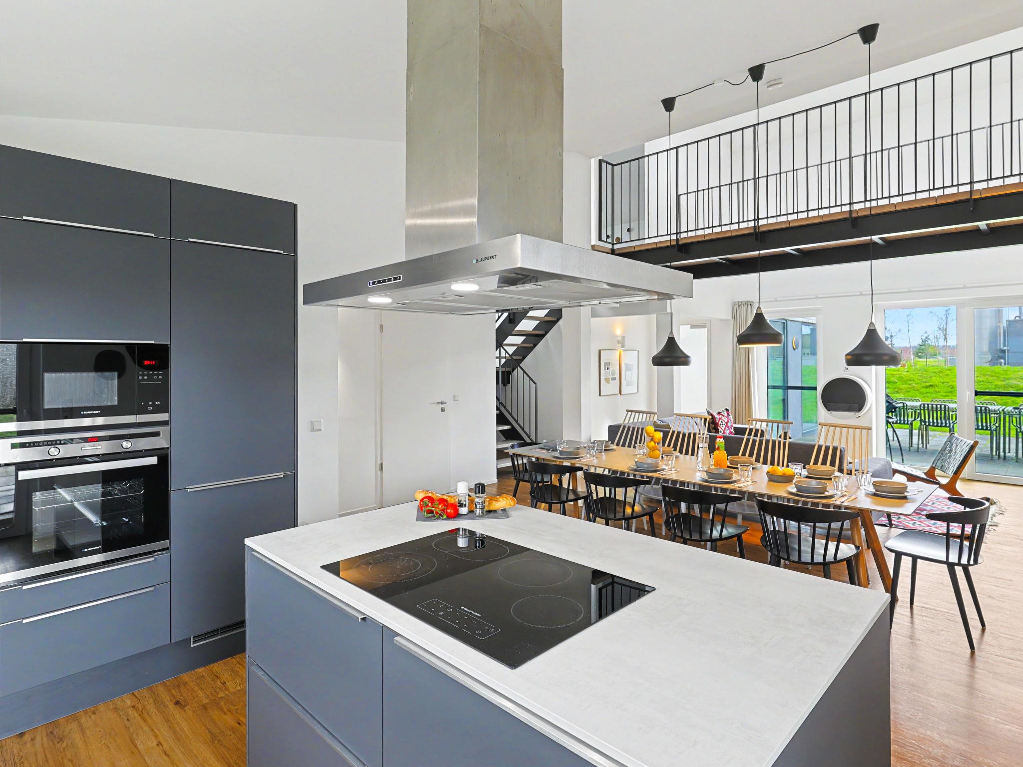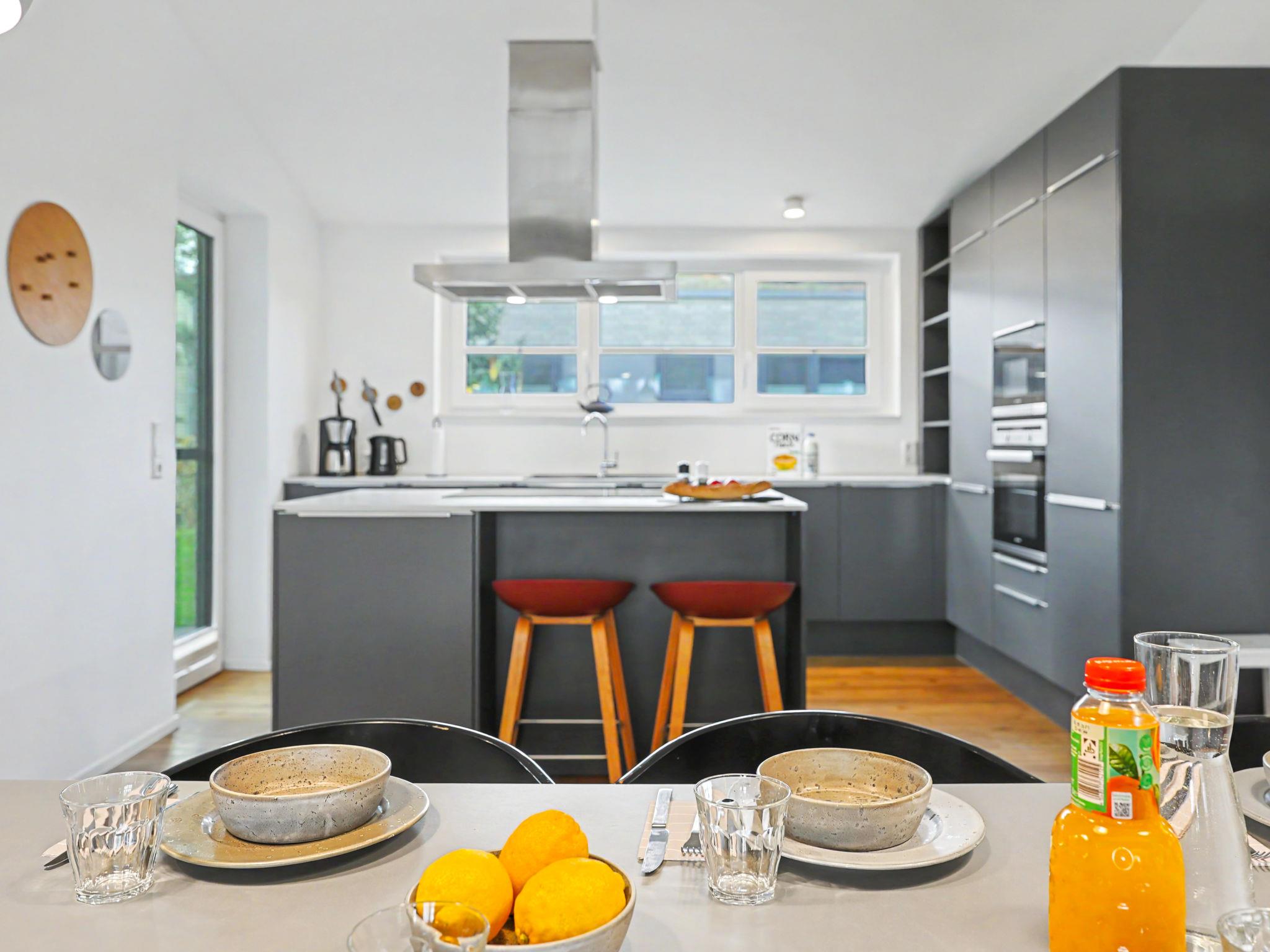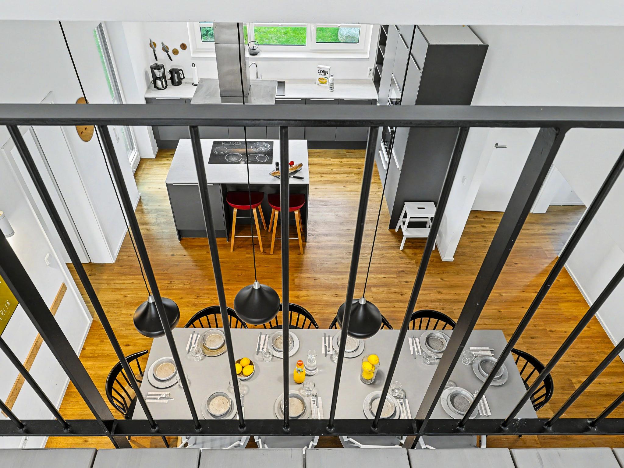 "Dümmersee Lodge", 6-room house 192 m2 on 2 levels. Tasteful and cosy furnishings: living/dining room with satellite TV (flat screen). Exit to the terrace. 1 room with 1 double bed (2 x 90 cm, length 200 cm). Open kitchen (oven, dishwasher, 4 ceramic glass hob hotplates, toaster, kettle, microwave, electric coffee machine). Bath/shower/WC. Upper floor: 4 rooms, each room with 1 double bed (2 x 90 cm, length 200 cm). 2 Baths/showers/WC. Terrace. Terrace furniture, electric barbecue. Facilities: washing machine, dryer, sauna, children's high chair (extra), hair dryer. Internet (WiFi, free). Please note: non-smoking house. 1 small pet/ dog allowed. Smoke alarm.