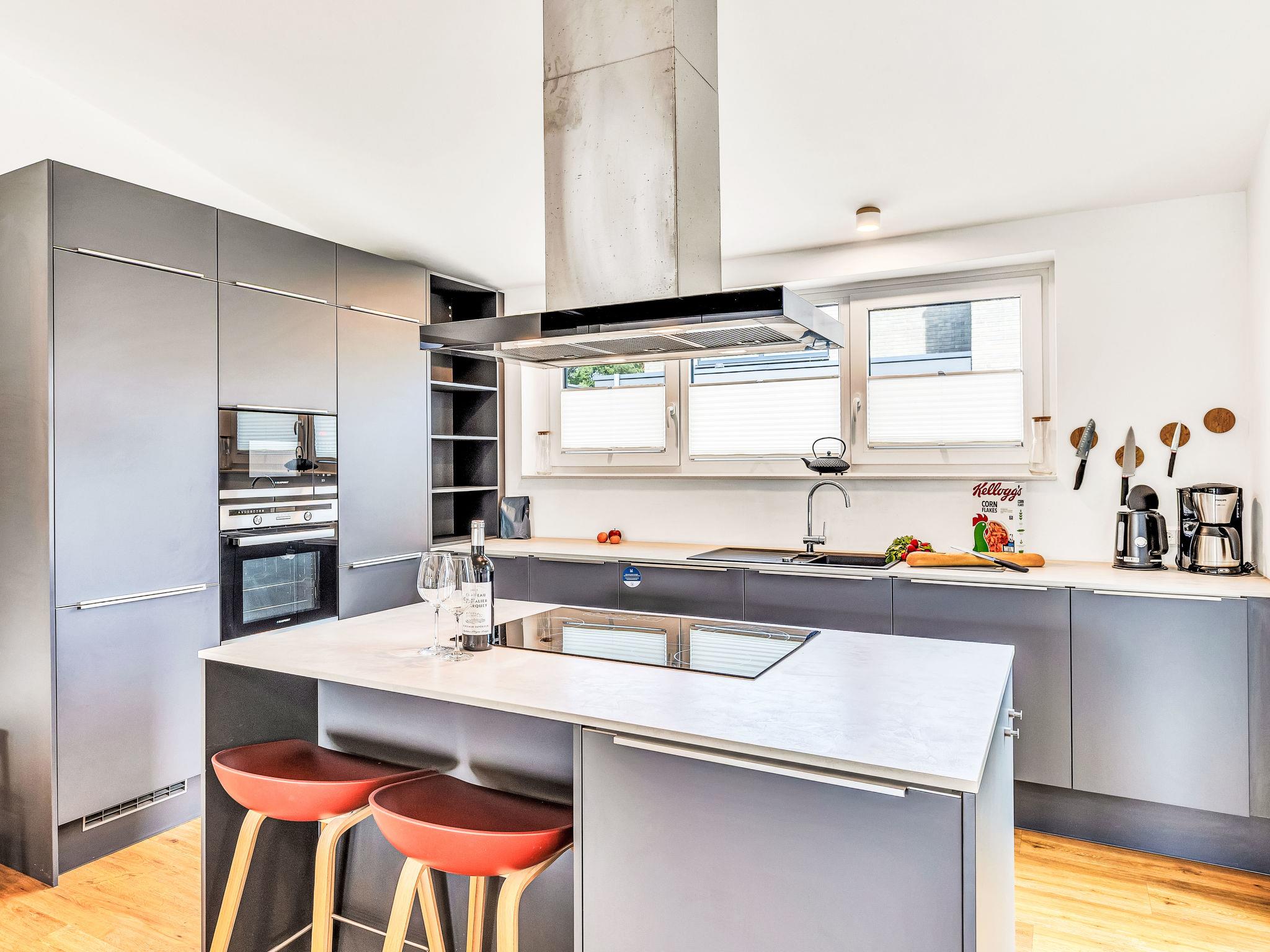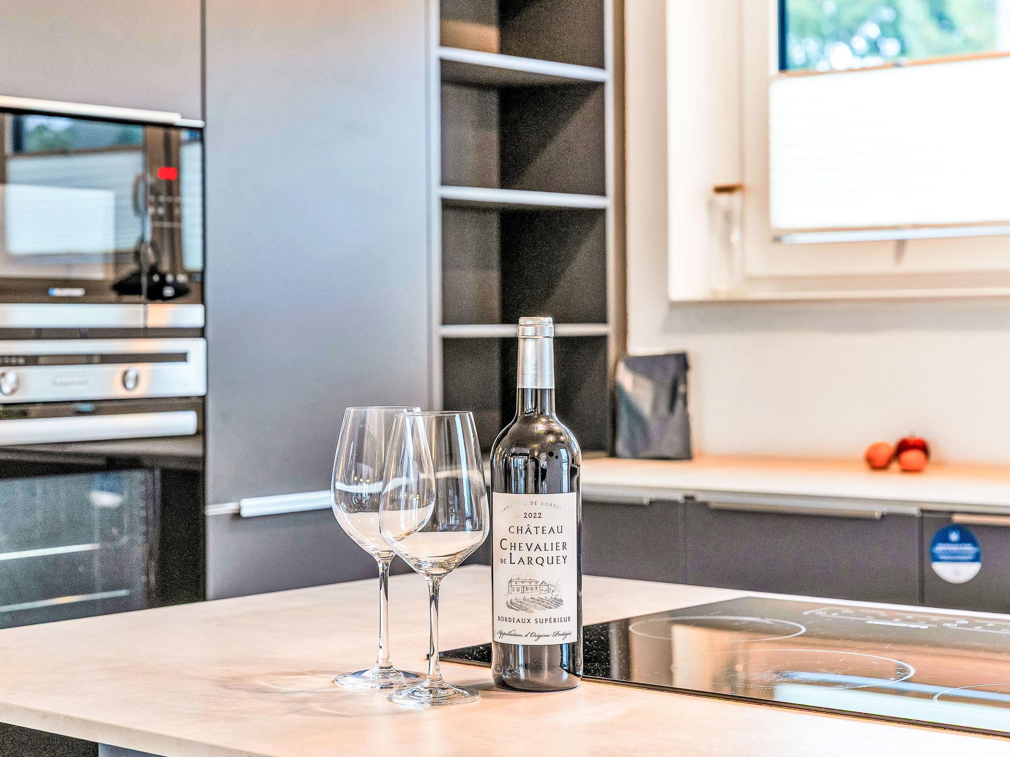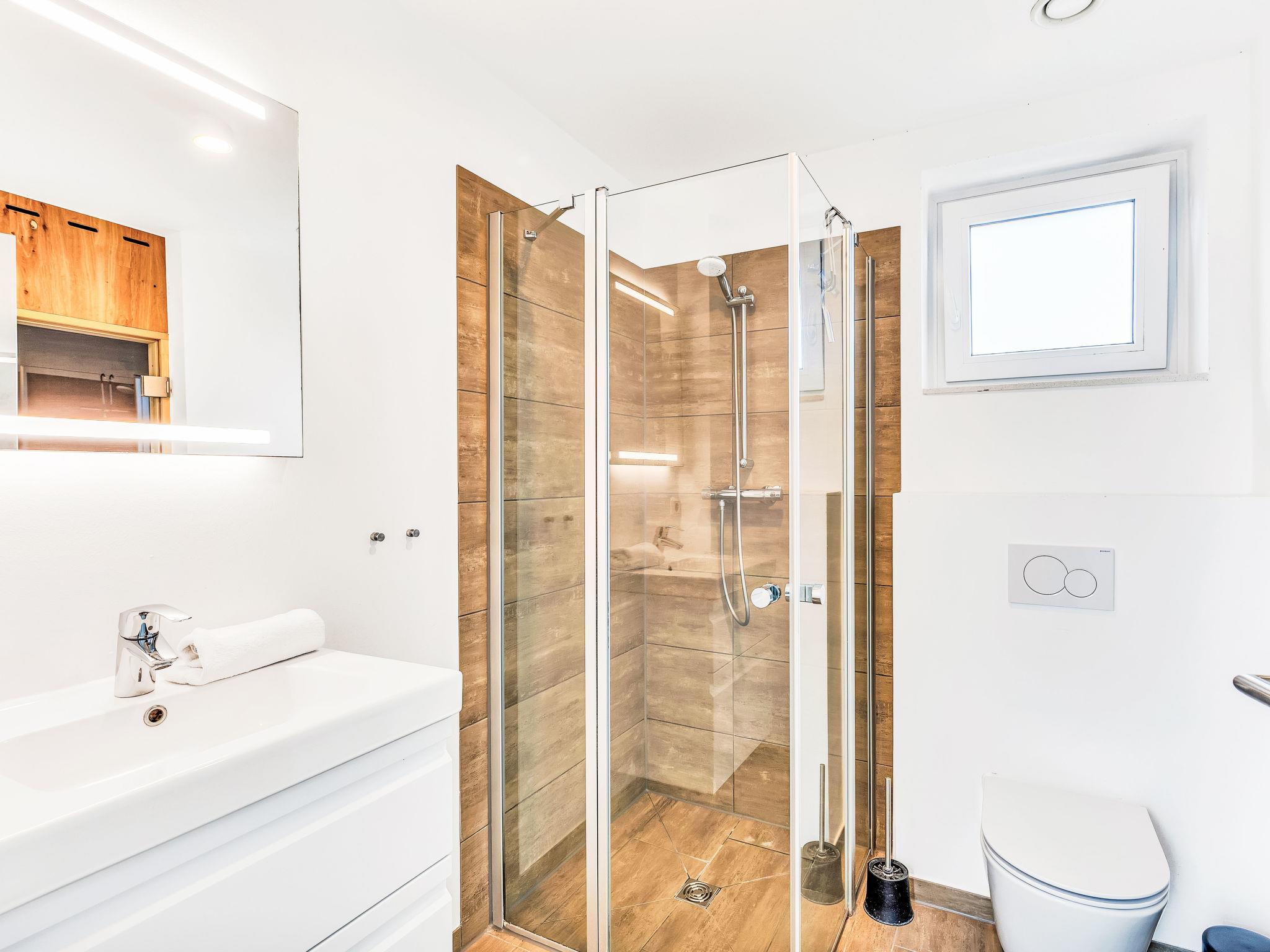 "Horizont Lodge", 6-room house 192 m2 on 2 levels. Tasteful and cosy furnishings: living/dining room with satellite TV (flat screen). Exit to the terrace. 1 room with 1 double bed (2 x 90 cm, length 200 cm). Open kitchen (oven, dishwasher, 4 ceramic glass hob hotplates, toaster, kettle, microwave, electric coffee machine). Bath/shower/WC. Upper floor: 4 rooms, each room with 1 double bed (2 x 90 cm, length 200 cm). 2 Baths/showers/WC. Terrace. Terrace furniture, electric barbecue. Facilities: washing machine, dryer, sauna, children's high chair (extra), hair dryer. Internet (WiFi, free). Please note: non-smoking house. 1 small pet/ dog allowed. Smoke alarm.