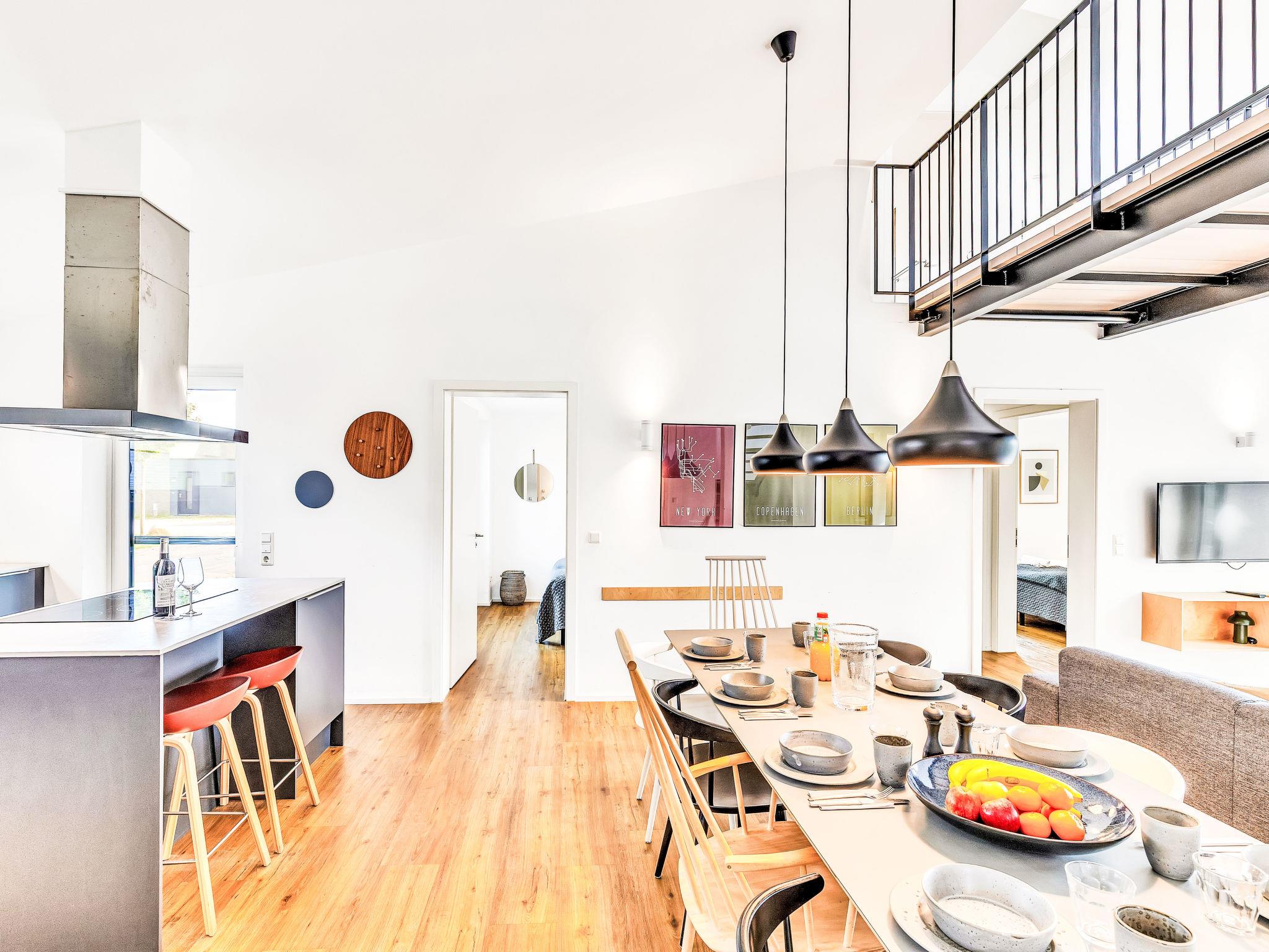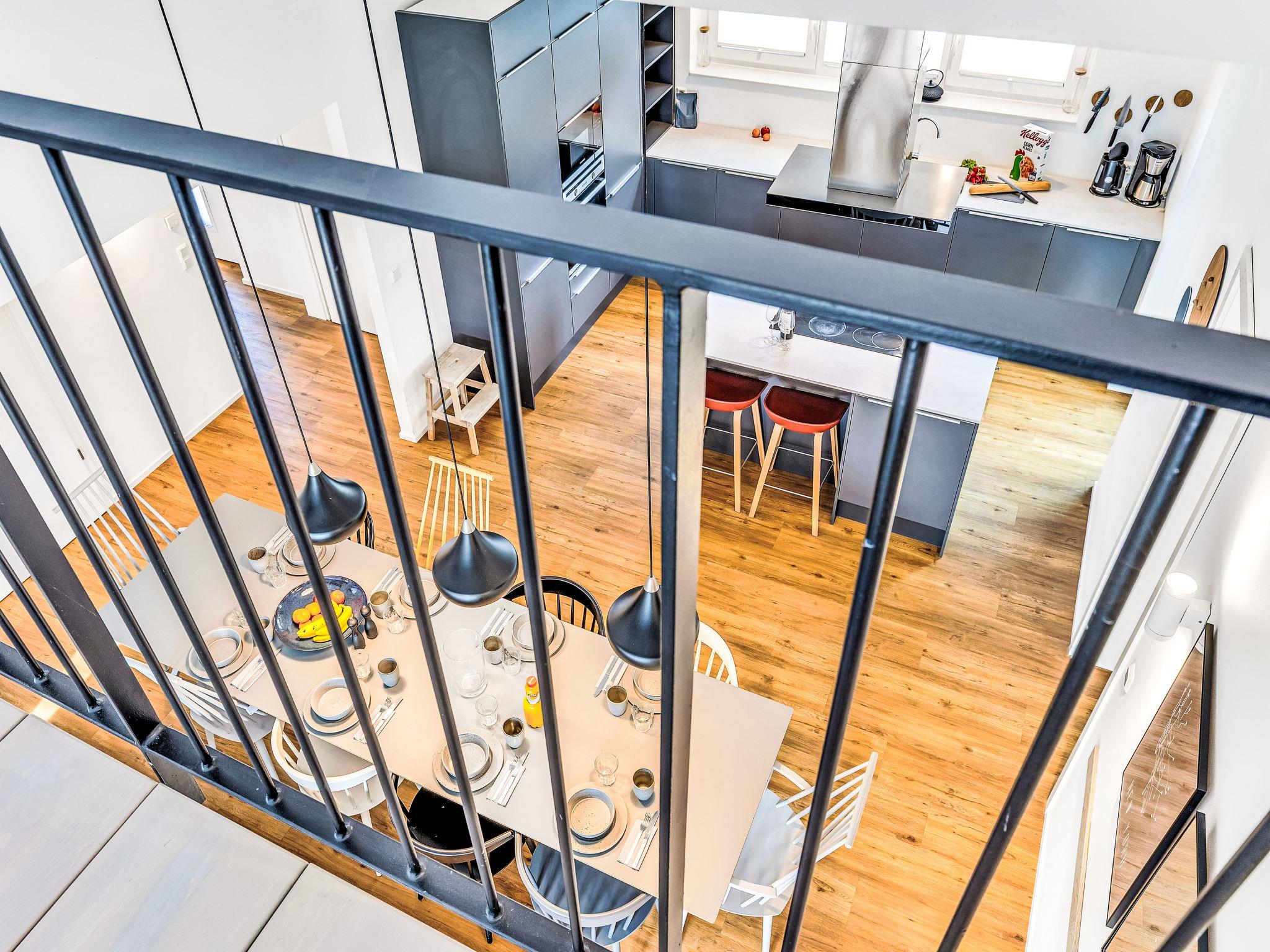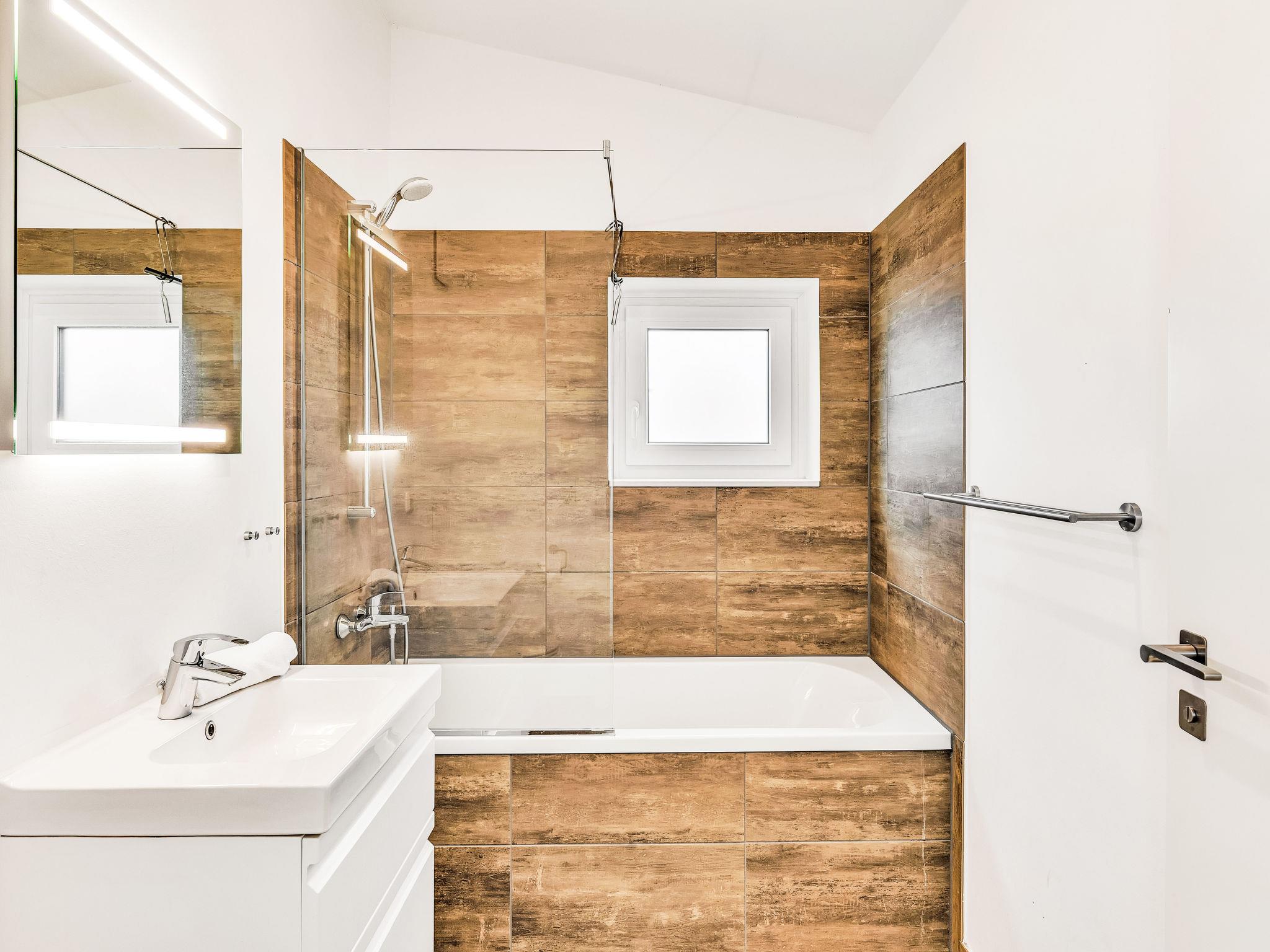 "Horizont Lodge", 6-room house 192 m2 on 2 levels. Tasteful and cosy furnishings: living/dining room with satellite TV (flat screen). Exit to the terrace. 1 room with 1 double bed (2 x 90 cm, length 200 cm). Open kitchen (oven, dishwasher, 4 ceramic glass hob hotplates, toaster, kettle, microwave, electric coffee machine). Bath/shower/WC. Upper floor: 4 rooms, each room with 1 double bed (2 x 90 cm, length 200 cm). 2 Baths/showers/WC. Terrace. Terrace furniture, electric barbecue. Facilities: washing machine, dryer, sauna, children's high chair (extra), hair dryer. Internet (WiFi, free). Please note: non-smoking house. 1 small pet/ dog allowed. Smoke alarm.