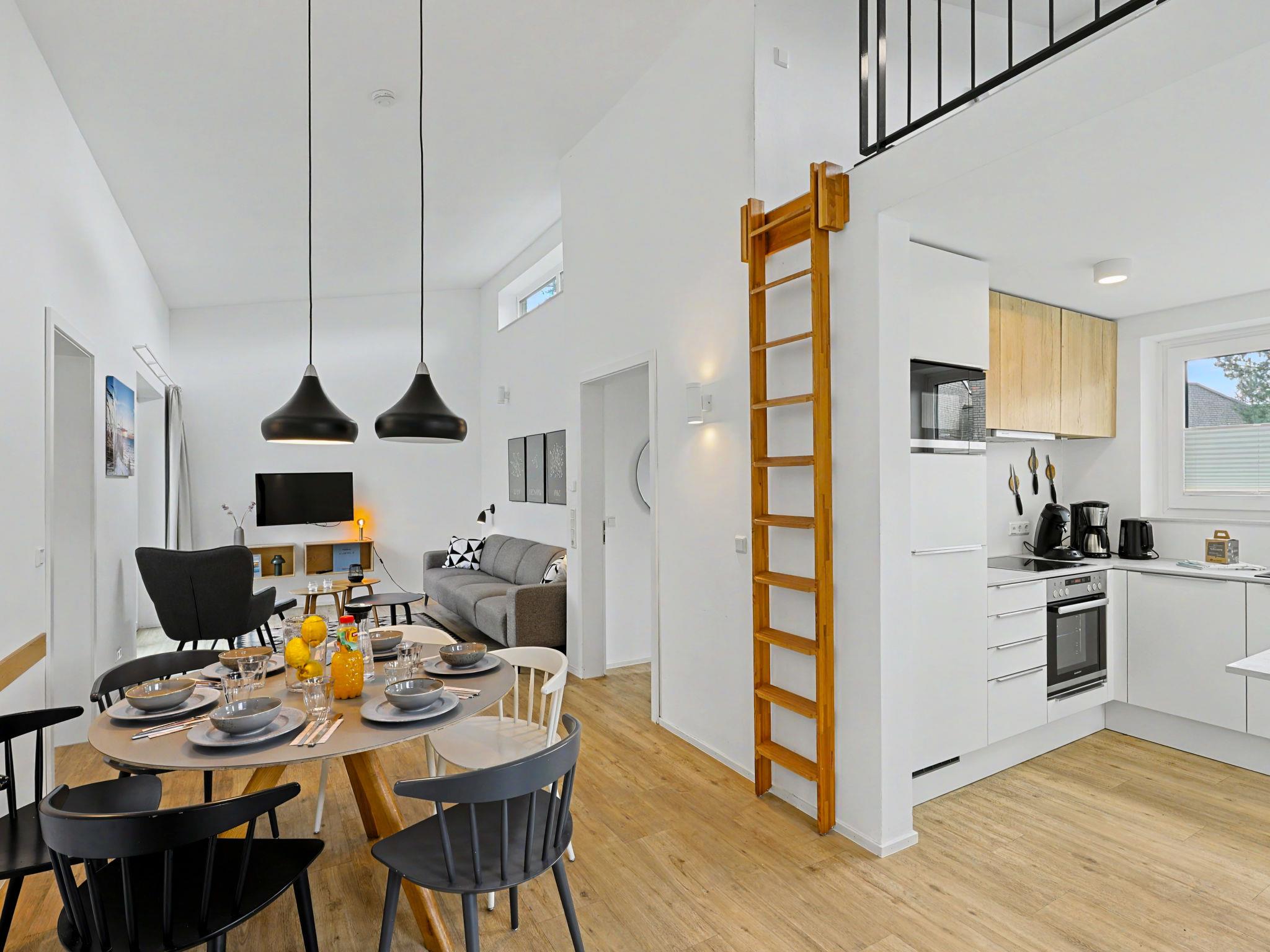 "Strandnah 131", 3-room house 85 m2 on 2 levels. Tasteful and cosy furnishings: living/dining room with satellite TV (flat screen). Exit to the terrace. 2 rooms, each room with 1 double bed (2 x 90 cm, length 200 cm). Open kitchen (oven, dishwasher, 4 ceramic glass hob hotplates, toaster, kettle, microwave, electric coffee machine). Bath/WC, shower/WC. Upper floor: (ladder) open gallery with sloping ceilings with 2 sleeping facilities. Terrace. Terrace furniture, electric barbecue. Facilities: washing machine, dryer, sauna, children's high chair (extra), hair dryer. Internet (WiFi, free). Please note: non-smoking house. Smoke alarm.