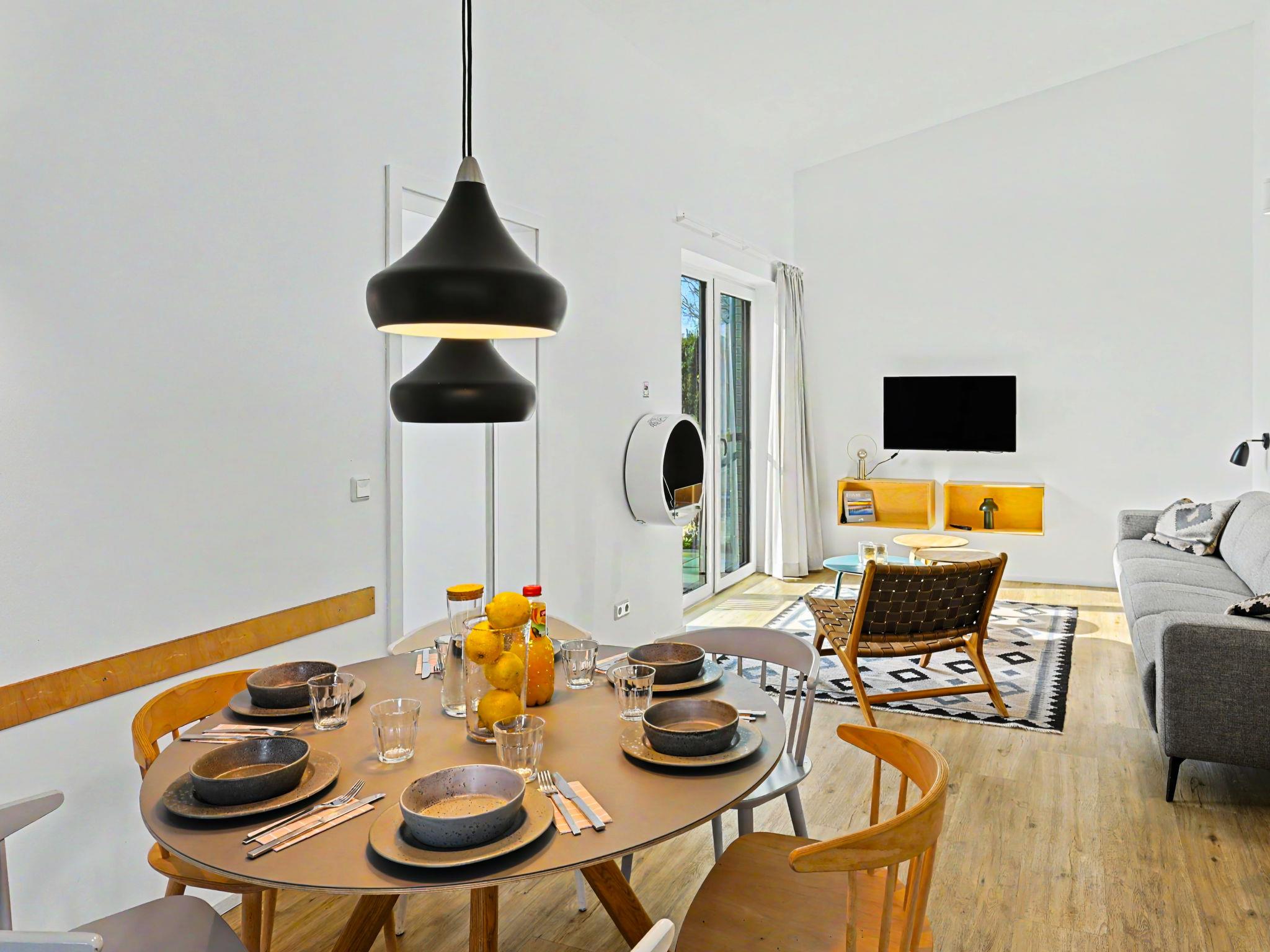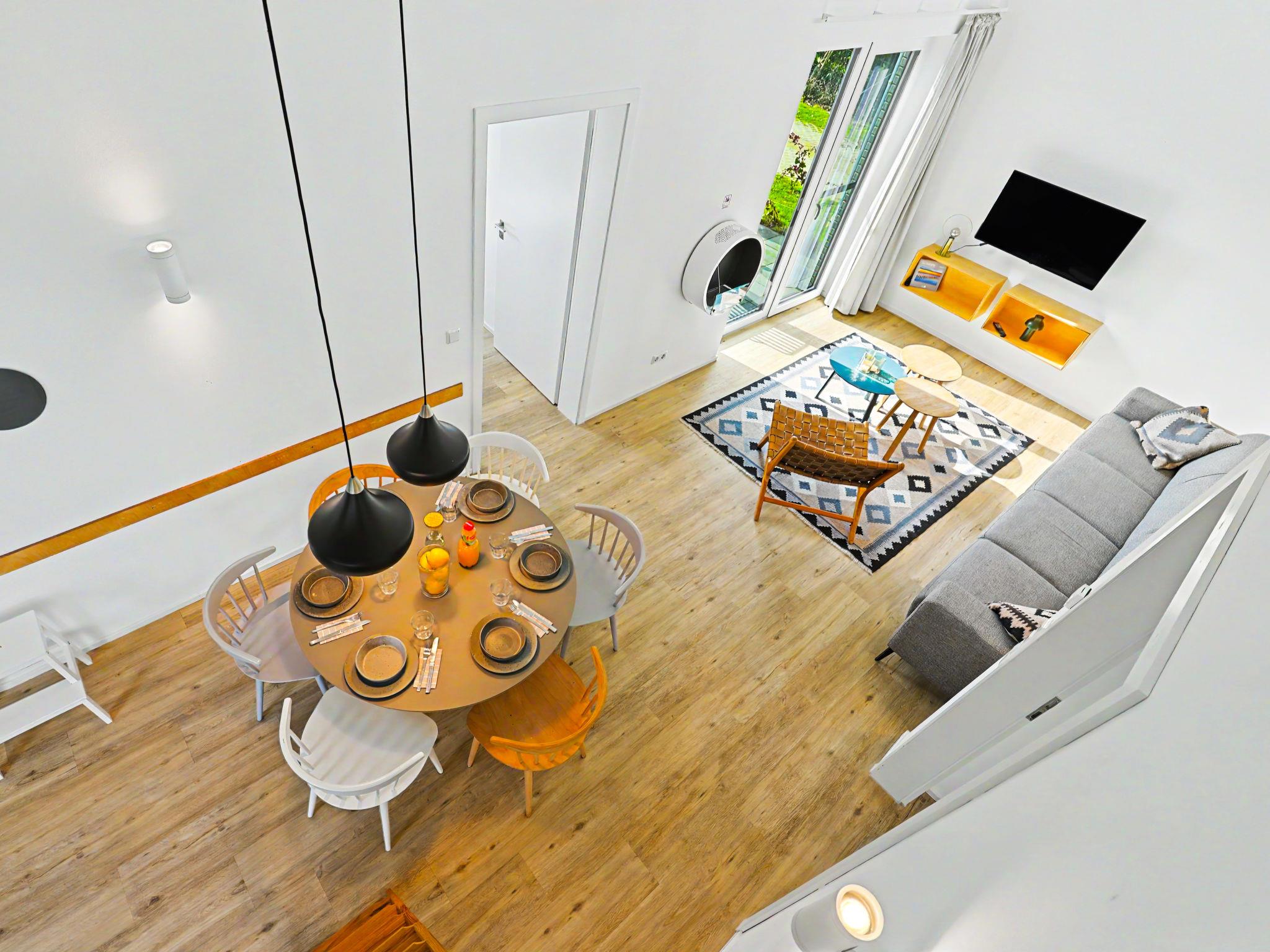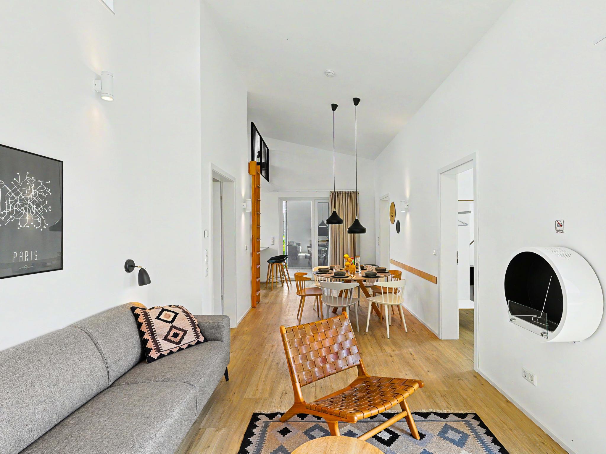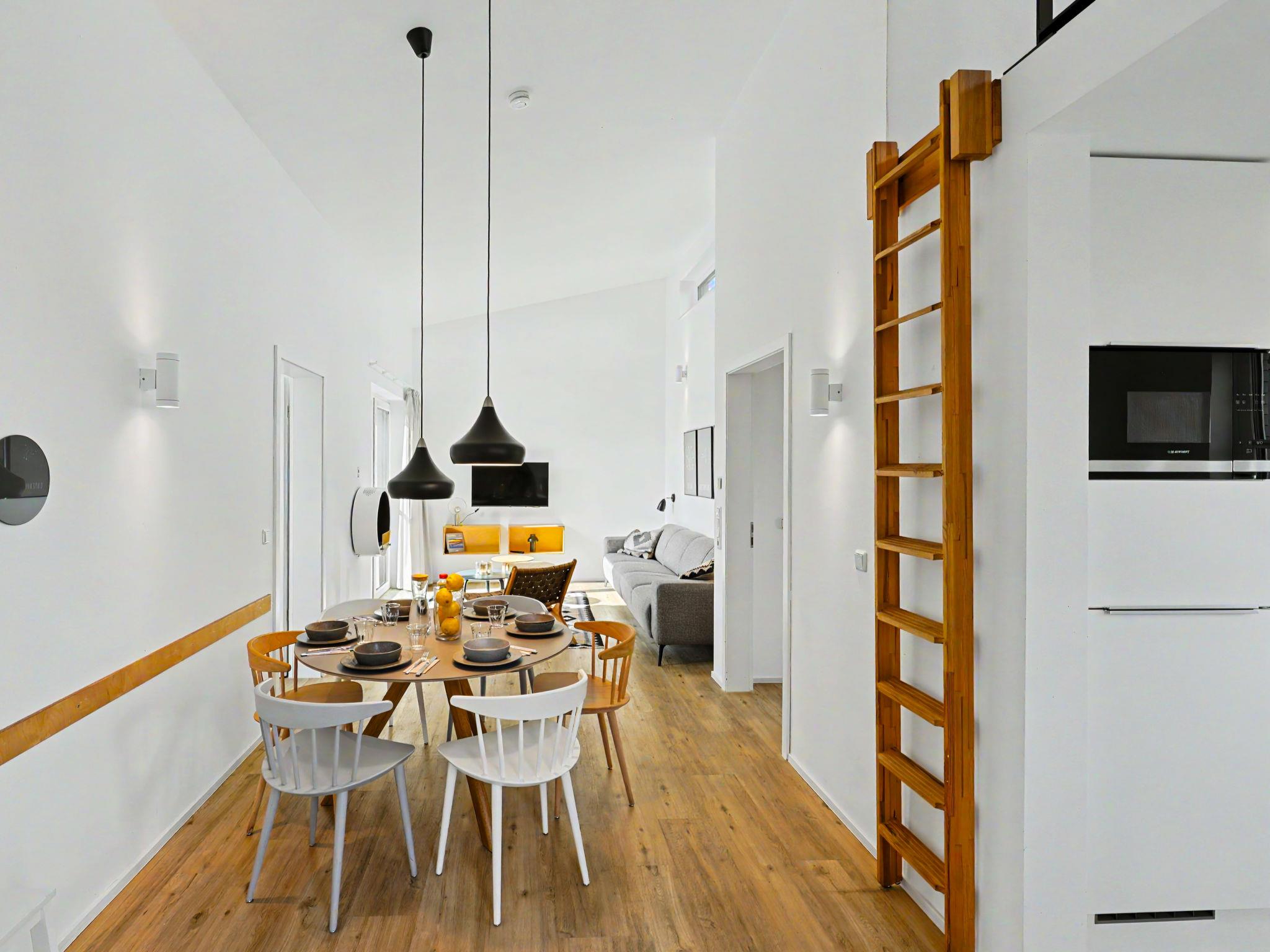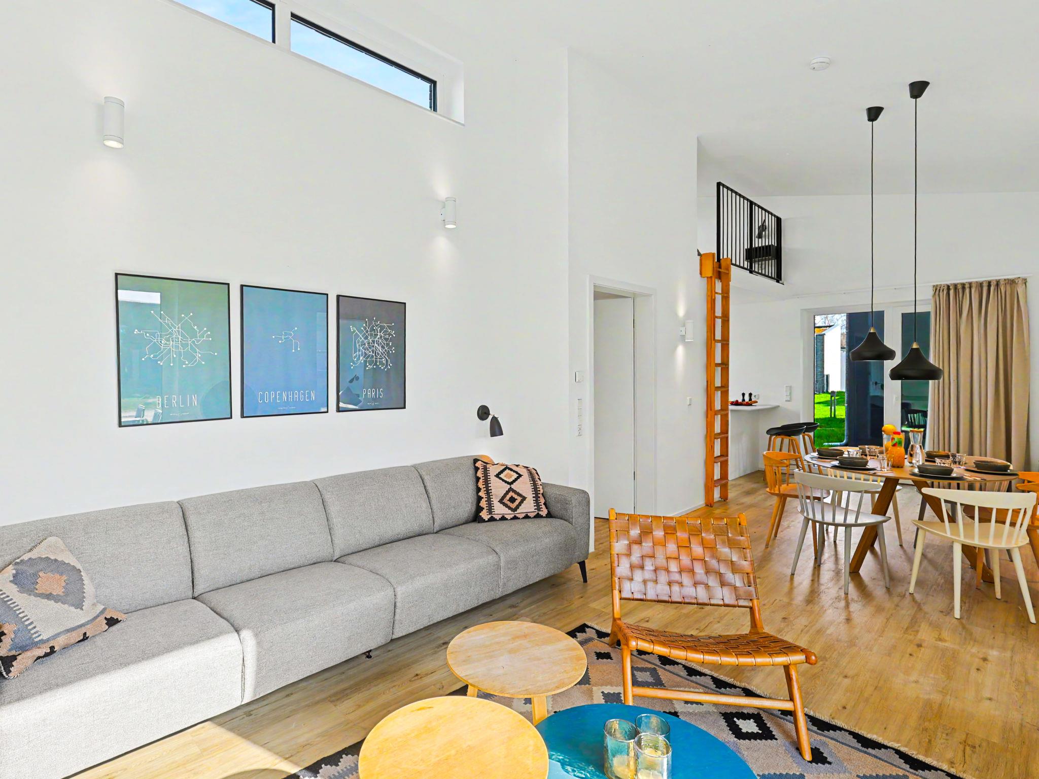 "Küstenzauber (282)", 3-room house 85 m2 on 2 levels. Tasteful and cosy furnishings: living/dining room with satellite TV (flat screen). Exit to the terrace. 2 rooms, each room with 1 double bed (2 x 90 cm, length 200 cm). Open kitchen (oven, dishwasher, 4 ceramic glass hob hotplates, toaster, kettle, microwave, electric coffee machine). Bath/WC, shower/WC. Upper floor: (ladder) open gallery with sloping ceilings with 2 sleeping facilities. Terrace. Terrace furniture, electric barbecue. Facilities: washing machine, dryer, sauna, children's high chair (extra), hair dryer. Internet (WiFi, free). Please note: non-smoking house. Smoke alarm.