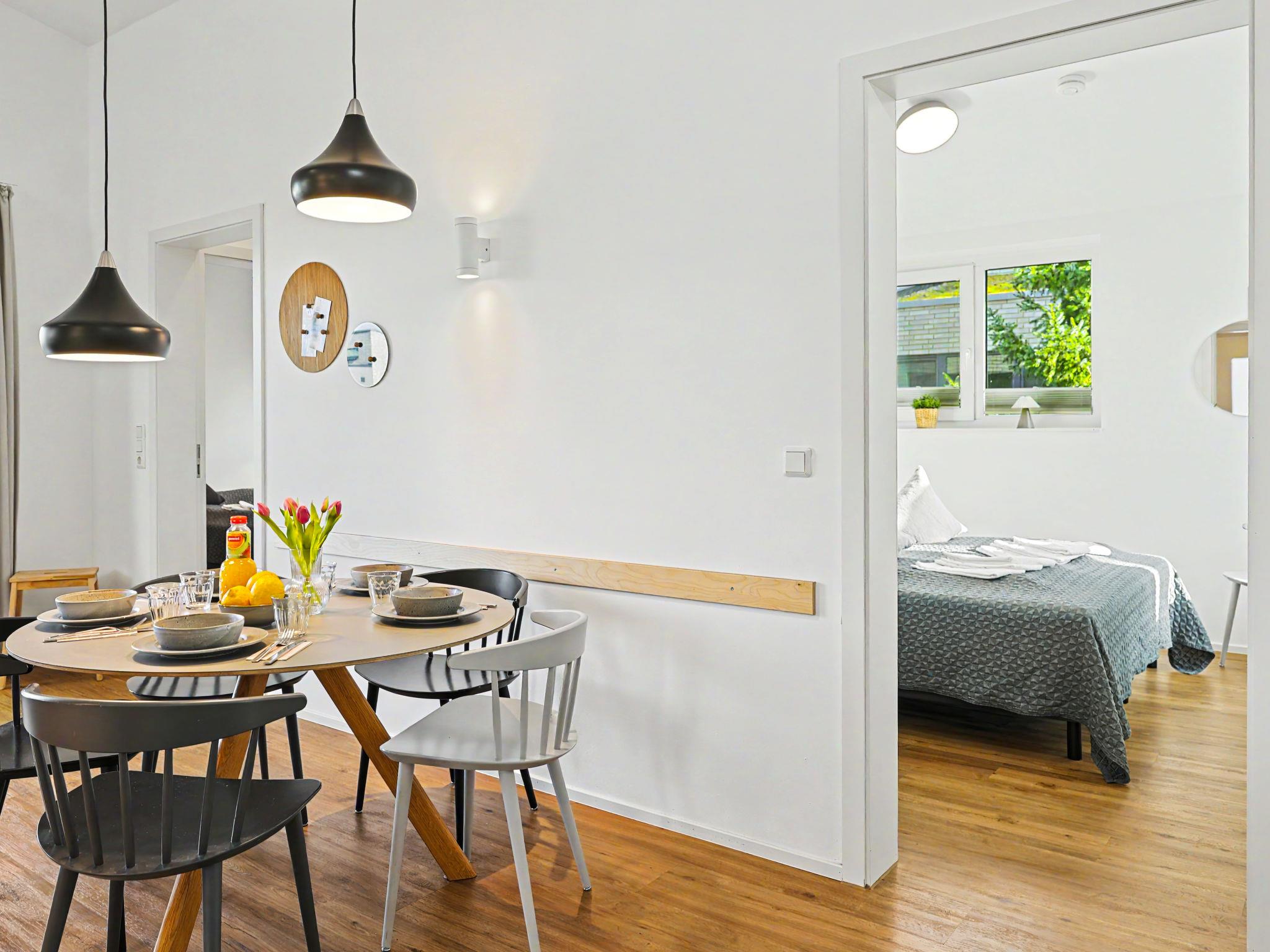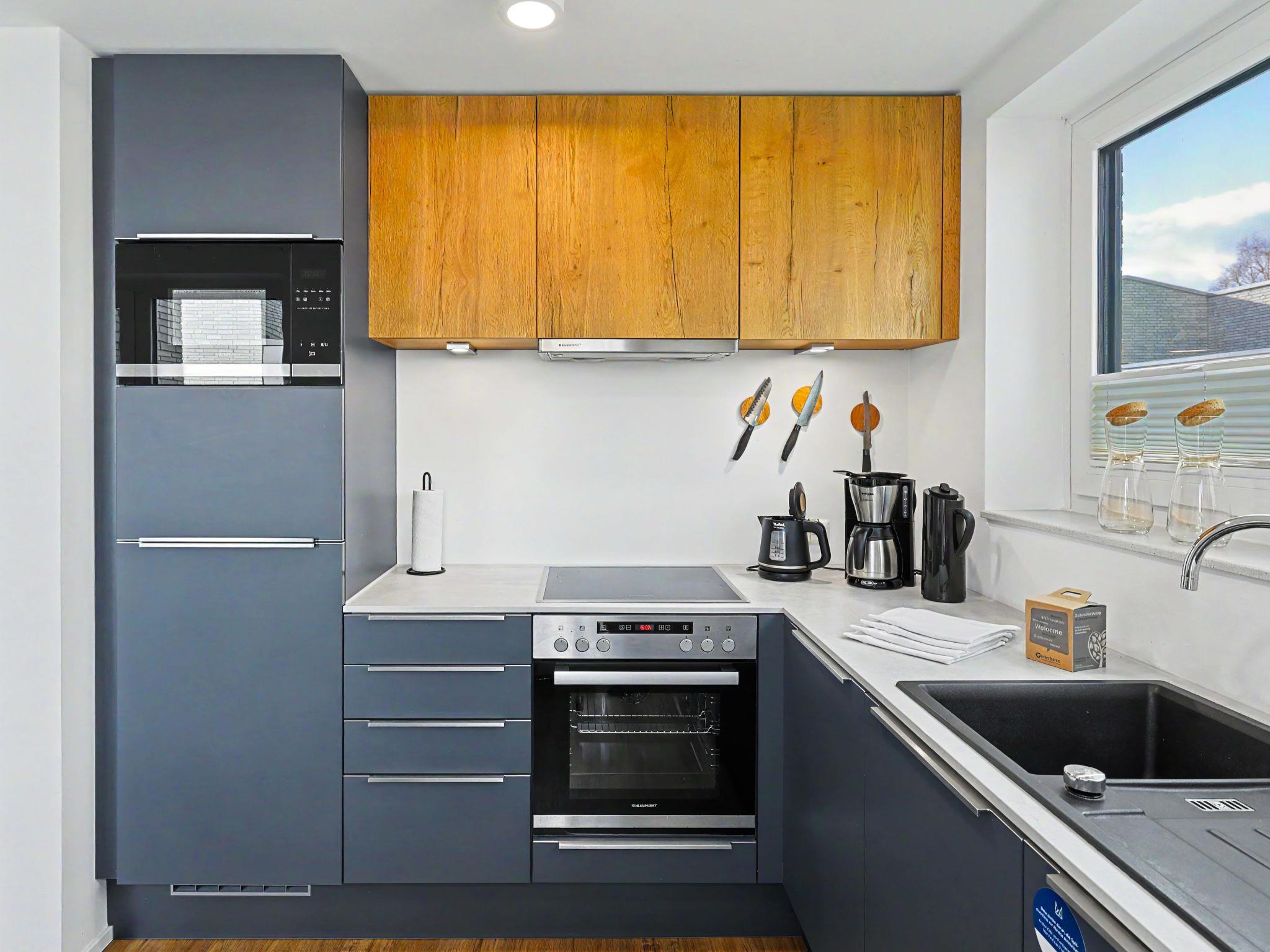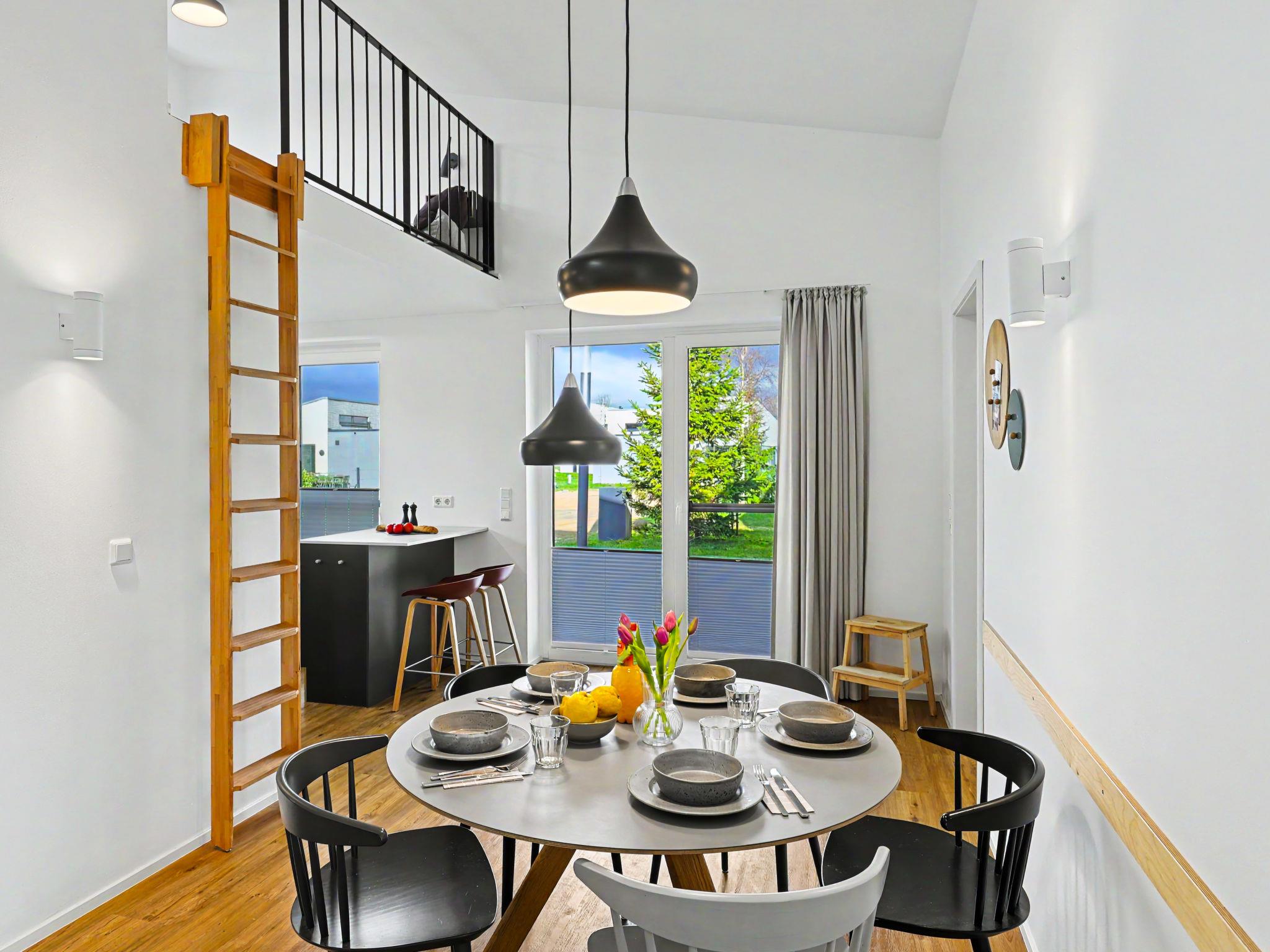 "Seezeit", 3-room house 85 m2 on 2 levels. Tasteful and cosy furnishings: living/dining room with satellite TV (flat screen). Exit to the terrace. 2 rooms, each room with 1 double bed (2 x 90 cm, length 200 cm). Open kitchen (oven, dishwasher, 4 ceramic glass hob hotplates, toaster, kettle, microwave, electric coffee machine). Bath/WC, shower/WC. Upper floor: (ladder) open gallery with sloping ceilings with 2 sleeping facilities. Terrace. Terrace furniture, electric barbecue. Facilities: washing machine, dryer, sauna, children's high chair (extra), hair dryer. Internet (WiFi, free). Please note: non-smoking house. Smoke alarm.