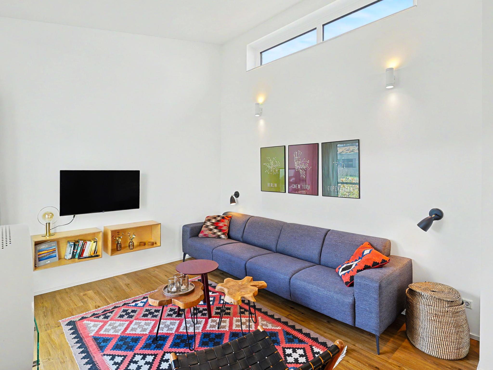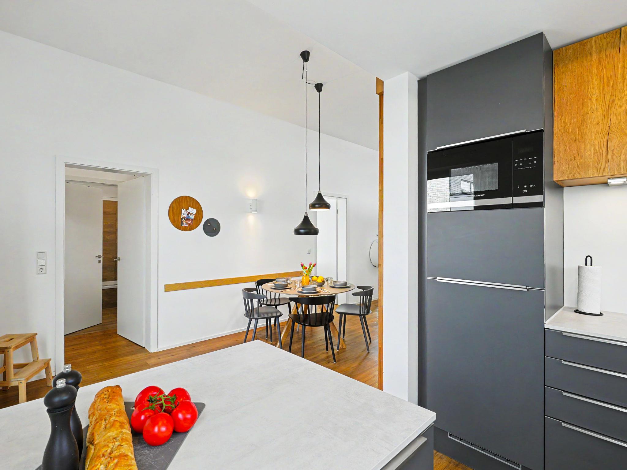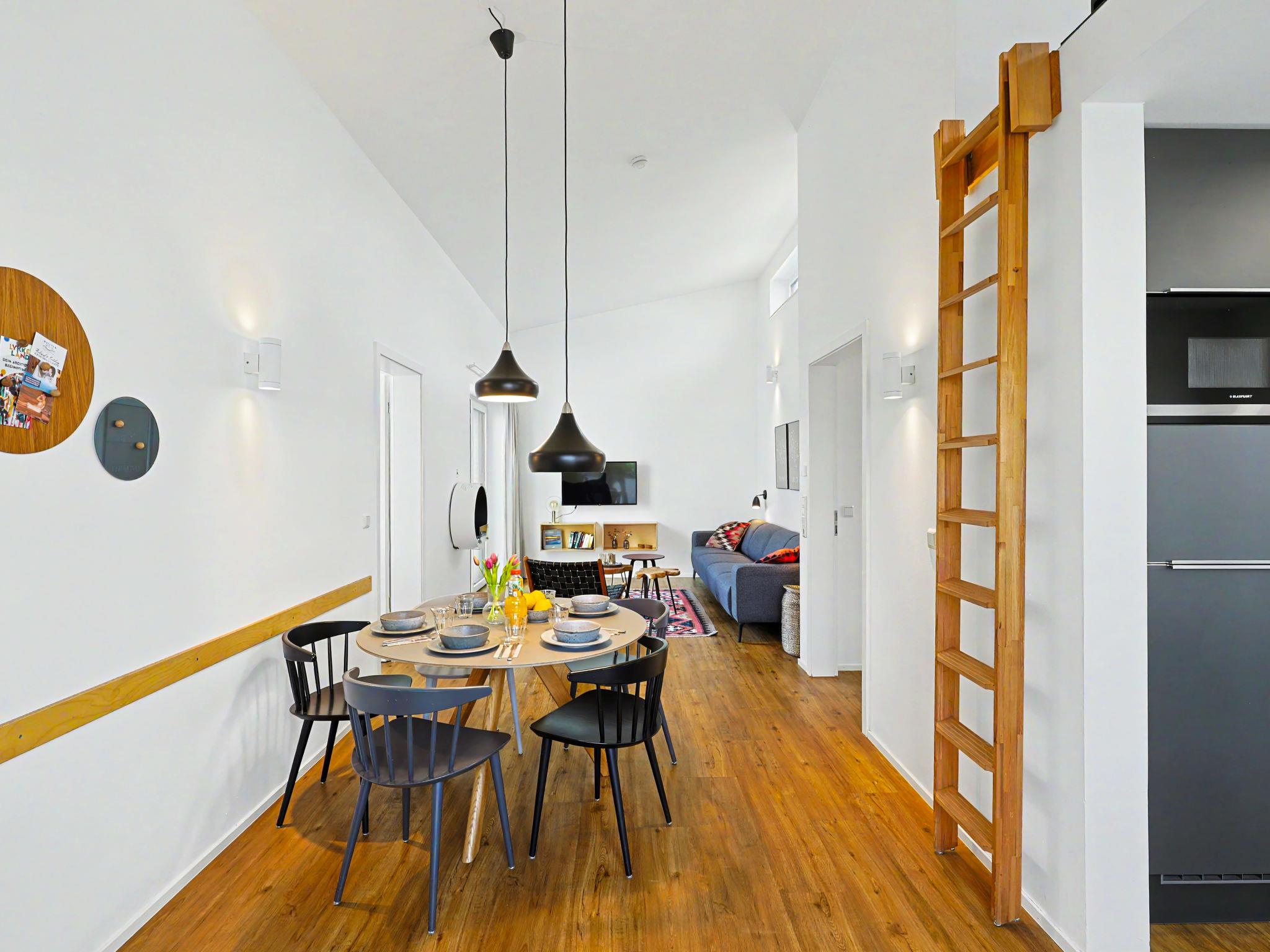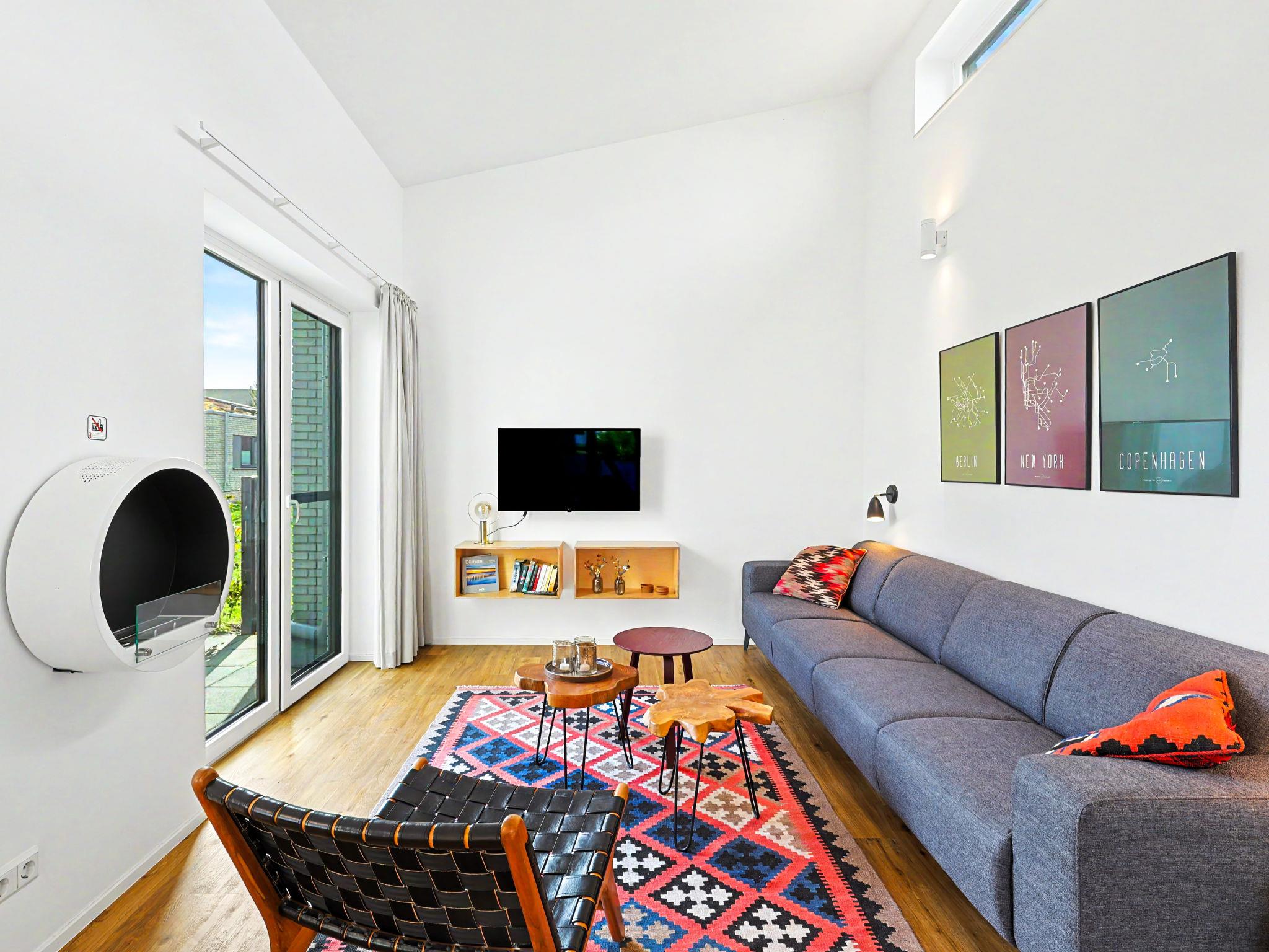 "Seezeit", 3-room house 85 m2 on 2 levels. Tasteful and cosy furnishings: living/dining room with satellite TV (flat screen). Exit to the terrace. 2 rooms, each room with 1 double bed (2 x 90 cm, length 200 cm). Open kitchen (oven, dishwasher, 4 ceramic glass hob hotplates, toaster, kettle, microwave, electric coffee machine). Bath/WC, shower/WC. Upper floor: (ladder) open gallery with sloping ceilings with 2 sleeping facilities. Terrace. Terrace furniture, electric barbecue. Facilities: washing machine, dryer, sauna, children's high chair (extra), hair dryer. Internet (WiFi, free). Please note: non-smoking house. Smoke alarm.