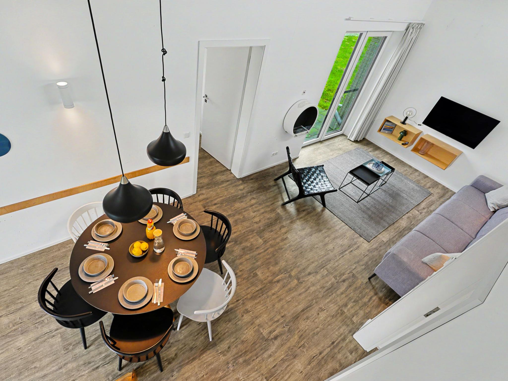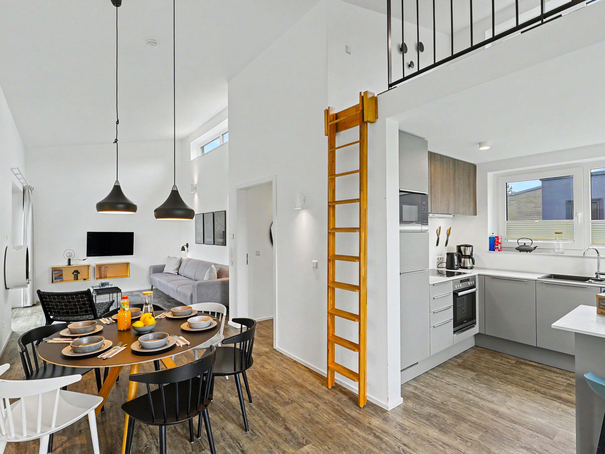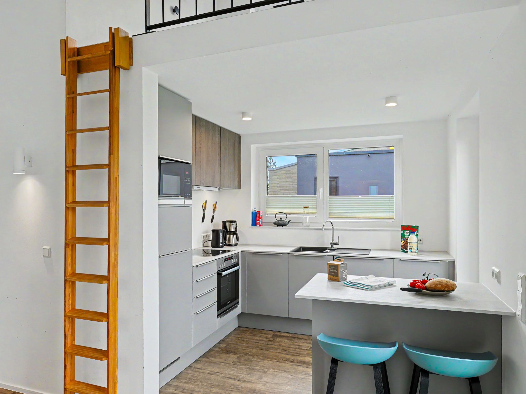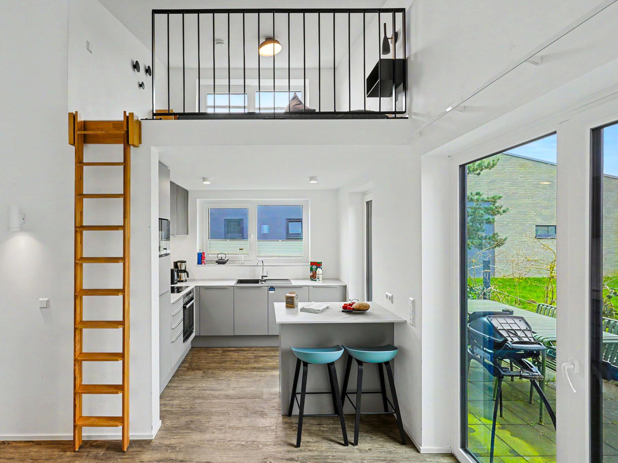 "Nord Nest", 3-room house 85 m2 on 2 levels. Tasteful and cosy furnishings: living/dining room with satellite TV (flat screen). Exit to the terrace. 2 rooms, each room with 1 double bed (2 x 90 cm, length 200 cm). Open kitchen (oven, dishwasher, 4 ceramic glass hob hotplates, toaster, kettle, microwave, electric coffee machine). Bath/WC, shower/WC. Upper floor: (ladder) open gallery with sloping ceilings with 2 sleeping facilities. Terrace. Terrace furniture, electric barbecue. Facilities: washing machine, dryer, sauna, children's high chair (extra), hair dryer. Internet (WiFi, free). Please note: non-smoking house. Smoke alarm.