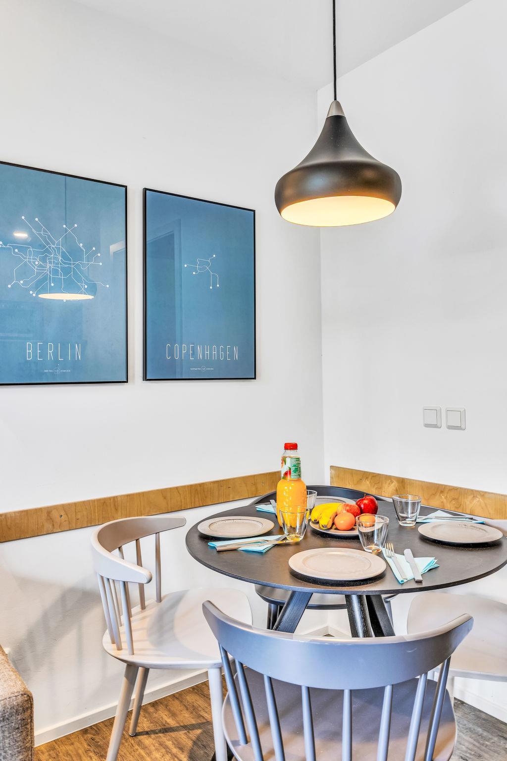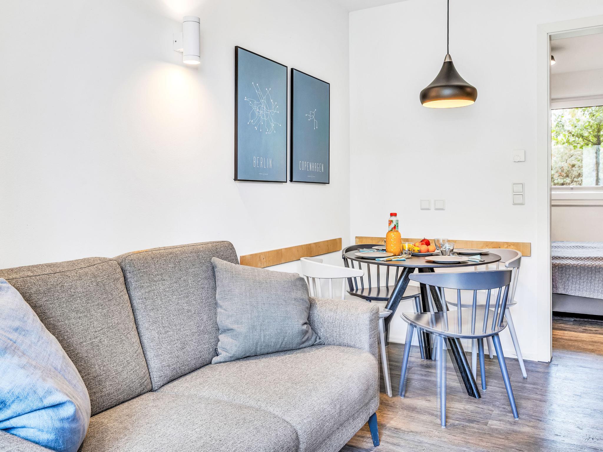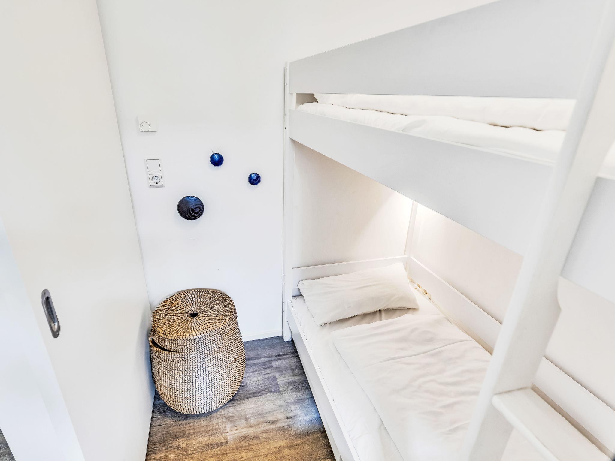 "Seemomente (615)", 3-room apartment 44 m2, on the ground floor. Modern and tasteful furnishings: living/dining room with satellite TV (flat screen). Exit to the terrace. 1 room with 1 double bed (180 cm, length 200 cm). 1 children's room with 1 x 2 bunk beds (70 cm, length 190 cm). Kitchenette (dishwasher, 2 ceramic glass hob hotplates, toaster, kettle, microwave, electric coffee machine). Shower/WC. Terrace. Terrace furniture, barbecue. Facilities: Internet (WiFi, free). Parking at the house. Please note: non-smokers only.