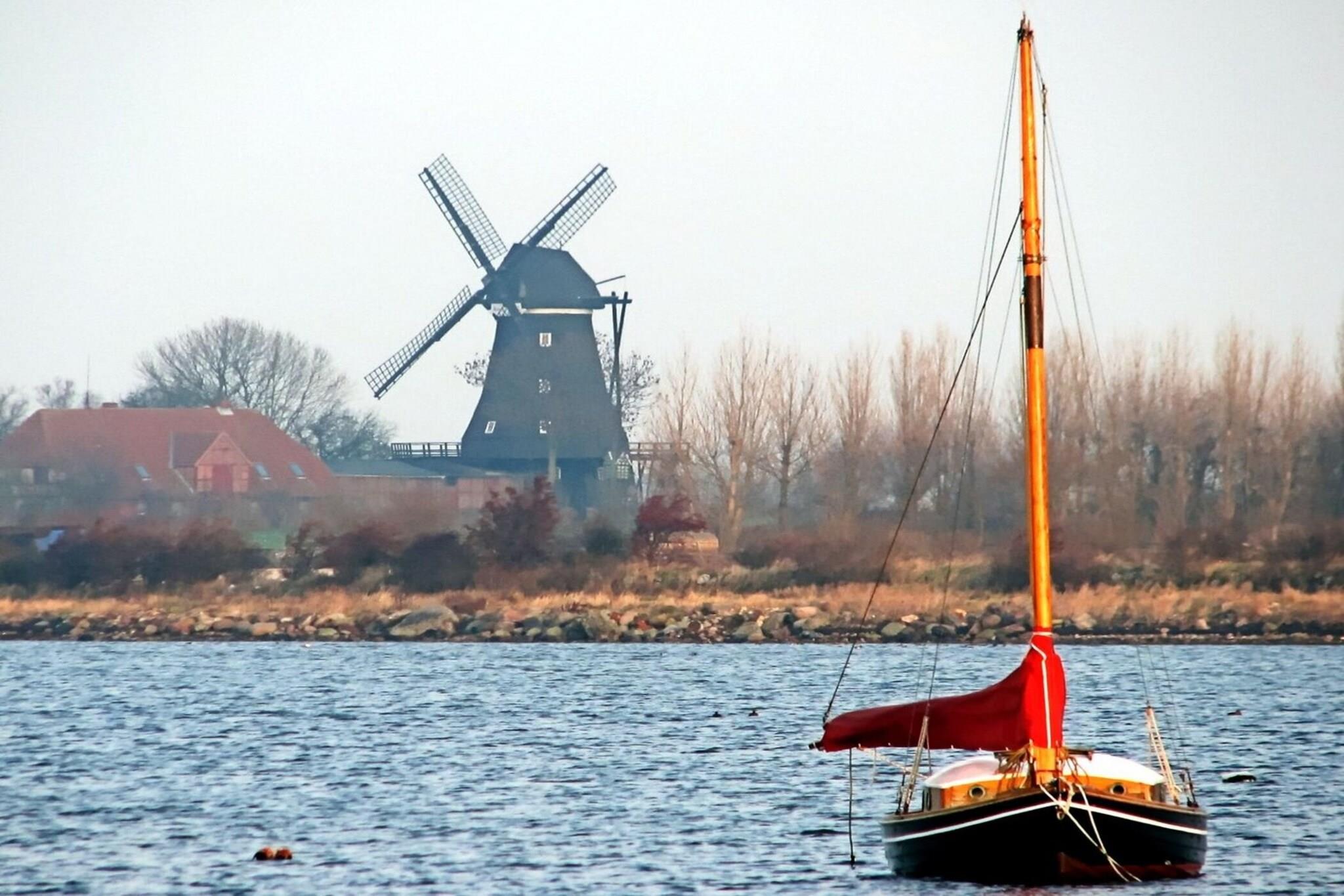 This cozy holiday apartment on the 1st floor is friendly and brightly furnished. A small kitchenette with many different kitchen appliances such as a waffle iron, microwave with baking function and even a dishwasher leaves nothing to be desired. You will also find a cozy balcony with garden furniture here, which invites you to spend pleasant hours on summer evenings with a view of the green area. The apartment has been furnished with a nautical thought and loving devotion and really nice retro touches. The apartment is in close proximity (approx. 150 m) to the water and the dike. The port area, which is only 300 m away, offers many views, including some imposing sailing ships. The dykes are great for cycling or walking to the nearest lighthouse. The historic mill, which can be viewed during opening hours, is also just a few minutes' walk away. The water in Lemkenhafen has a shallow entrance. This makes it perfect for kiting, surfing or stand-up paddling and with a fantastic view of the Fehmarnsund Bridge. Those who like to eat fish dishes should definitely visit the Aalkate or the Samoa. Here you will experience an unforgettable taste experience. Having your own parking space in front of the house saves a lot of time when looking for a parking space. The apartment is quietly off the main road. Highlights included: All usage-based energy costs, parking space Spend your vacation on the third largest island in Germany, between the Bays of Kiel and Mecklenburg in the Baltic Sea. The port of Orth is located in the southwest of the island. Fehmarn's 20 beaches measure more than 78 km in length - ideal for relaxing in one of the sunniest regions in Germany. You can reach the island from the mainland via the Fehmarn Sound Bridge. The varied coastline really offers something for everyone: dunes and lakes in the north, steep and cliff coasts in the east, sandy beaches in the south and breathtaking sunsets in the west. In the hinterland you will find charming landscape and nature reserves that need to be explored.