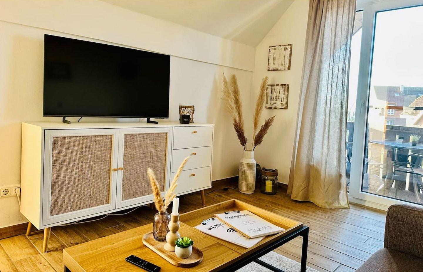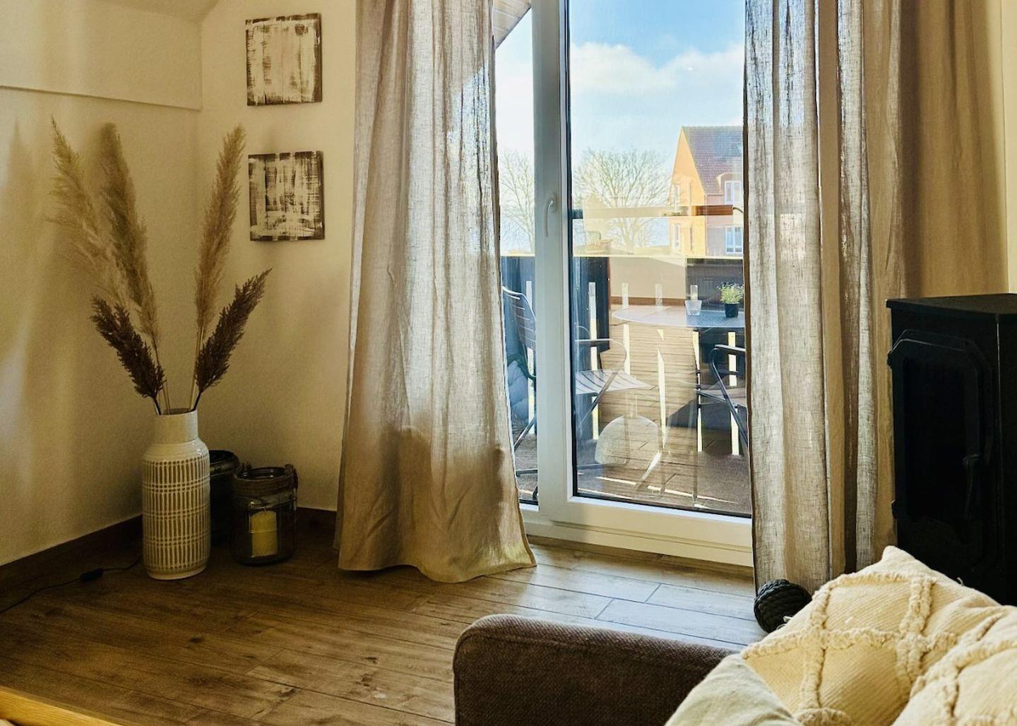 Moderne Ferienwohnung mit Balkon, Kaminofen und Privatparkplatz in Lemkenhafen