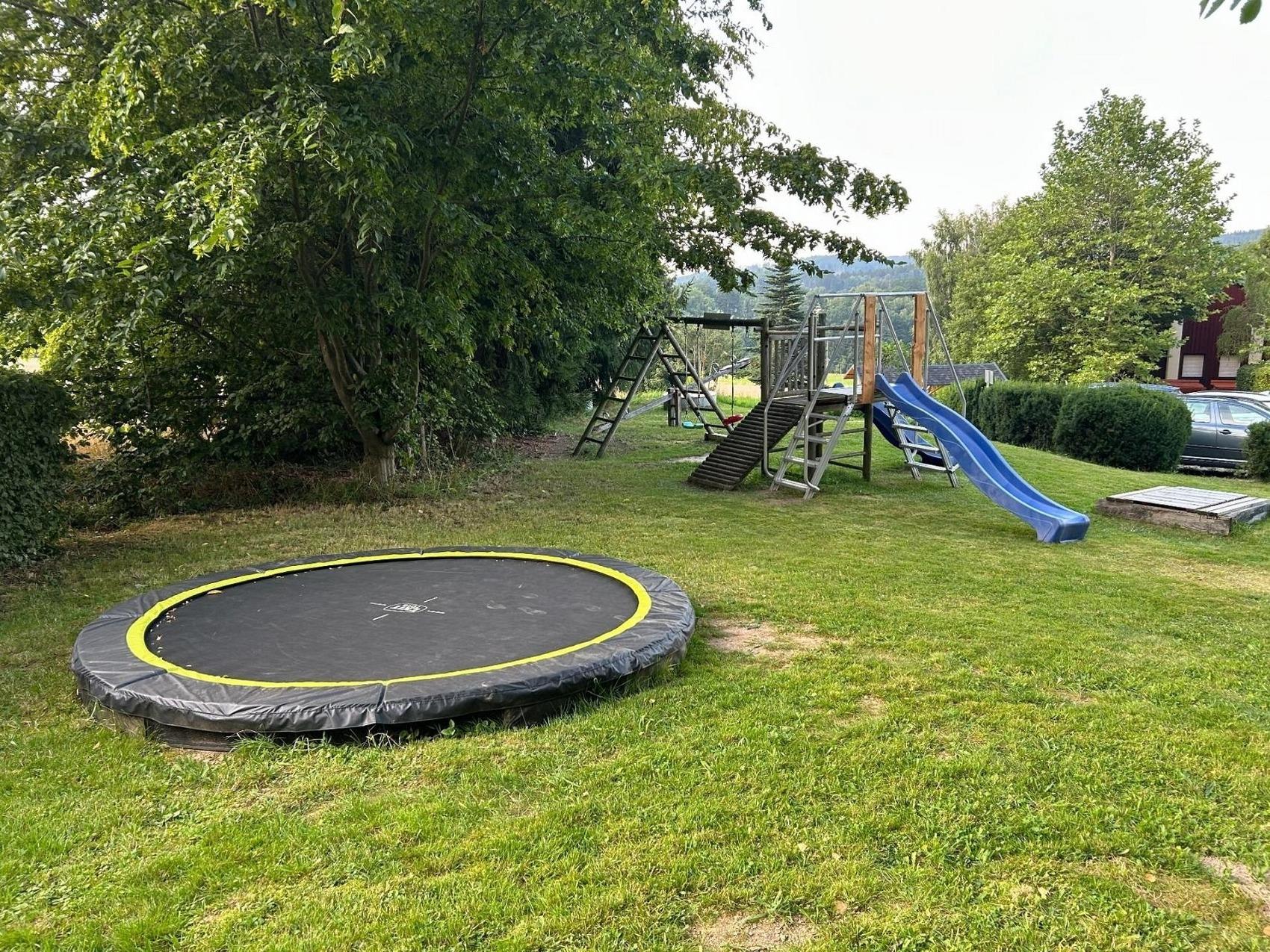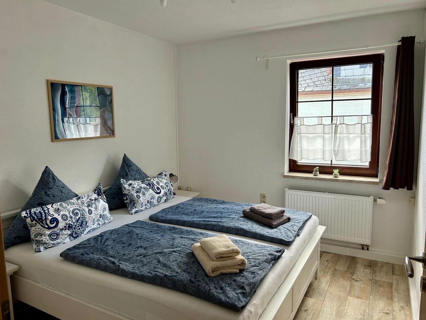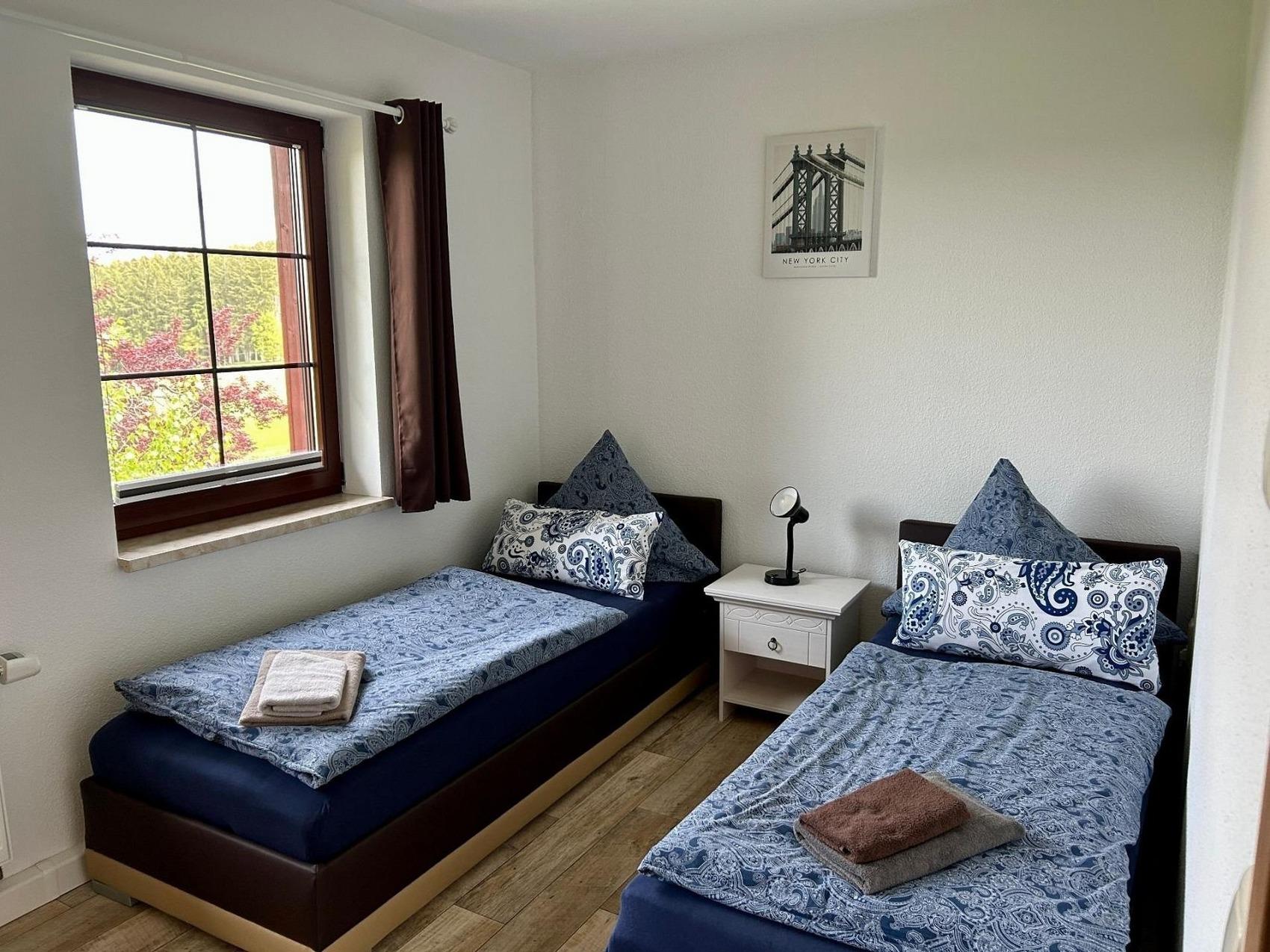 Unsere Familie heißt Sie beim Gästeliebling Vogtland 2023 + 2024 in liebevoll eingerichteten Ferienwohnungen mitten im wunderschönen Vogtland willkommen. FeWo 9 ist eine Ferienwohnung über 2 Etagen, mit eigenem Eingang, Terrasse mit Grill und Ess-/Sitzbereich sowie schöner Ausssicht ins Tal.Diese FeWo hat im EG eine große Küche mit Essecke, Eingangs-Flur sowie Wohnzimmer. Im 1. OG einen Flur mit großem Schrank, 1 Tageslicht-Badezimmer und 2 Schlafzimmer.1. Schlafzimmer: 1 großes Doppelbett2. Schlafzimmer: 2 Einzel-BoxspringbettenIm Wohnzimmer haben wir zusätzlich 1 Schlafsofa (120 x 200 cm), welches aufgebettet werden kann.Wir stellen Ihnen je Person 1 x Bettwäsche und 2 Handtücher.Pool, Sonnenterrasse, Spielplatz, Parkplatz, WLAN, Grillplatz-Nutzung sind inklusive. Bei uns können Sie in ruhiger Lage entspannen und die Natur auf Spaziergängen und Fahrradtouren genießen. Für Familientreffen, gemeinsame Mahlzeiten, Geburtstagsfeiern oder ähnliche Veranstaltungen bieten wir Ihnen unsere Pumphut`s Stube an. Hier finden bis zu 24 Personen Platz.Diese berechnen wir separat mit einer einmaligen Gebühr von 50,- Euro (Reinigungs-/Nutzungsgebühr).Für die kalte Jahreszeit bieten wir Ihnen unsere Sauna an.Diese berechnen wir separat und vor Ort mit 7,50 Euro/Person.Der Plohn-Freizeitpark liegt nur ca. 1 km entfernt.Hier sind Hunde willkommen.Je Hund berechnen wir 5,- €/Nacht + 30,- € Endreinigung.