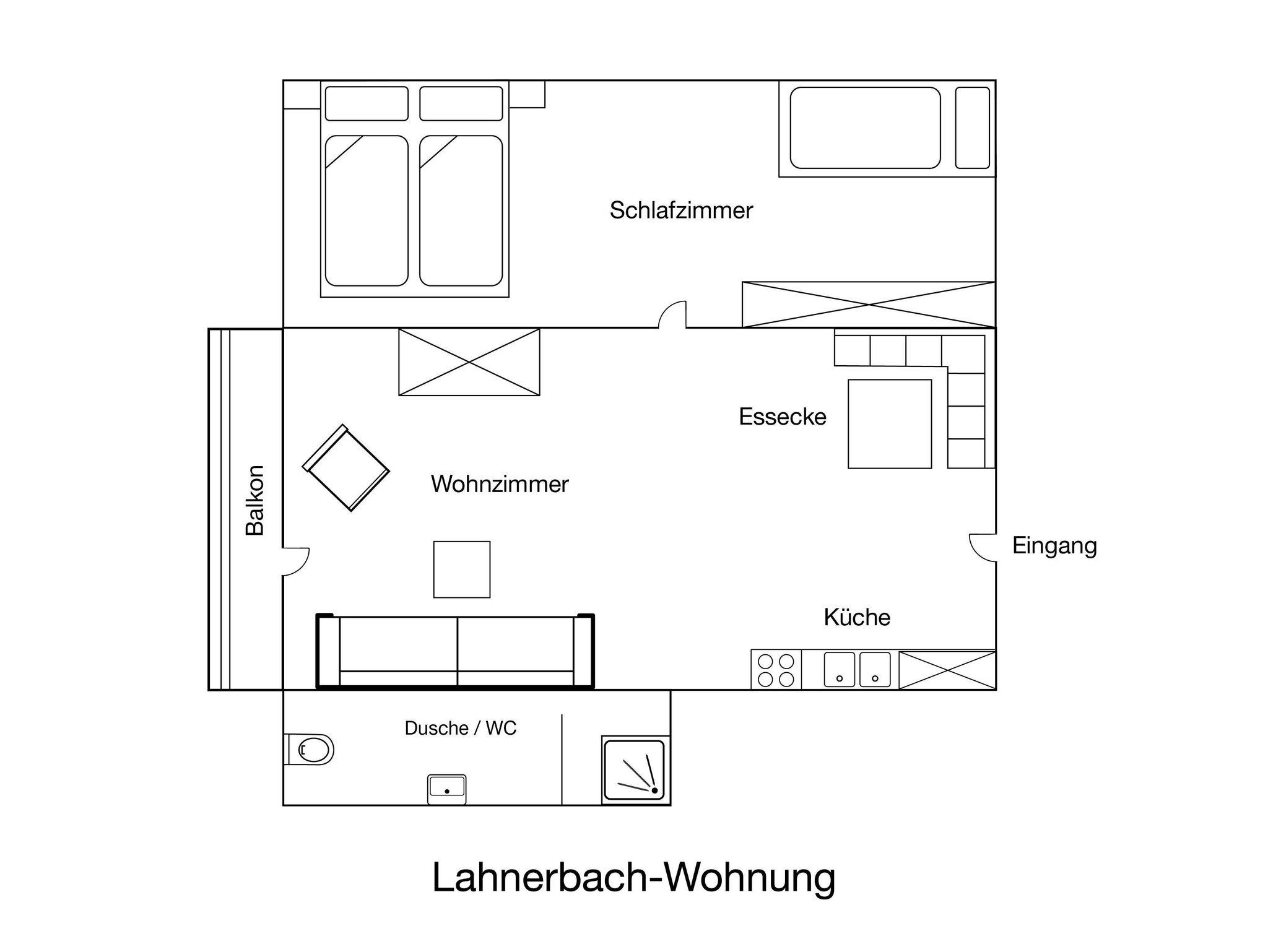 Unsere Ferienwohnung „Lahnerbach“ hat eine Größe von 40 qm und ist somit optimal für zwei Personen oder kleine Familien.