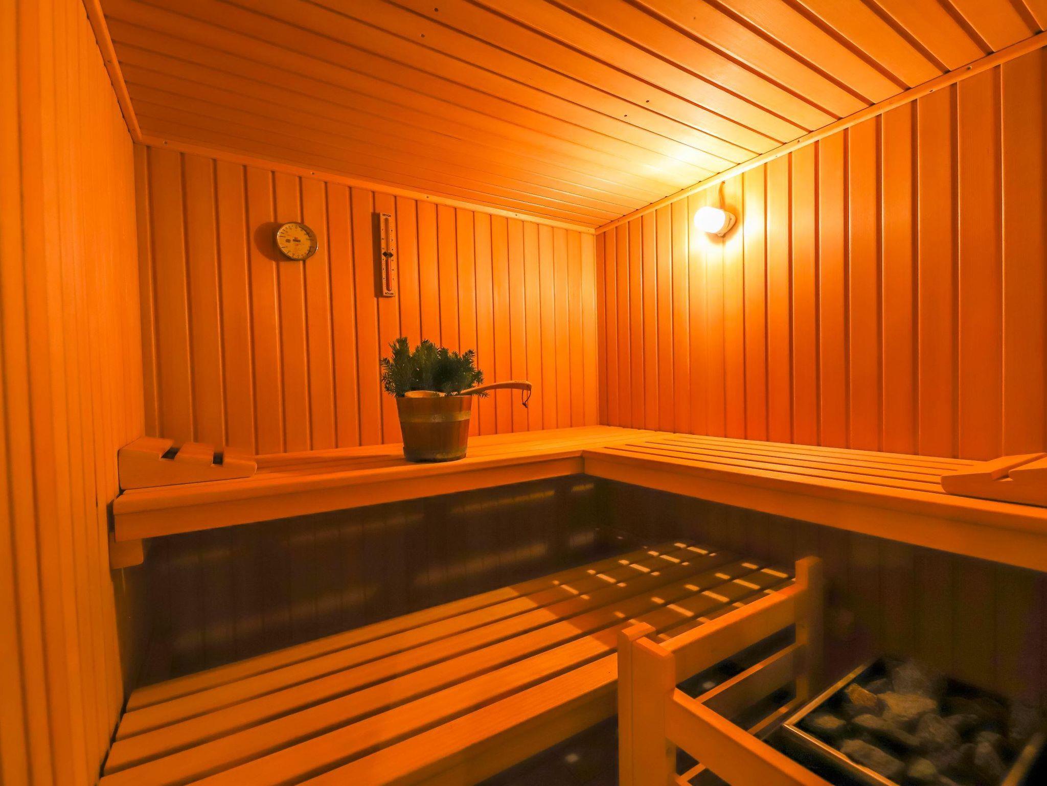 Auf Wunsch mietbarer Saunabereich zur Alleinnutzung, Ruheraum und Kamin mit Feuerholz, pro Person/Tag € 10,00.
