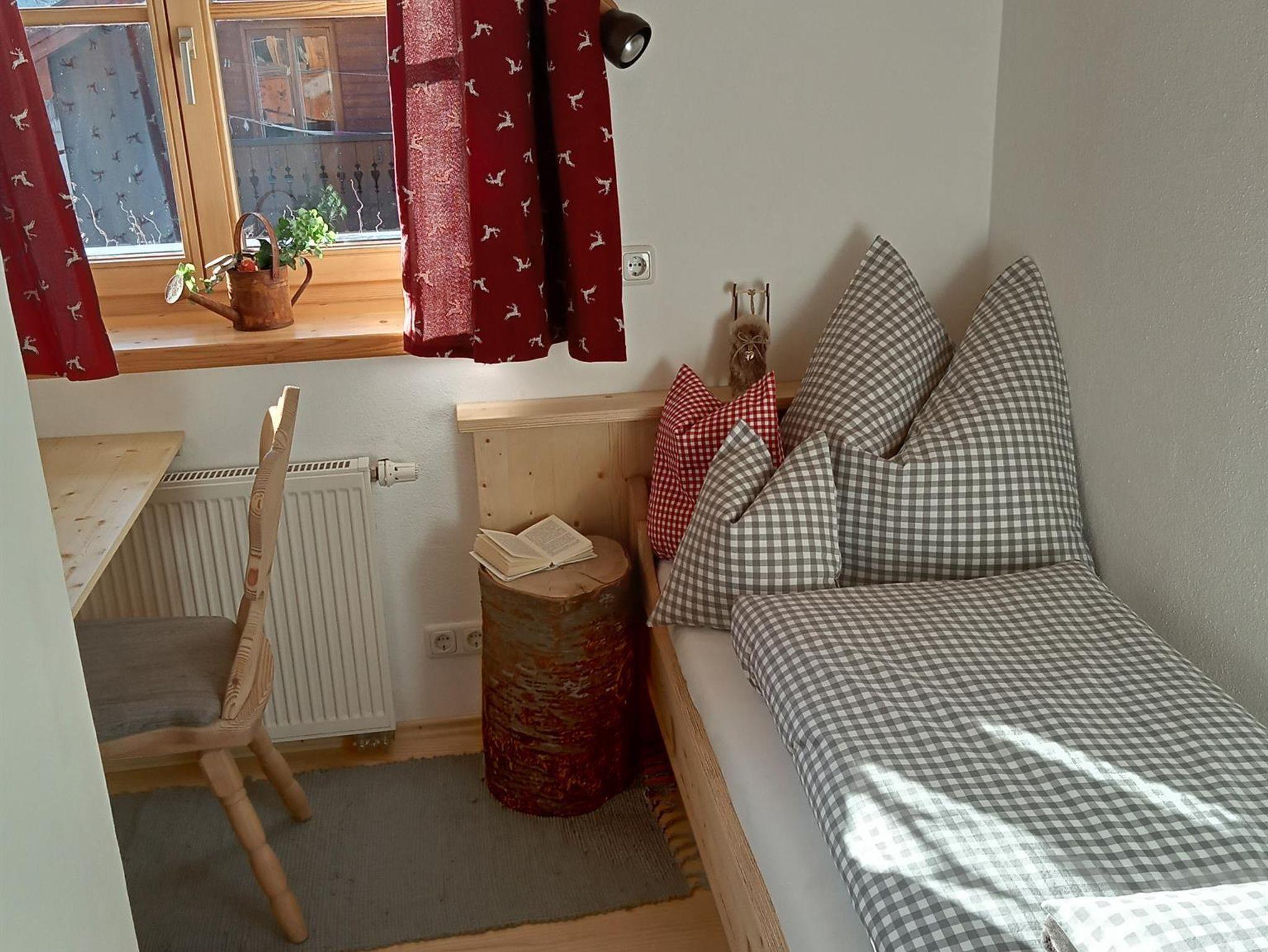 1 Schlafraum mit Echtholz-Einzelbett ( 0,70 x 1,80 m).