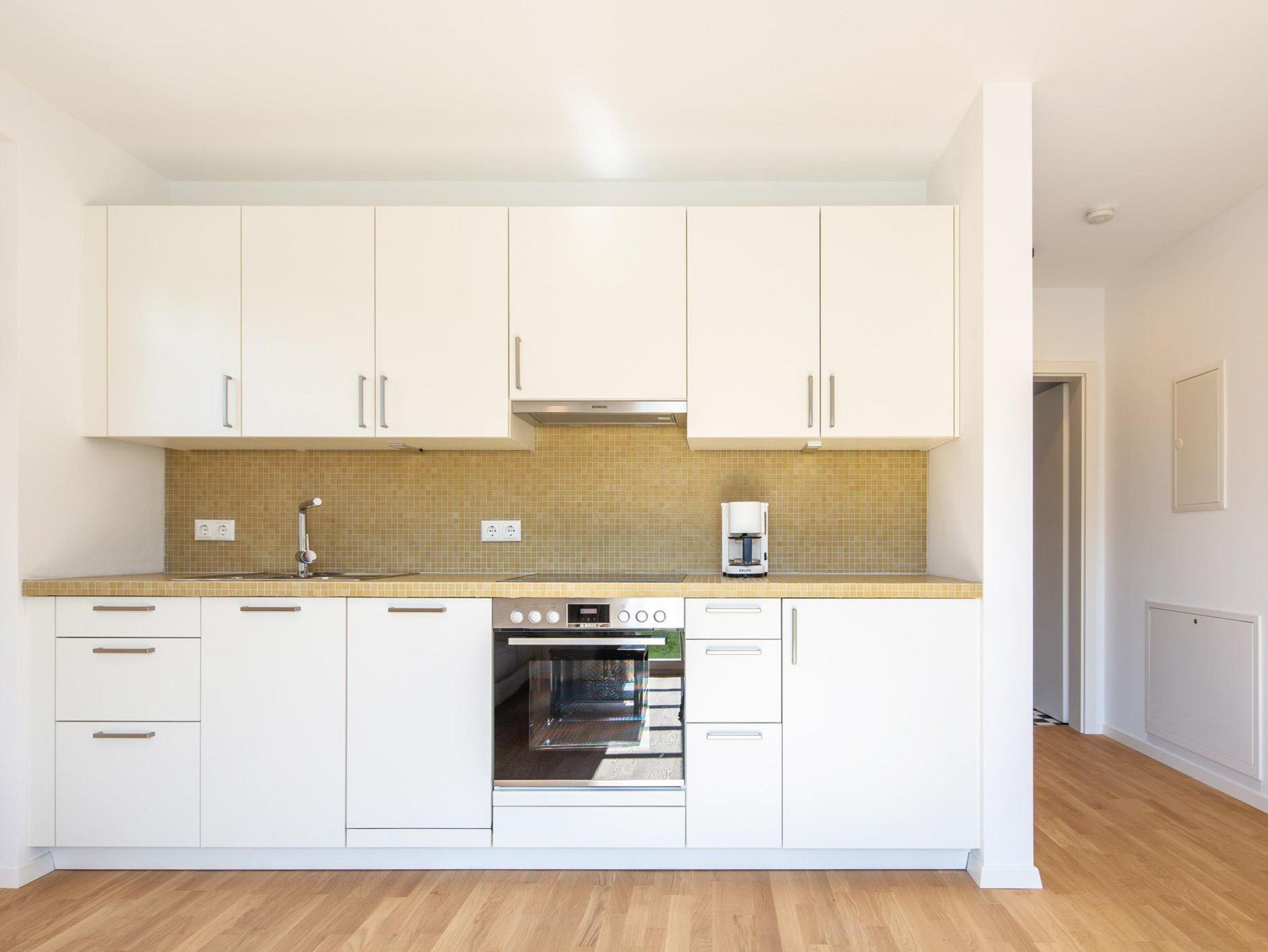 Die Wohnungsausstattung umfasst auf 32 qm Wohnfläche: Wohnzimmer mit Parkettboden und Küchenzeile, WLAN, Fernseher, gesondertes Schlafzimmer mit Doppelbett (200cm* 180cm), und gesondertes Bad mit Dusche.