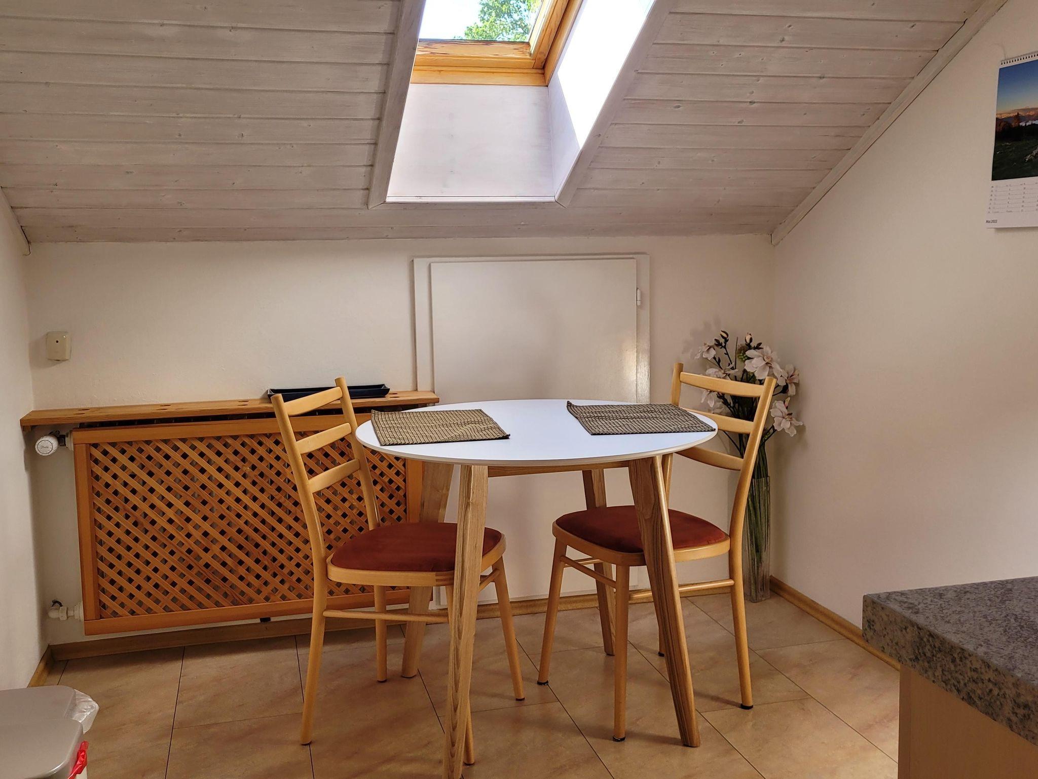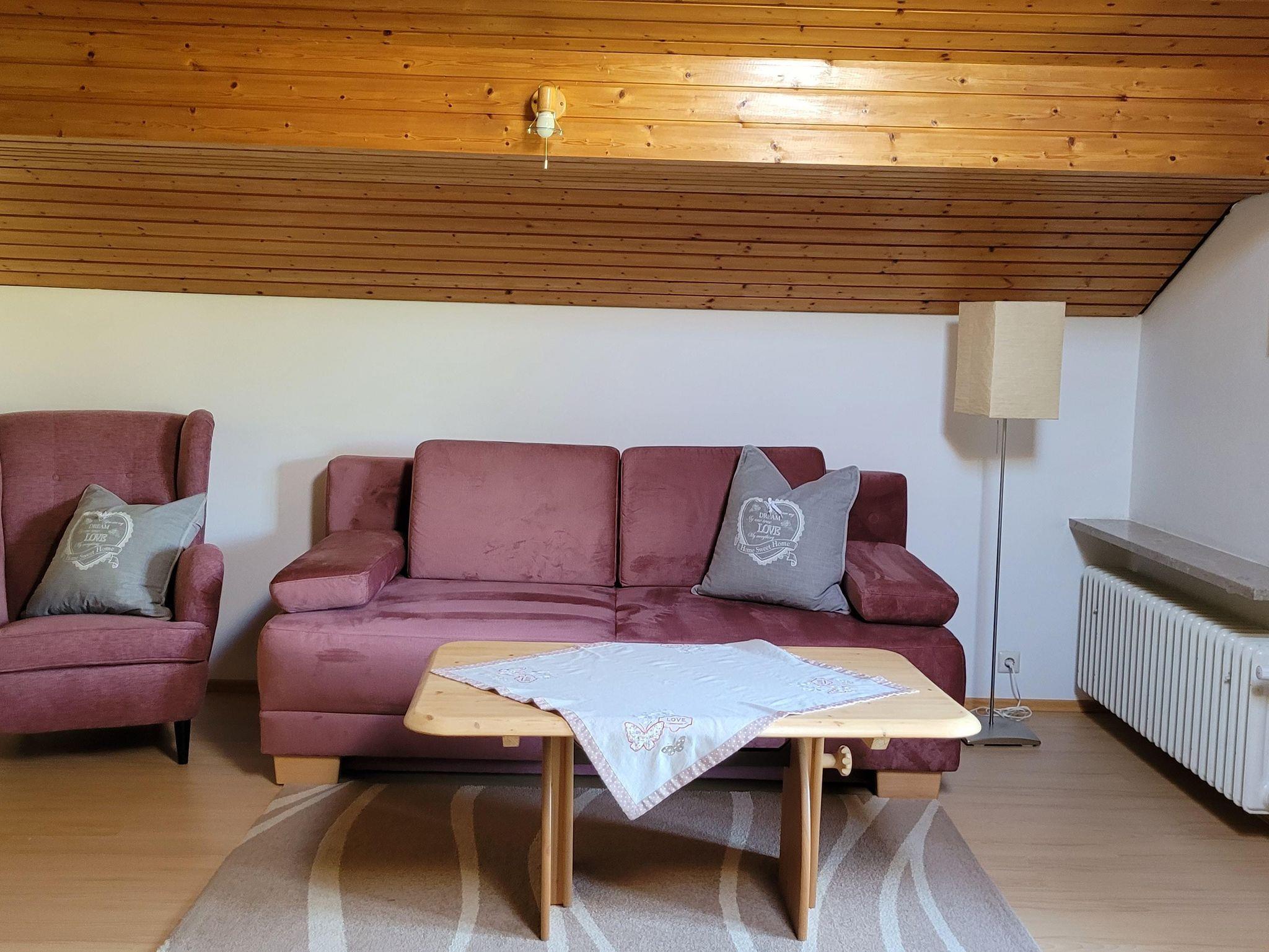 Die Dachwohnung bietet Ihnen ein Schlafzimmer mit Doppelbett und Südbalkon; Küche mit kompletter Koch- und Geschirrausstattung, Minibackofen, Kaffeemaschine, Wasserkocher, Toaster, Kühlschrank mit kleinem Gefrierfach; Wohnzimmer mit Polstergarnitur und Westbalkon; sowie Dusche WC, Zentralheizung. Die komplette Wäsche (Handtücher, Bettwäsche, Geschirrtücher) werden Ihnen zur Verfügung gestellt. Wir legen großen Wert auf Gemütlichkeit, damit sie sich bei uns wie zu Hause fühlen. Wir würden uns freuen, wenn wir Sie als Gäste begrüßen dürfen. Bitte besuchen Sie für weitere Informationen unsere Website www.fw-simon-lenggries.de