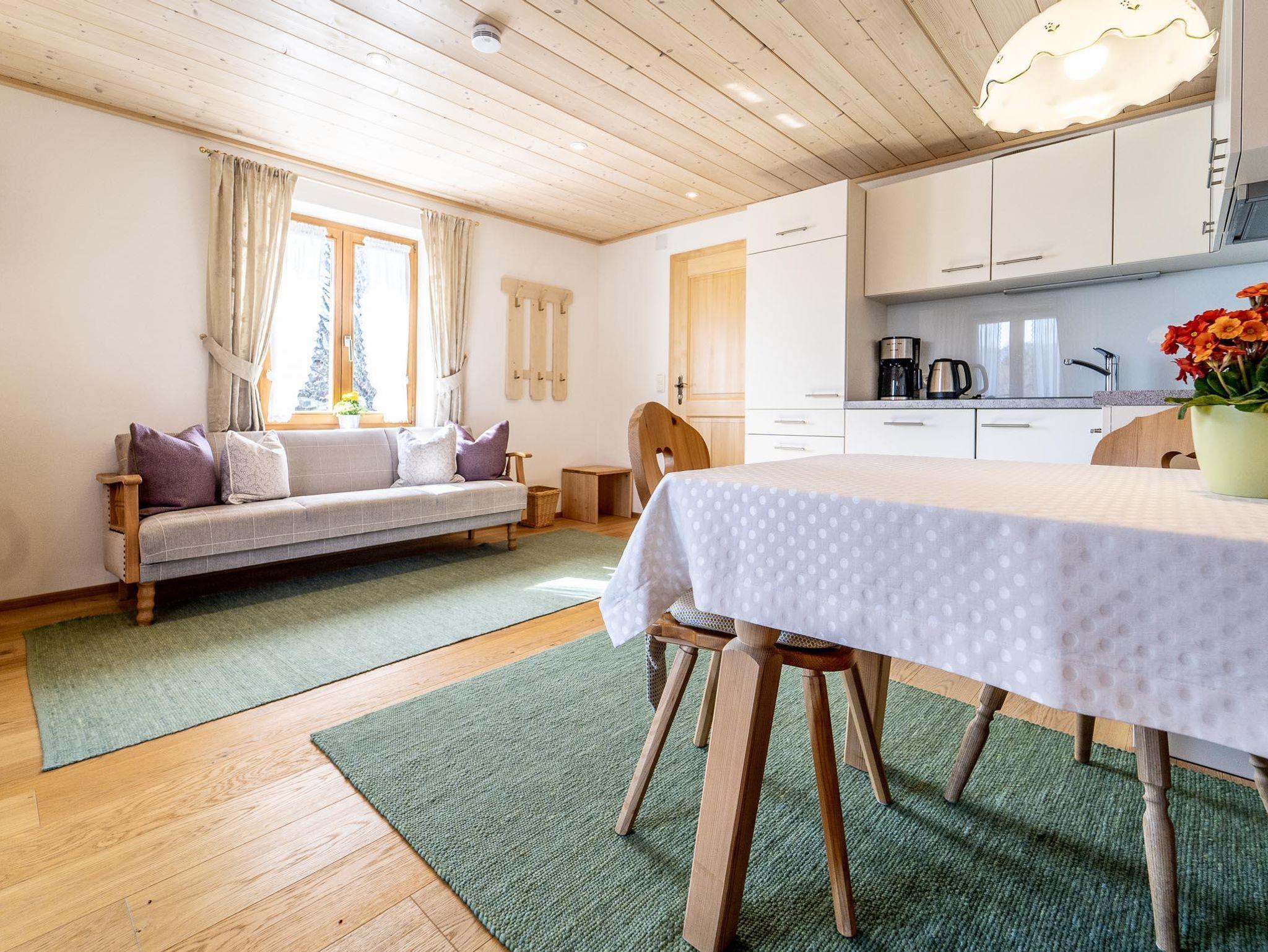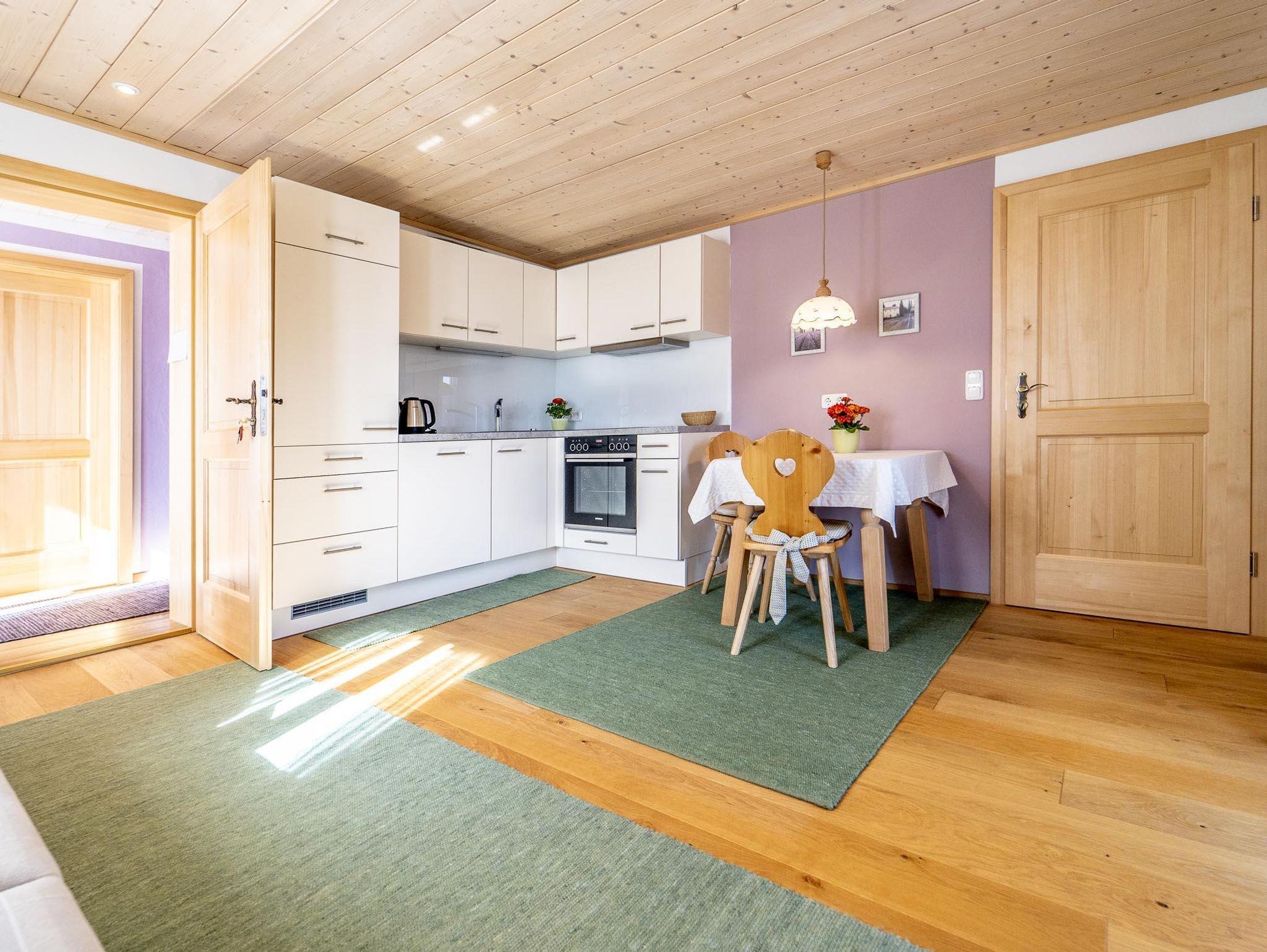 Herzlich willkommen in der Ferienwohnung „Staffel“ im Katharinenhof Lenggries – Ihrem Wohlfühlort für erholsame Urlaubstage in der Bergregion Bayerns. Die Wohnung für 2–3 Personen im 1. Obergeschoss bietet auf 40 m² eine gemütliche Atmosphäre mit Massivholzmöbeln und Farben in Flieder und Grün. Sie umfasst eine offene Wohnküche mit Essecke und Schlafsofa sowie ein separates Schlafzimmer mit Doppelbett. Der moderne Küchenbereich ist mit Spülmaschine, Herd-Backofen, Kaffeefiltermaschine, Wasserkocher und Toaster ausgestattet. Der überdachte Balkon mit ganztags Sonne und freiem Blick auf die Berge lädt zum Entspannen ein. Ein großzügiges Bad mit Dusche, WC, Haarföhn sowie Flachbild-TV und WLAN runden das Angebot ab.