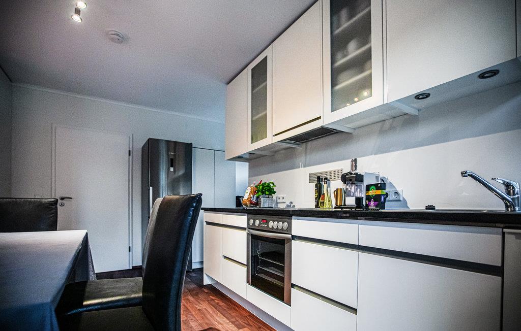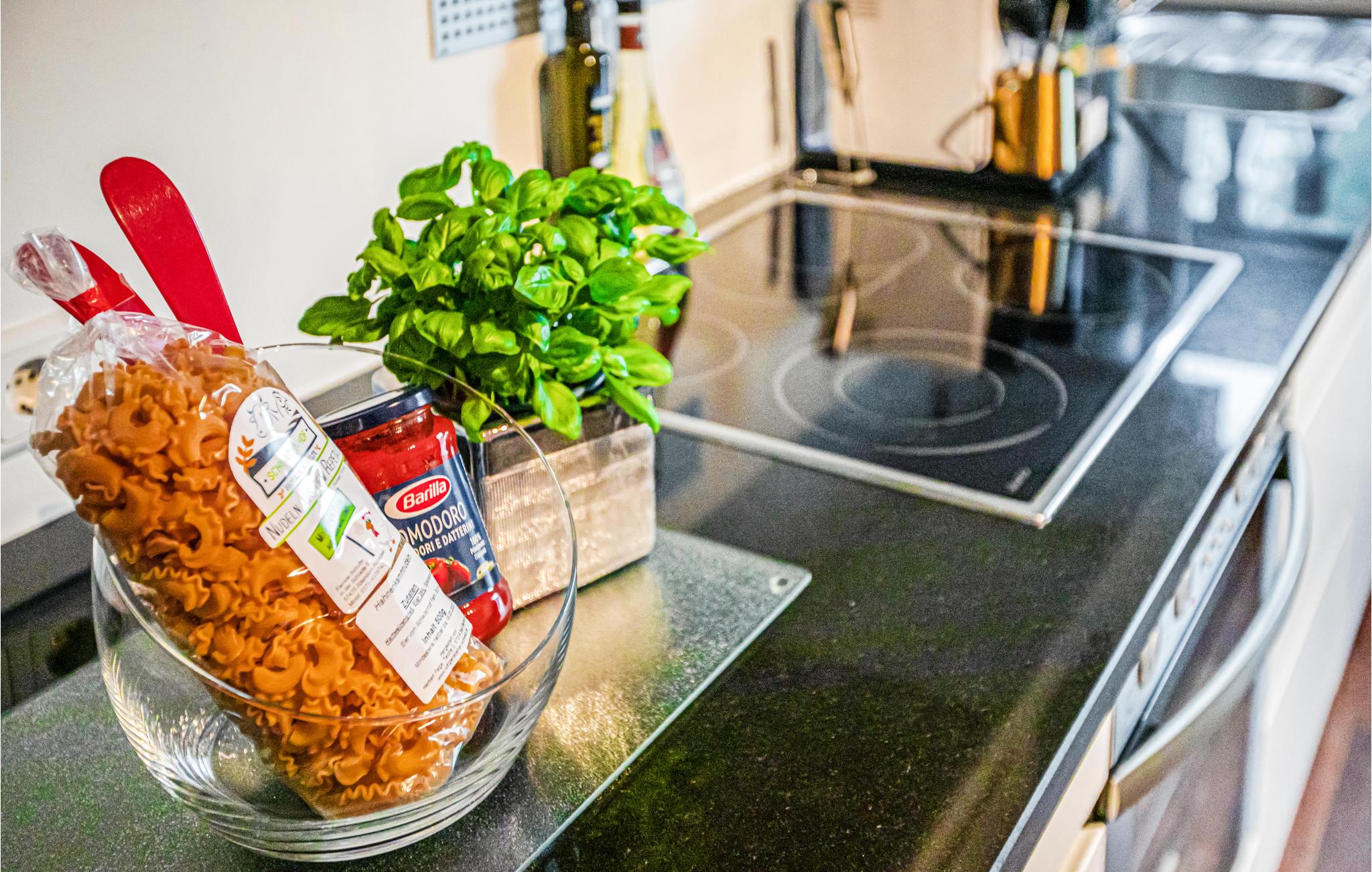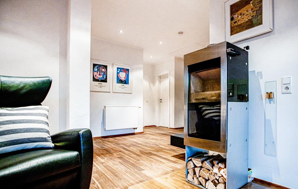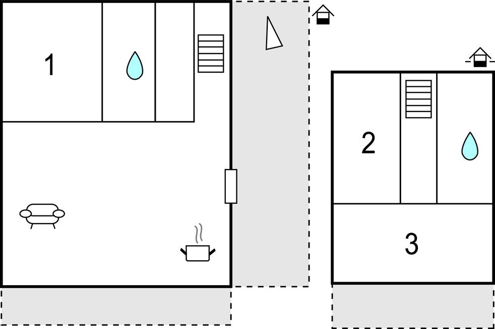 Das Ferienhaus erstreckt sich über zwei Etagen und bietet mit drei Schlafzimmern, zwei Badezimmern, mehreren Wohnräumen, einer Essküche und einer Toilette viel Platz für eine Familie. Die Einrichtung ist modern und ansprechend. Das Herz des Hauses ist der schöne Wohnbereich mit Kamin, der zu entspannten Abenden auf dem Sofa einlädt.