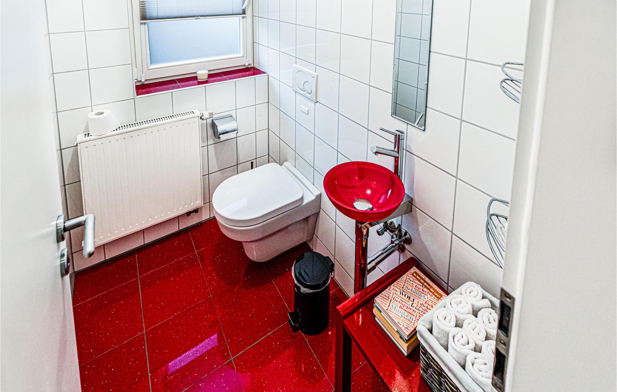 - WC mit warmem und kaltem Wasser, Dusche und Badewanne