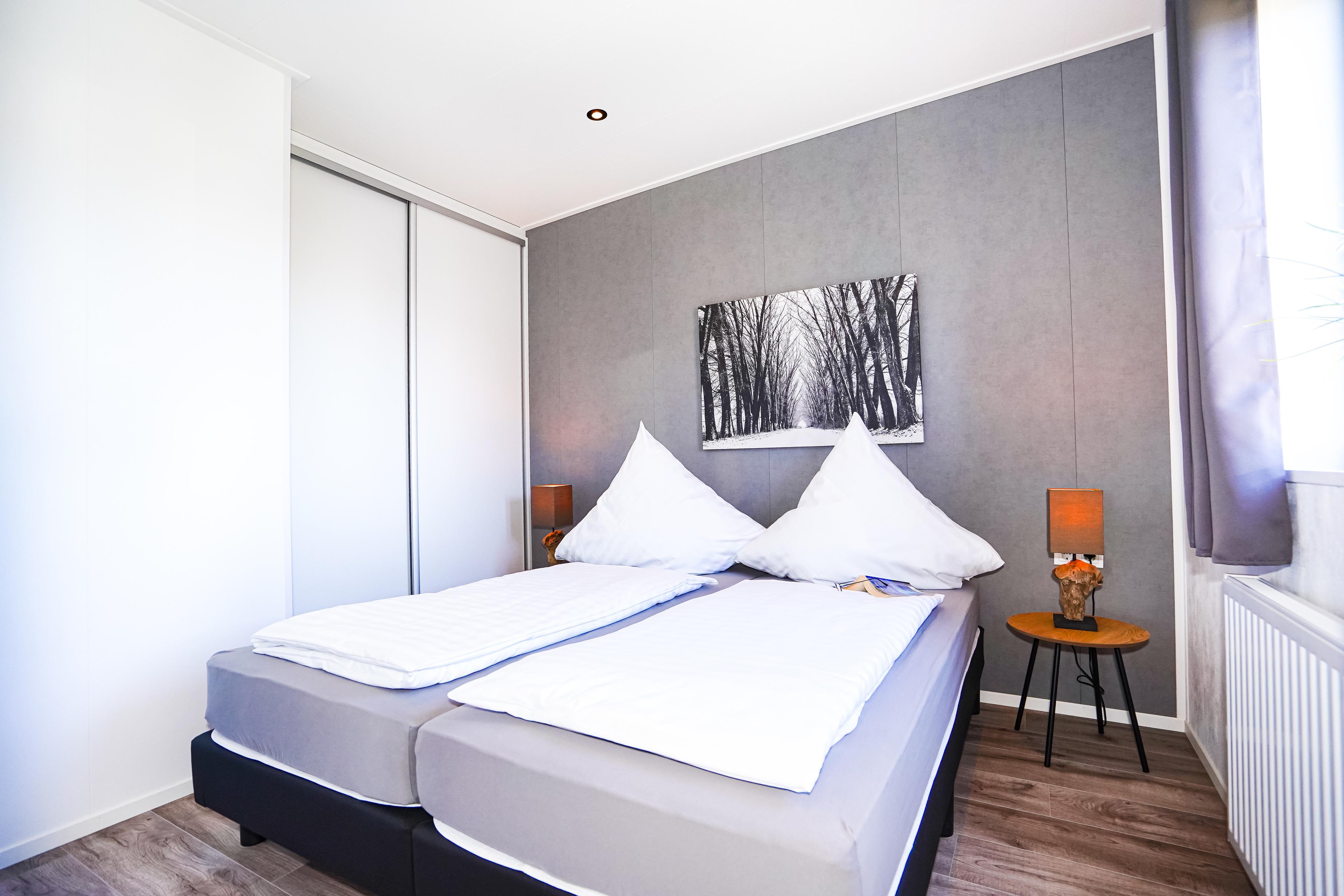Diese gemütlichen Unterkünfte bieten Platz für bis zu 4 Personen und sind perfekt für einen entspannten Urlaub. Jedes Mobilheim verfügt über eine voll ausgestattete Küche mit Gasherd und Mikrowelle, Kühl- und Gefrierkombination, Geschirrspüler, Kaffeemaschine und Wasserkocher. Ein modernes Badezimmer mit Dusche, WC und Waschtisch sowie zwei einladende Schlafzimmer (ein Doppelbett 2x80x200cm und zwei Einzelbetten 80x200cm) sorgen für Ihren Komfort.