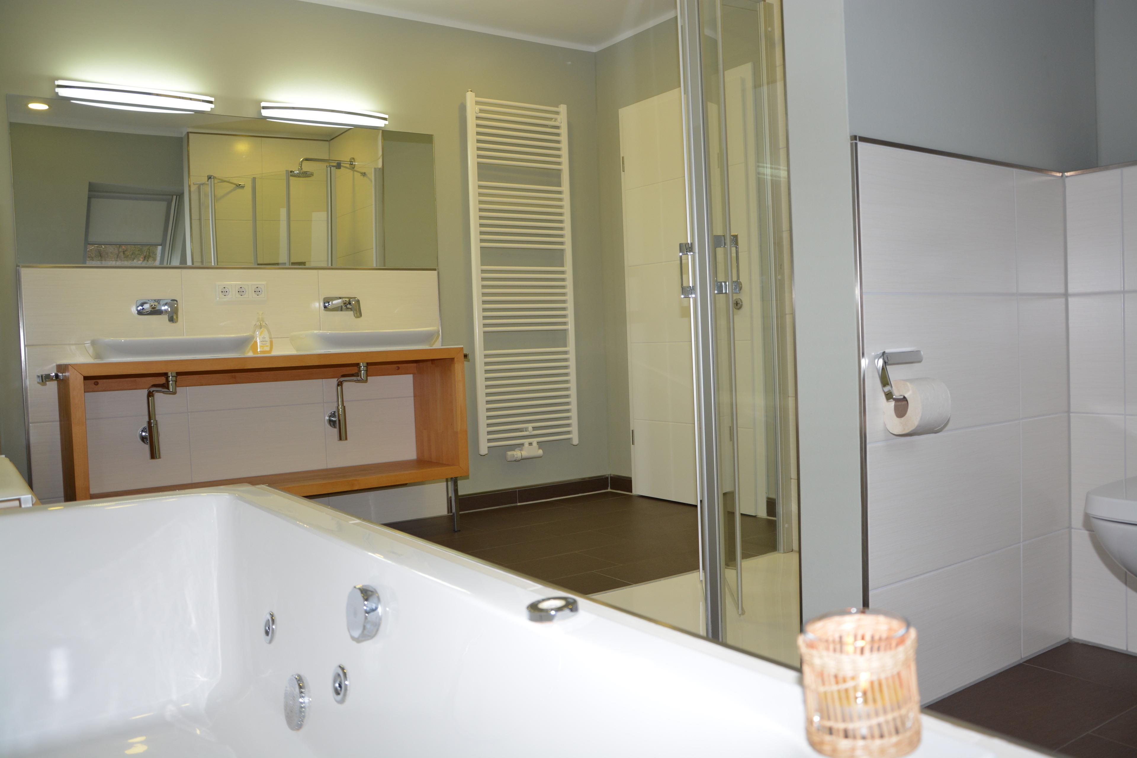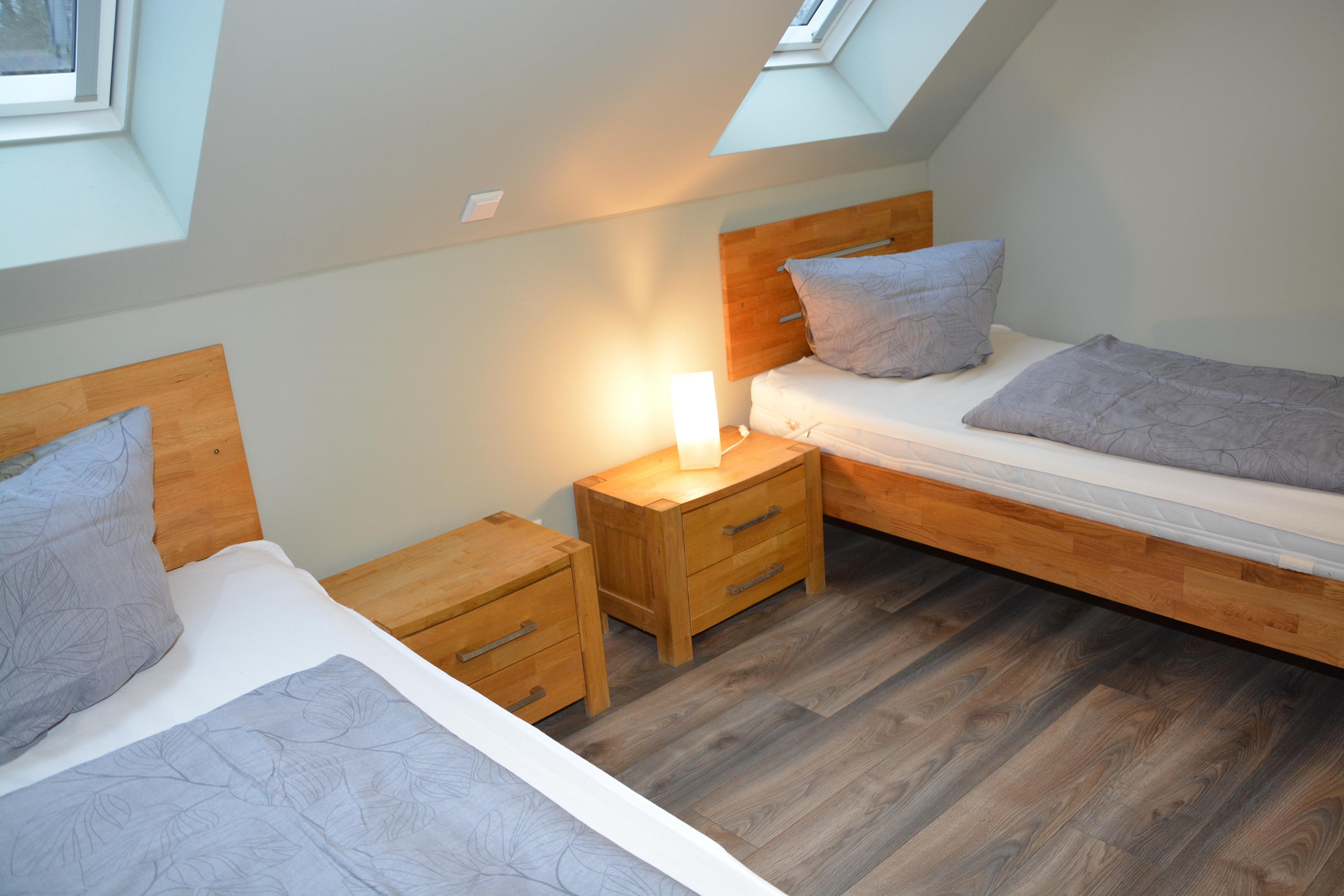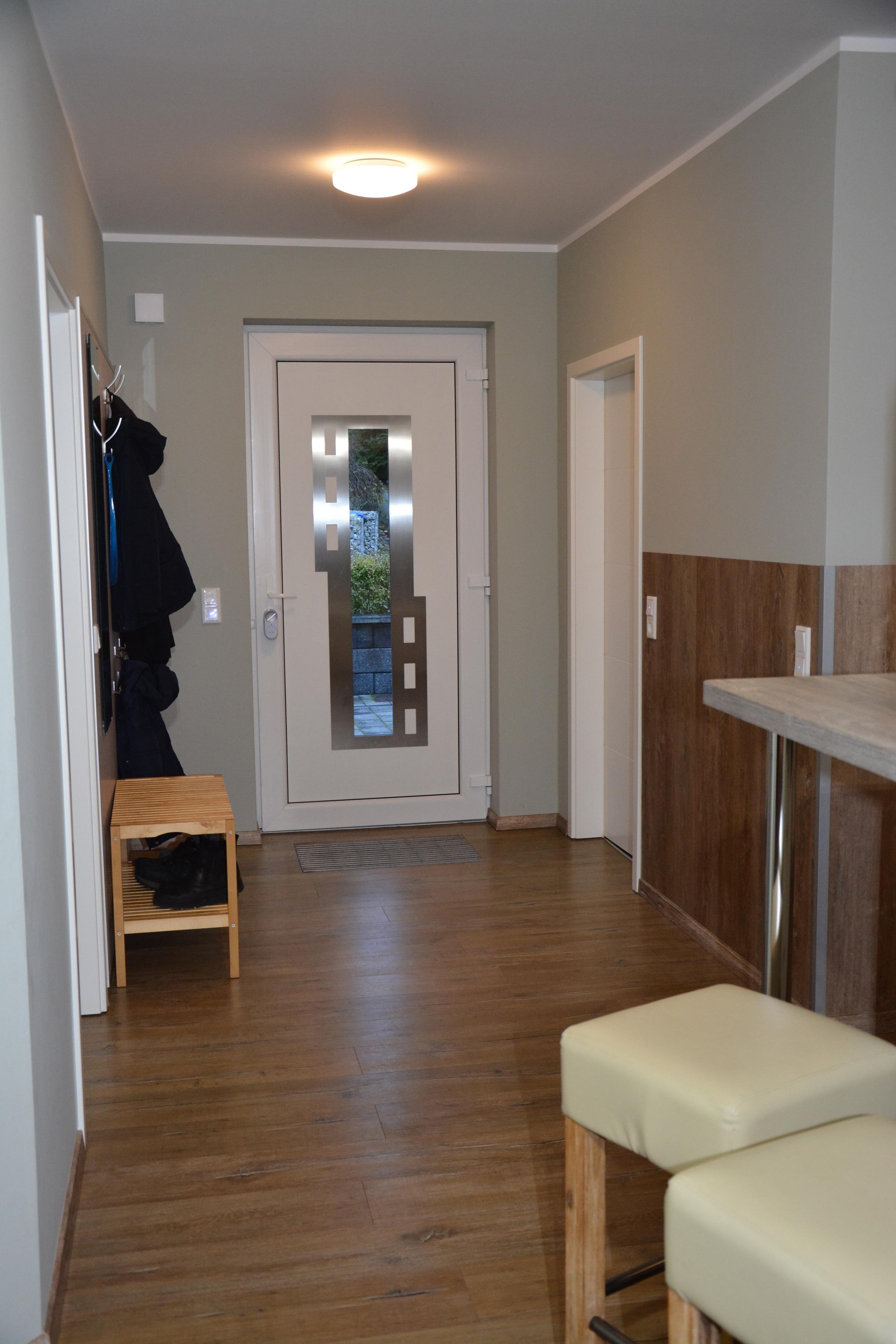 Ein lichtdurchfluteter Wohnbereich mit direktem Zugang zur Terrasse und Garten sowie Grillplatz. Für ein stilvolles Ambiente sorgen der ebenfalls geräumige & lichtdurchflutete Wohn- & Essbereich mit einer offenen Küche. Eine, individuell einstellbare Fußbodenheizung und ein Kamin sorgen für angenehme Wärme an nicht so heißen Tagen. Entspannen können Sie auch im gemütlichen Wohnbereich mit Couch vor einem Flachbildschirm. Eine voll ausgestattete Küche gibt jedem Hobbykoch die Möglichkeit kulinarische Köstlichkeiten selbst zu kreieren. Die dazu notwendige hochwertige Ausstattung mit Umluftherd, Backofen, Spülmaschine, Kühlschrank mit Gefrierfach, 4-Zonen-Cerankochfeld ausreichend Geschirr, Gläser, Besteck, Kochtöpfe sowie viele weitere nützliche Küchenutensilien sind ausreichend vorhanden. Esstisch & Sitzmöglichkeiten für 8- 12 Personen können Sie beim gemütlichen Beisammensein die Köstlichkeiten der Küche oder bei einem Glas Wein und einem Gesellschaftsspiel genießen. Ebenfalls auf der unteren Etage befindet sich ein Schlafzimmer mit Doppelbett und ein Bad mit Wellnessdusche, Waschbecken und WC. Im OG befinden sich 3 Schlafzimmer. Zwei Schlafzimmer mit einem Doppelbett und einen Kleiderschrank.Ein Schlafzimmer mit 2 Einzelbetten und Kleiderschrank.Ein Bad mit Dusche und einer Whirlpool- Badewanne. Zusätzliches WC mit Waschmaschine. Außerdem befindet sich hier die Sauna. Über eine Treppe erreichen Sie den Schlafboden im DG. Dieser ist mit 3 Einzelbetten, großen TV und einer PlayStation 4 ausgestattet. Ideal für die Jugendlichen und Kinder. Das Nichtraucher-Haus mit Sauna ist für 1-12 Personen geeignet, zusätzlich ist die Möglichkeit der Aufbettung mit je einem Babyreisebett gegeben. PKW-Stellplätze sind am Haus vorhanden.
