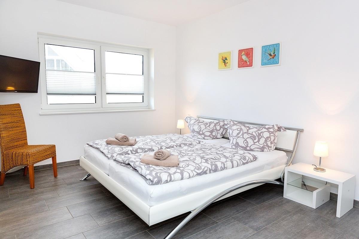 Die Nichtraucher- Ferienwohnung im EG ist ideal für 1-4 Personen geeignet. Zusätzlich ist maximal die Unterbringung eines Babys (5. Person) in einem Babyreisebett gegeben. Ein Parkplatz steht direkt am Ferienhaus zur Verfügung. Kostenloses WLAN, elektrische Rolläden mit Zentralsteuerung.