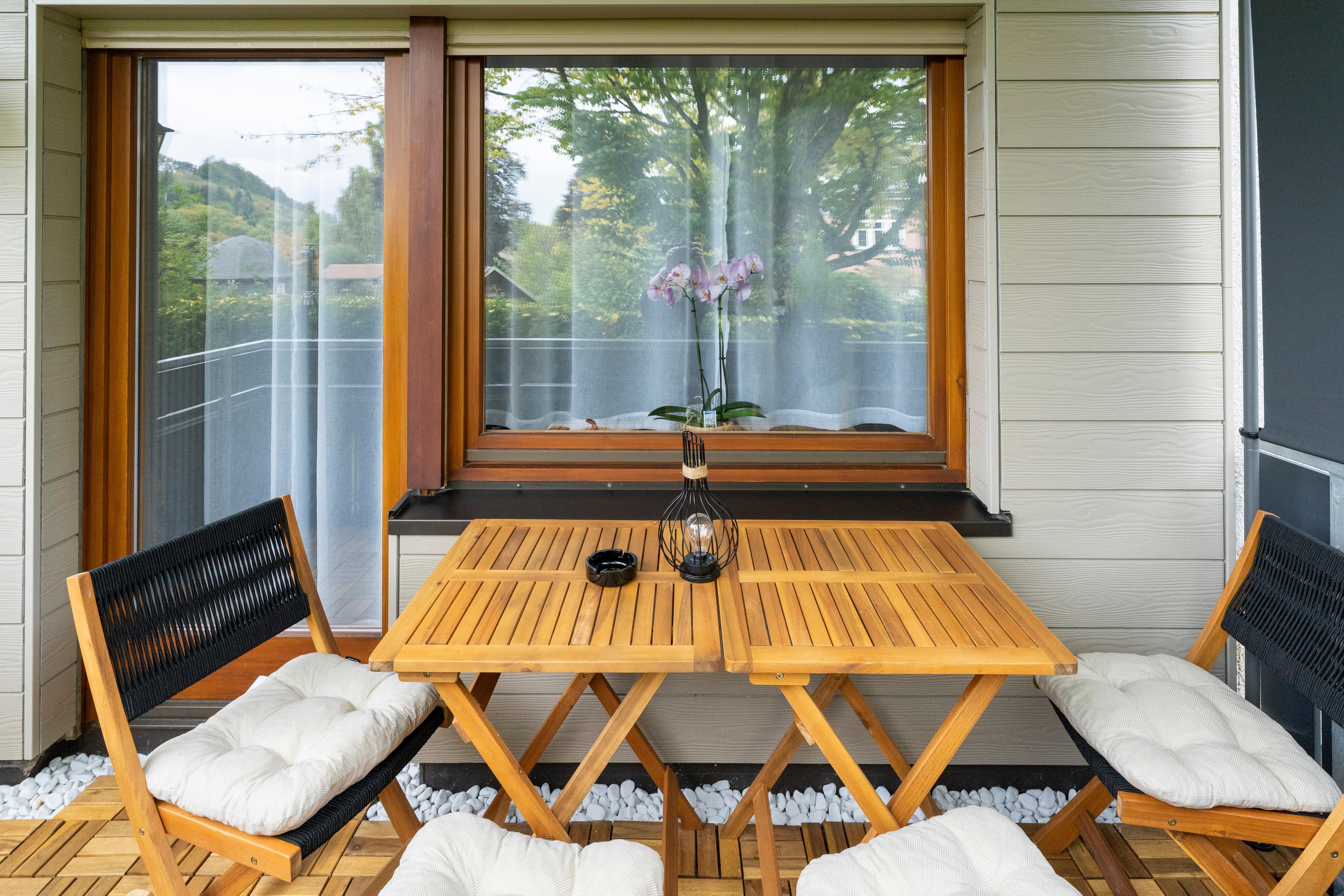 Die moderne Wohnung verwöhnt mit einer voll ausgestatteten Küche, einem Badezimmer mit einladender Badewanne und einem sonnigen Ost-Balkon, der mit Wiesenblick zum Frühstück in der Morgensonne einlädt. Im gemütlichen Wohnzimmer erwartet Sie eine stilvolle Schlafcouch, die sich in ein vollwertiges Boxspringbett verwandelt und Hotelkomfort verspricht. Der einladende Essbereich ist perfekt für gemeinsame Mahlzeiten. Im Schlafzimmer sorgt ein flexibles Boxspringbett für erholsamen Schlaf – wahlweise als Doppelbett oder zwei Einzelbetten. WLAN und zwei Fernseher runden das Wohlfühlpaket ab.