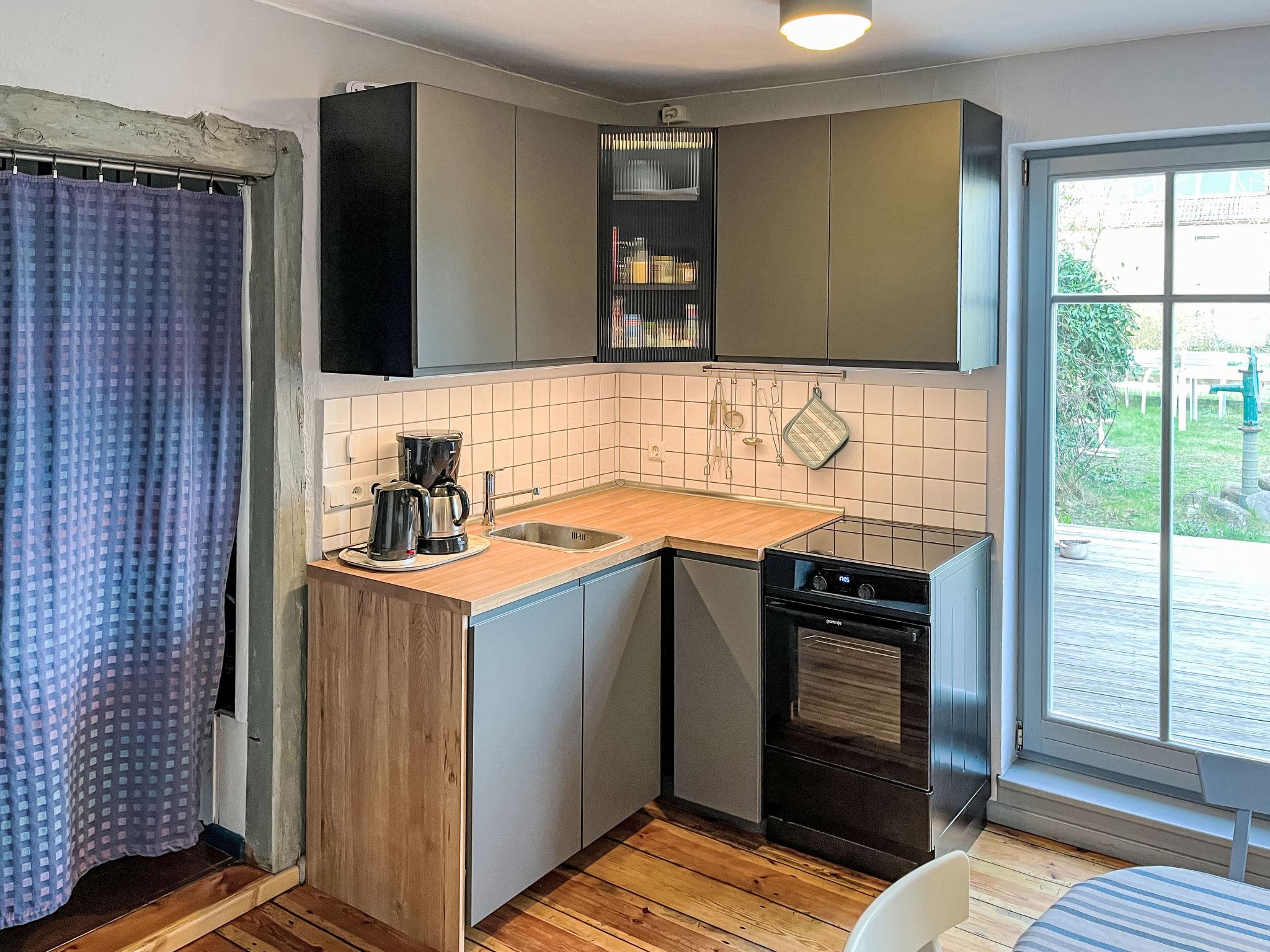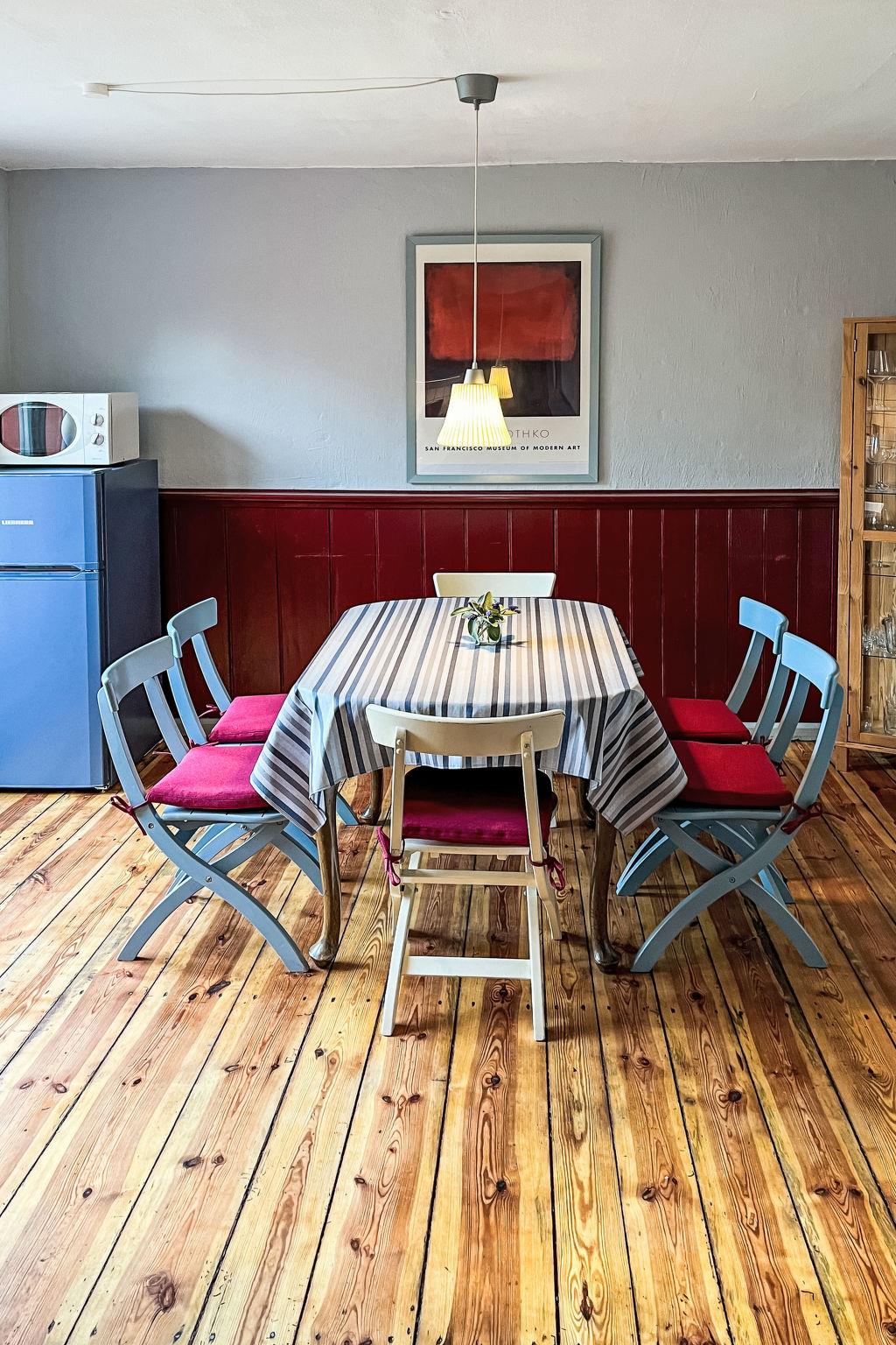 Cosy house "Kapitänshaus Leo", built in 1900, renovated, surrounded by meadows and fields. 100 m from the centre of Leopoldshagen, 5 km from the centre of Mönkebude, 12 km from the centre of Ueckermünde, 500 m from the edge of the forest, 3 km from the sea, in the countryside. For shared use: property (fenced), garden with lawn. Private: property 400 m2 (fenced) with lawn, parking on the premises. Shop 500 m, supermarket 5 km, bus stop "Leopoldshagen, Kirche" 700 m, sandy beach "Mönkebude" 6 km. Nearby attractions: Insel Usedom 40 km, Hansestadt Greifswald 60 km.