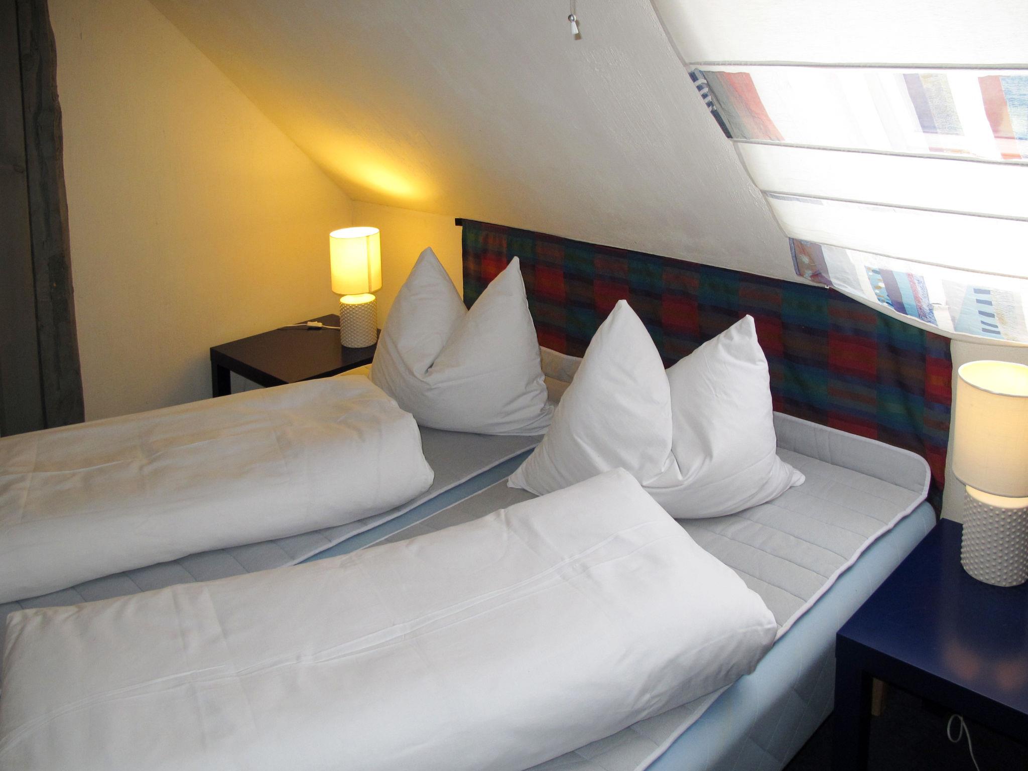 3-room semi-detached house 70 m2 on 2 levels. Partly renovated in 2024, beautiful and cosy furnishings: living room with Scandinavian wood stove, satellite TV and CD-player. Kitchen (oven, dishwasher, 4 ceramic glass hob hotplates, kettle, microwave, freezer, electric coffee machine) with dining table, tiled stove. Exit to the terrace. Shower/WC, Sauna. Upper floor: 1 room with sloping ceilings with 1 double bed. 1 room with sloping ceilings with 1 sofabed and 1 double bed. Electric heating. Wooden floors. Terrace 10 m2. Terrace furniture. Facilities: washing machine. Please note: non-smoking house. Maximum 2 pets/ dogs allowed. Smoke alarm. There is a new kitchen since April 2024.