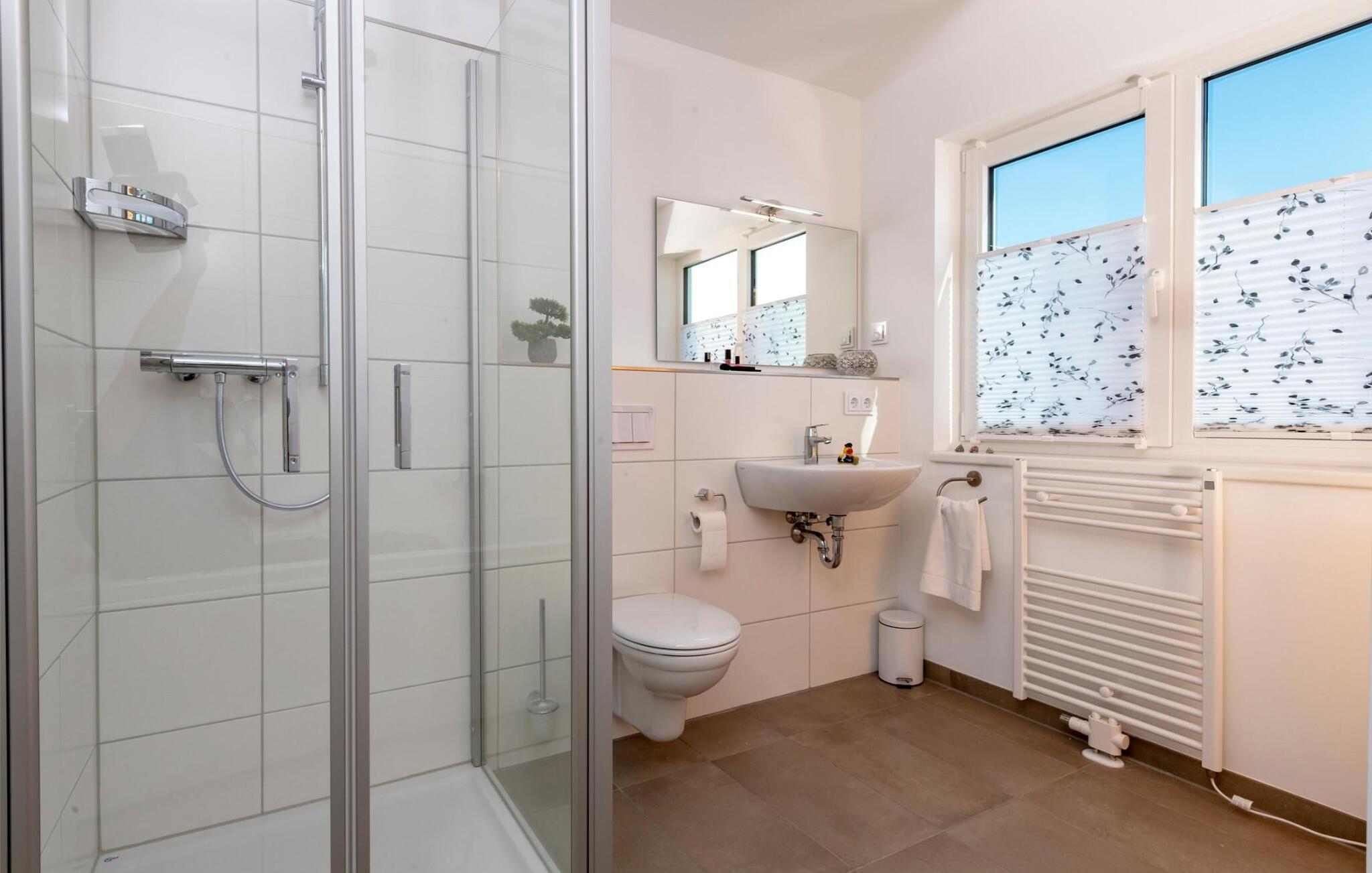 Ebenfalls auf dieser Ebene befindet sich das voll ausgestattete Badezimmer mit Wasserblick.