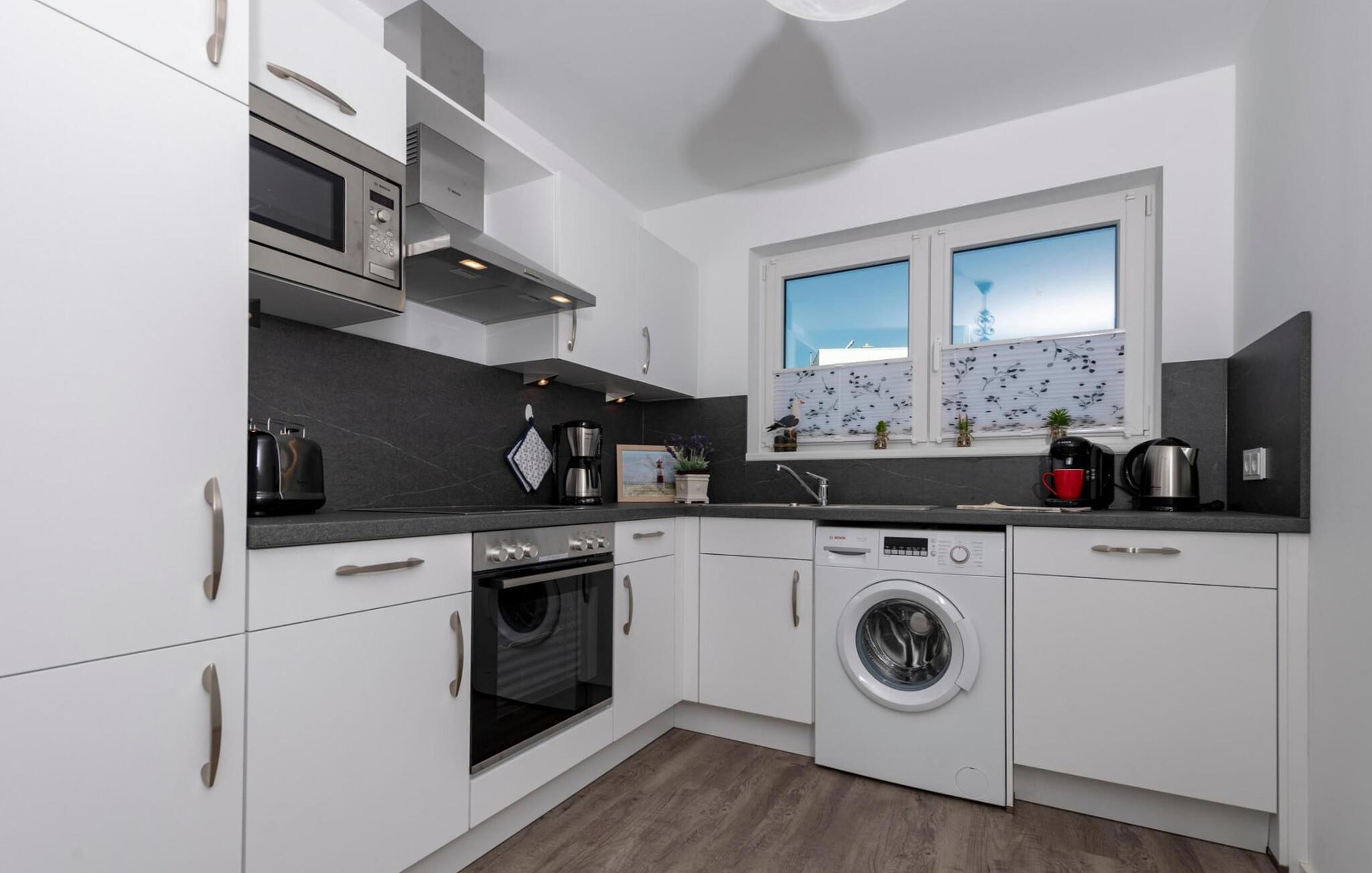 Das ganze Haus ist mit Fußbodenheizung ausgestattet. finnische Sauna, Whirlwanne und Kaminofen versprechen Komfort zu jeder Jahreszeit und machen dieses Ferienhaus richtig kuscheligauch an nordischen Schietwettertagen. Für zusätzliche Unterhaltung sorgt der Smart TV mit Telekom Home Entertainment Programm.