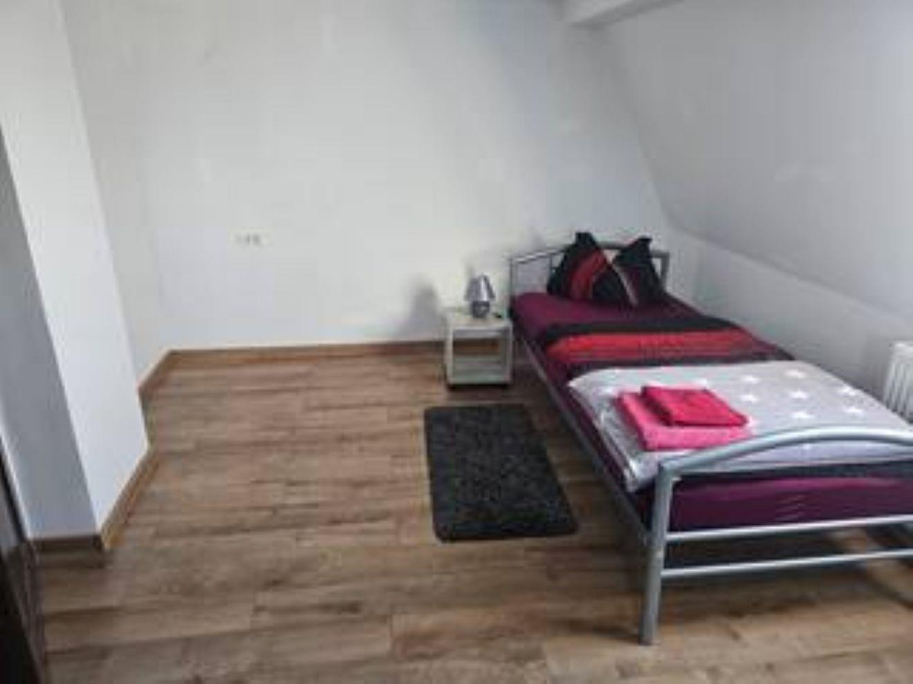 Jedes Zimmer verfügt über 1 oder 2 Einzelbetten 90x200 mit H4 Taschenfederkernmatratze, Kleiderschrank, Nachttischrank mit Nachttischlampe, Schreibtisch + Stuhl, Wäscheständer , Mülleimer.