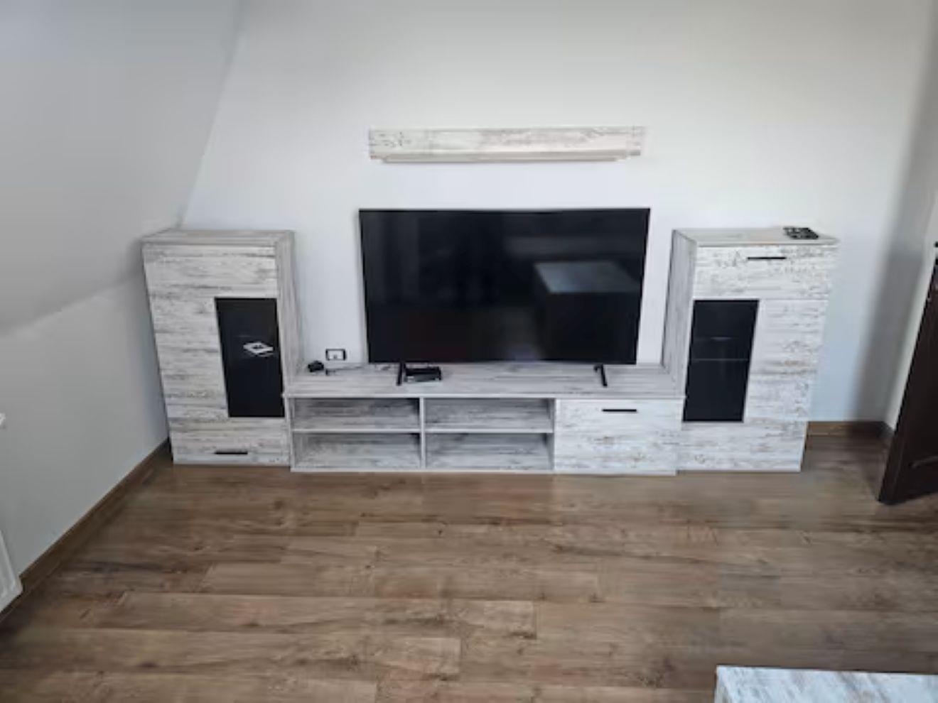 Die Wohnung verfügt über eine Waschmaschine, Stellplätze vor dem Haus, WLAN, Flachbild TV.