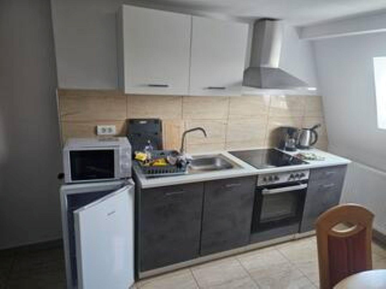 Voll ausgestattete Wohnung, Küche komplett mit allen Geräten ( Kaffeemaschine, Wasserkocher, Mikrowelle, Backofen, Cerankochfeld, Kühl-Gefrier-Kombination).