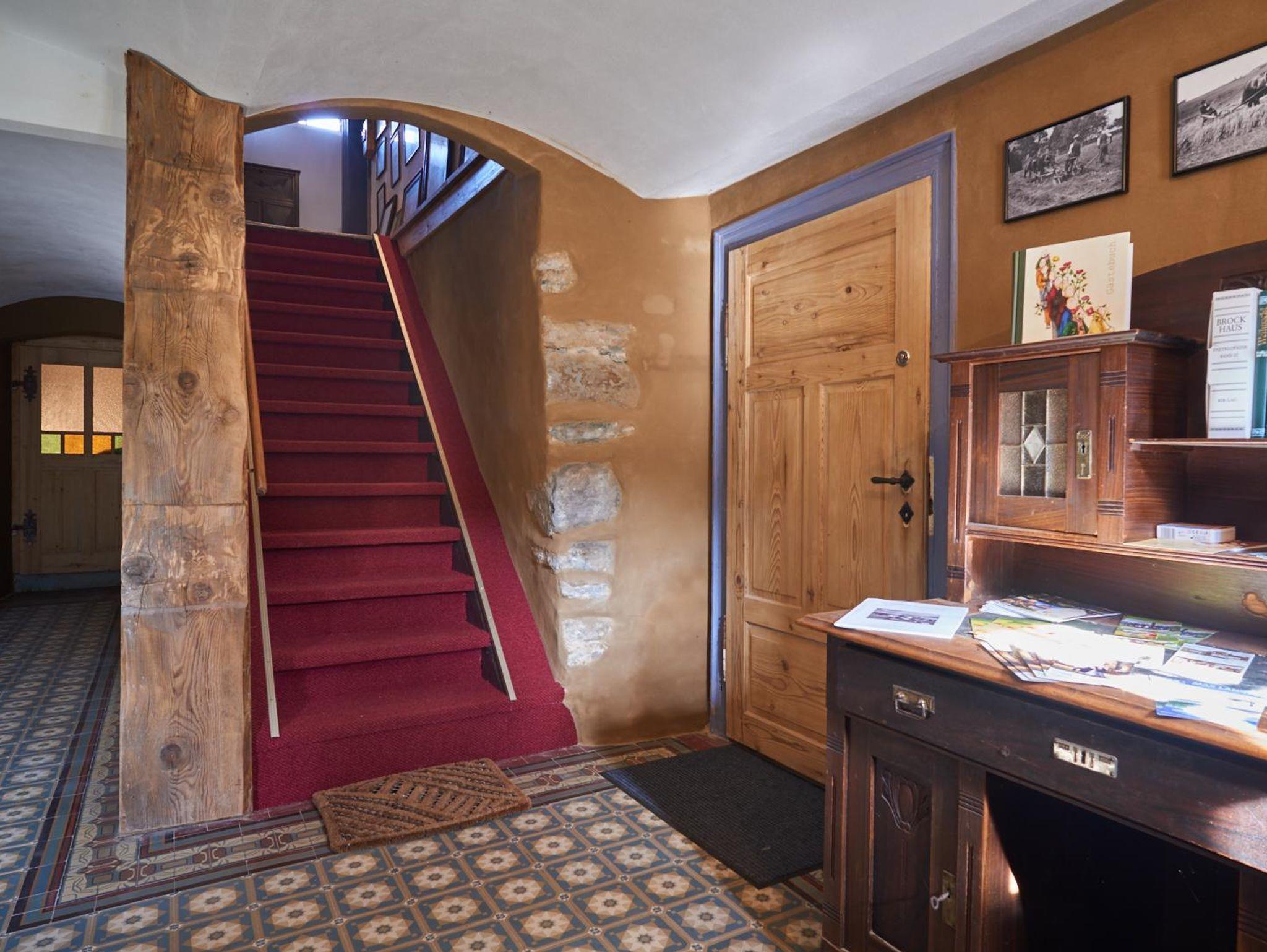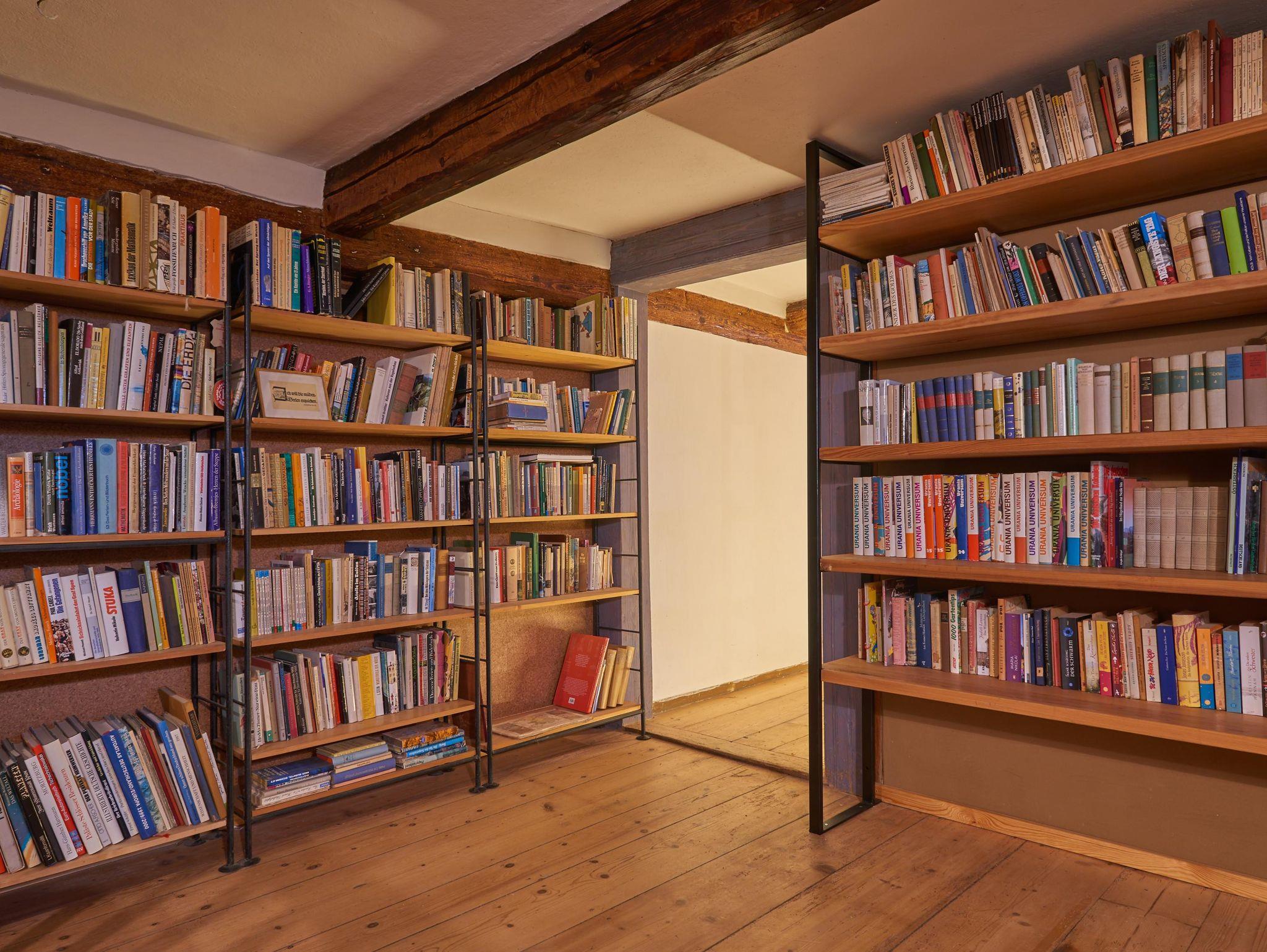 Im oberen Flur befindet sich eine kleine Bibliothek. Diese lädt zum Schmökern und Entspannen bei einer Tasse Tee und einem guten Buch ein. Die Bücher der Bibliothek stammen zum größten Teil aus dem Umgebindehaus.