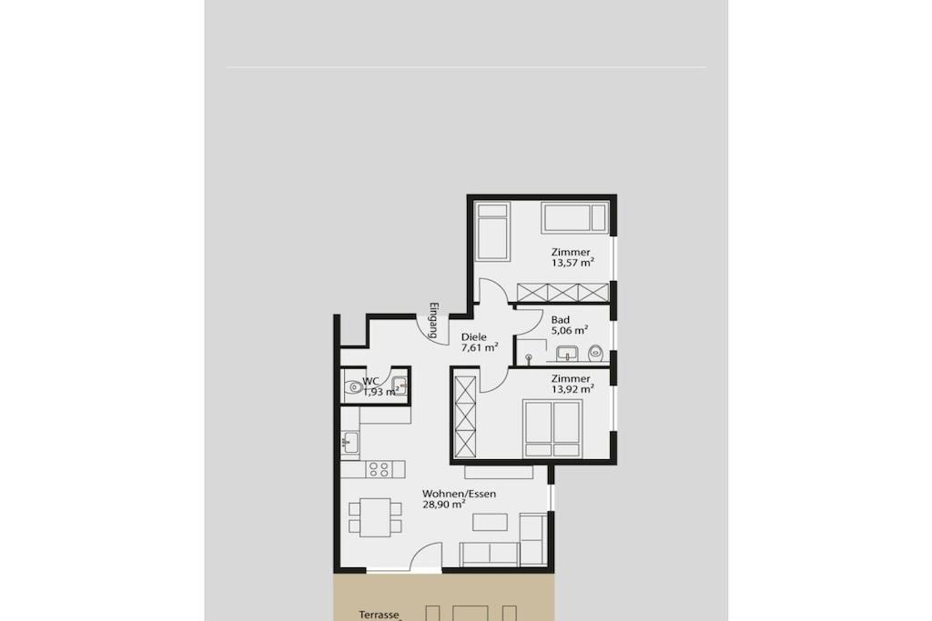 Ground floor: (Kitchen(hob, electric kettle, toaster, coffee machine, oven, dishwasher, fridge, freezer, heating, dishes and cutlery), Living/diningroom(single sofa bed, TV, dining table, heating, insect screens), bedroom(double bed, heating, insect screens), bedroom(single bed, single bed, heating, insect screens), bathroom(shower, washbasin, heating, insect screens, Towels incl.), toilet(washbasin, toilet, heating)) terrace, garden furniture