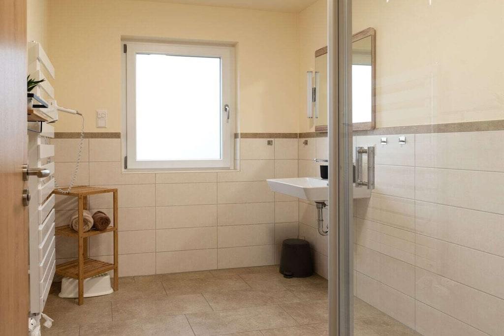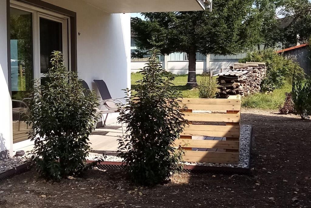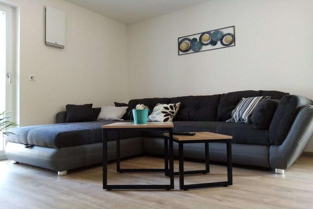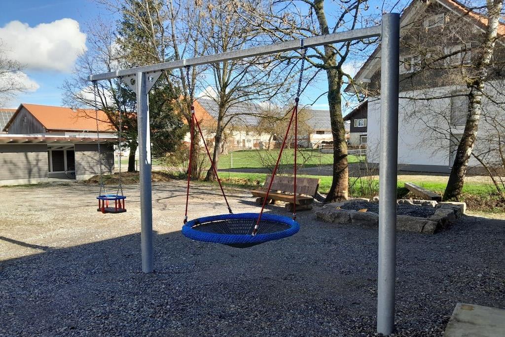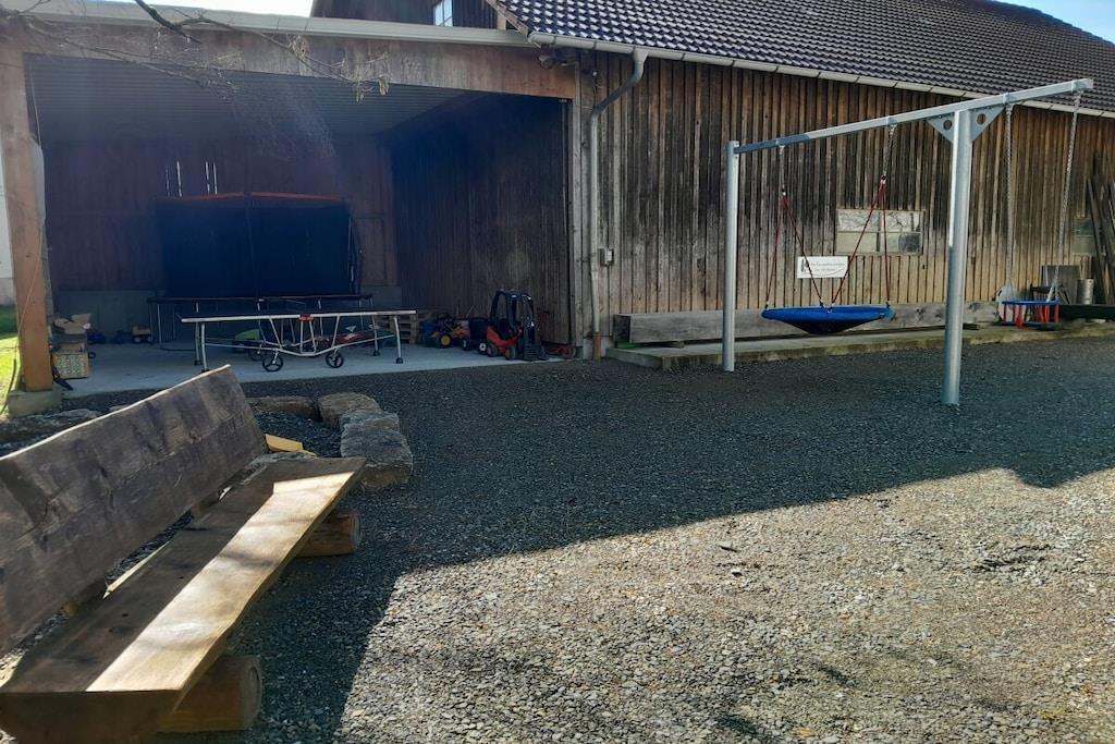 The Buche holiday apartment has 2 bedrooms, a bathroom and a separate toilet with shower, toilet and urinal. In the living-dining area you will find a fitted kitchen, a dining table and a large sofa. A baby bed is possible in the bedrooms. Swings, table tennis table, trampoline and various vehicles for children in the outdoor area. Table football in the basement.