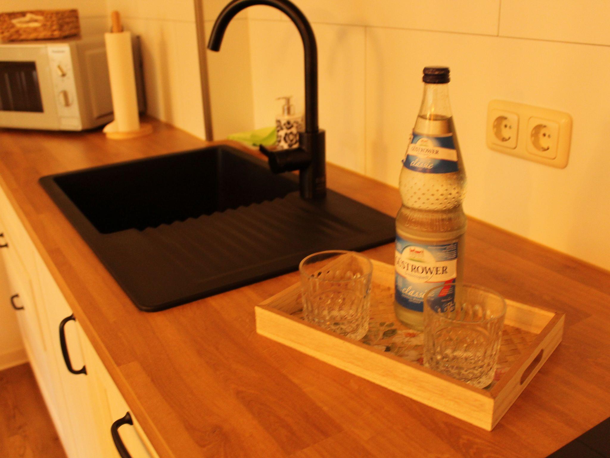 Die liebevoll eingerichtete Ferienwohnung in Weitenhagen bietet Platz für bis zu vier Personen und lädt zu einem erholsamen Aufenthalt in ruhiger Lage ein. Das helle Wohnzimmer ist mit einer großen, gemütlichen Eckcouch, einem Fernseher sowie Radio, CD- und Videoplayer ausgestattet. Ein Esstisch und eine offene, komplett eingerichtete Küchenzeile schaffen eine wohnliche Atmosphäre, in der Sie sich rundum wohlfühlen können. Das Hauptschlafzimmer verfügt über ein komfortables Doppelbett, eine kleine Sitzgruppe und einen zusätzlichen Fernseher. Im zweiten Schlafzimmer befinden sich zwei Einzelbetten ideal für Kinder oder mitreisende Freunde. Das Badezimmer ist modern gestaltet und mit Dusche und WC ausgestattet. Bettwäsche und Handtücher sind selbstverständlich vorhanden.